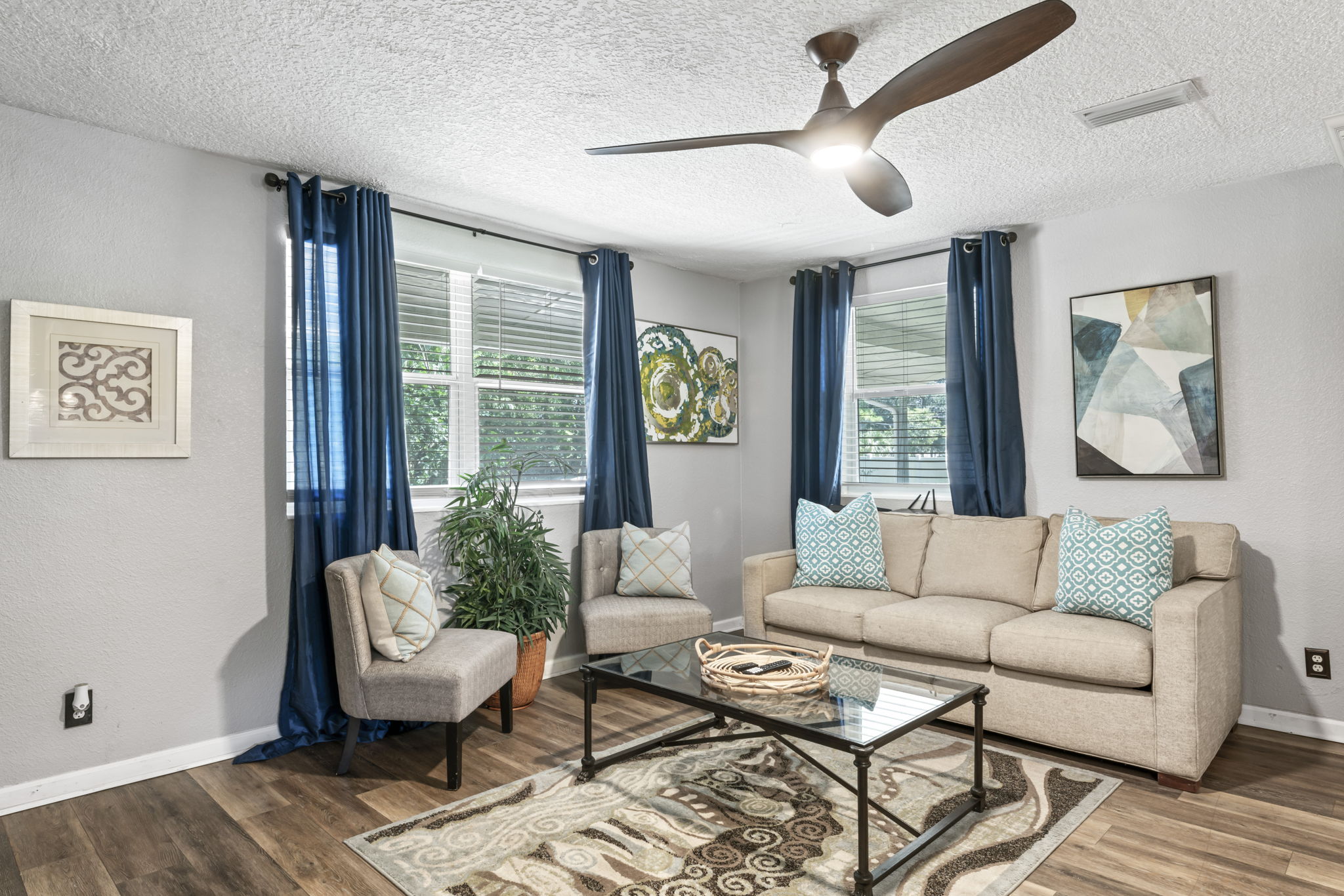Welcome to our charming three-bedroom, two-bathroom single family home in the heart of Jacksonville! Unwind on the sun-kissed deck with your morning coffee, or simply bask in the warmth of the Florida sun. Outside, the gazebo offers a charming dining area where you can savor your meals amidst the refreshing breeze. As the sun sets, gather around the fire pit for toasty evenings, sharing stories and making memories under the starry skies. Book your stay now and create cherished memories!