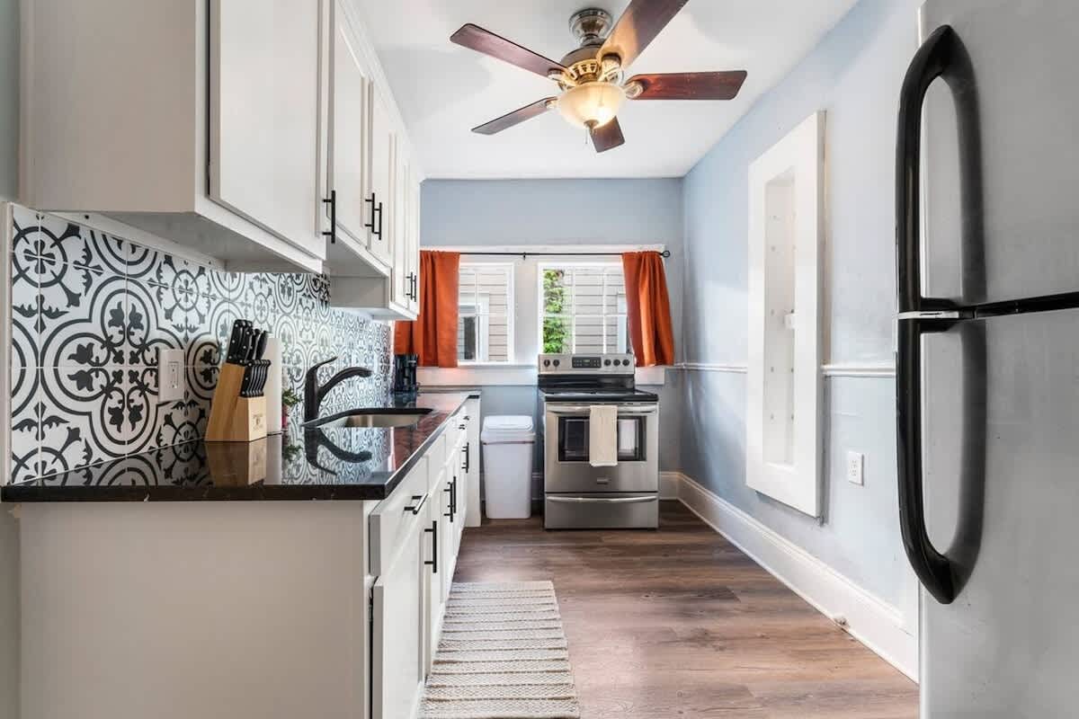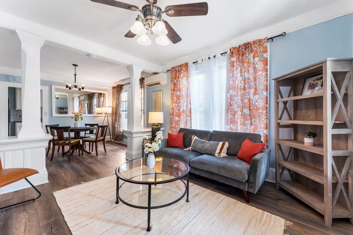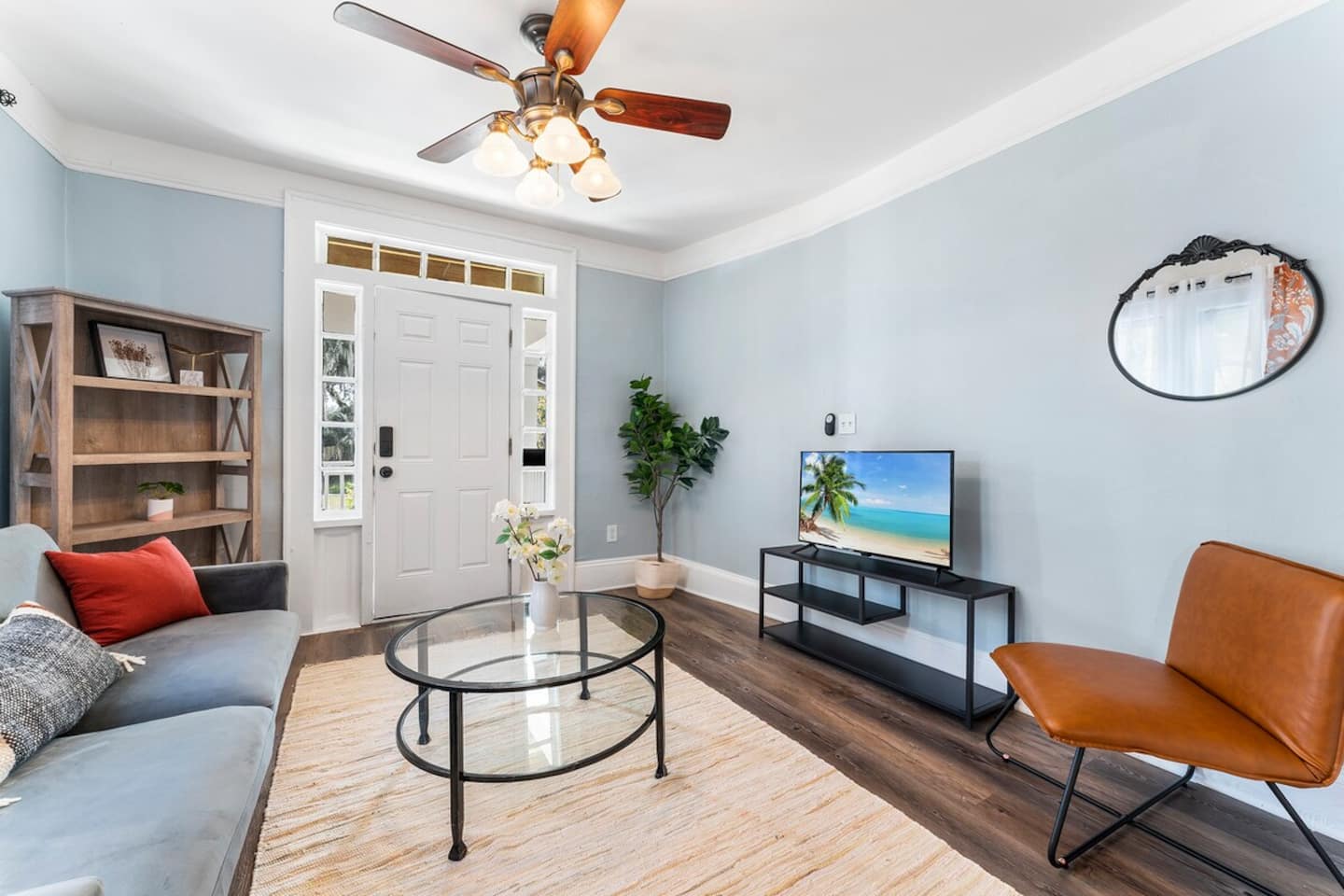 This fully-furnished 1 bedroom, 1 bathroom unit is located in Springfield. It features a cozy living room with a futon sofa, air conditioning and heat, a functional kitchen, and a front porch. It’s also very close to parks and shopping centers. Central to everything in Jax! Close to all major hospitals.