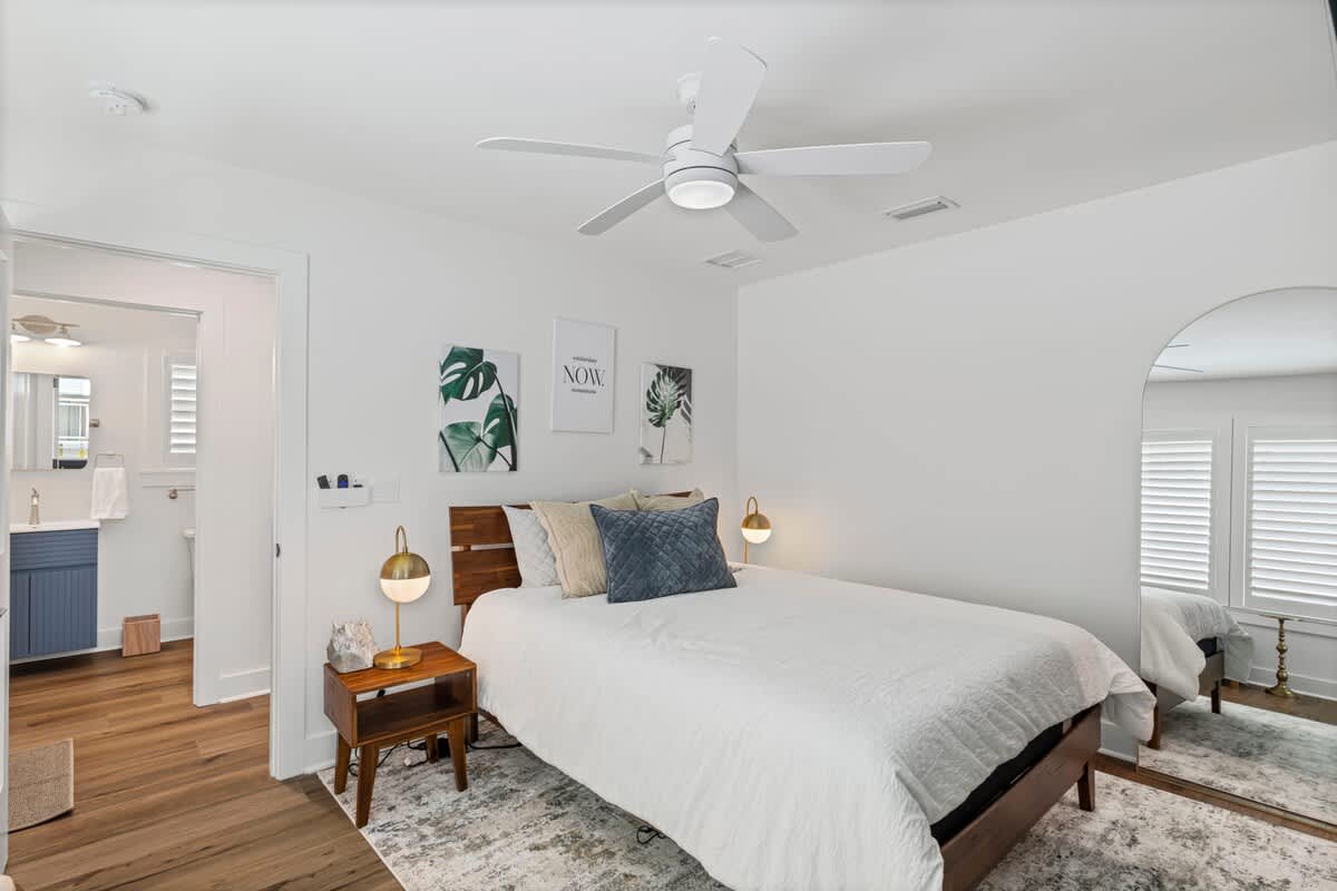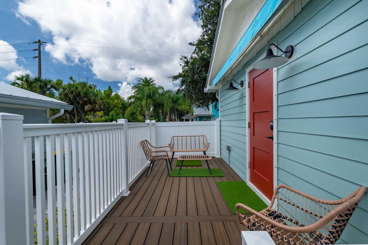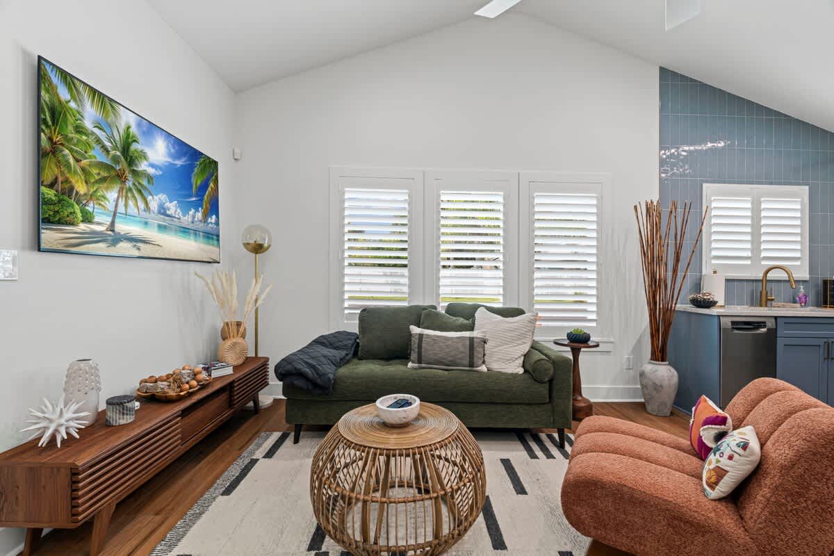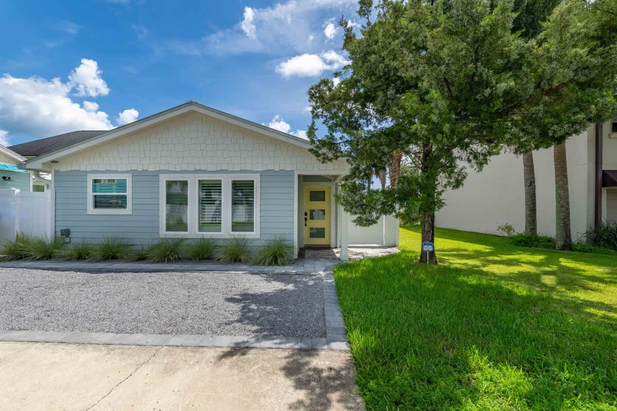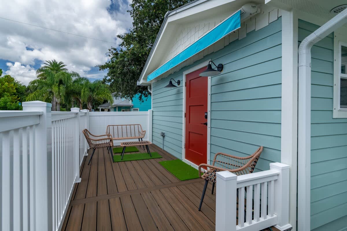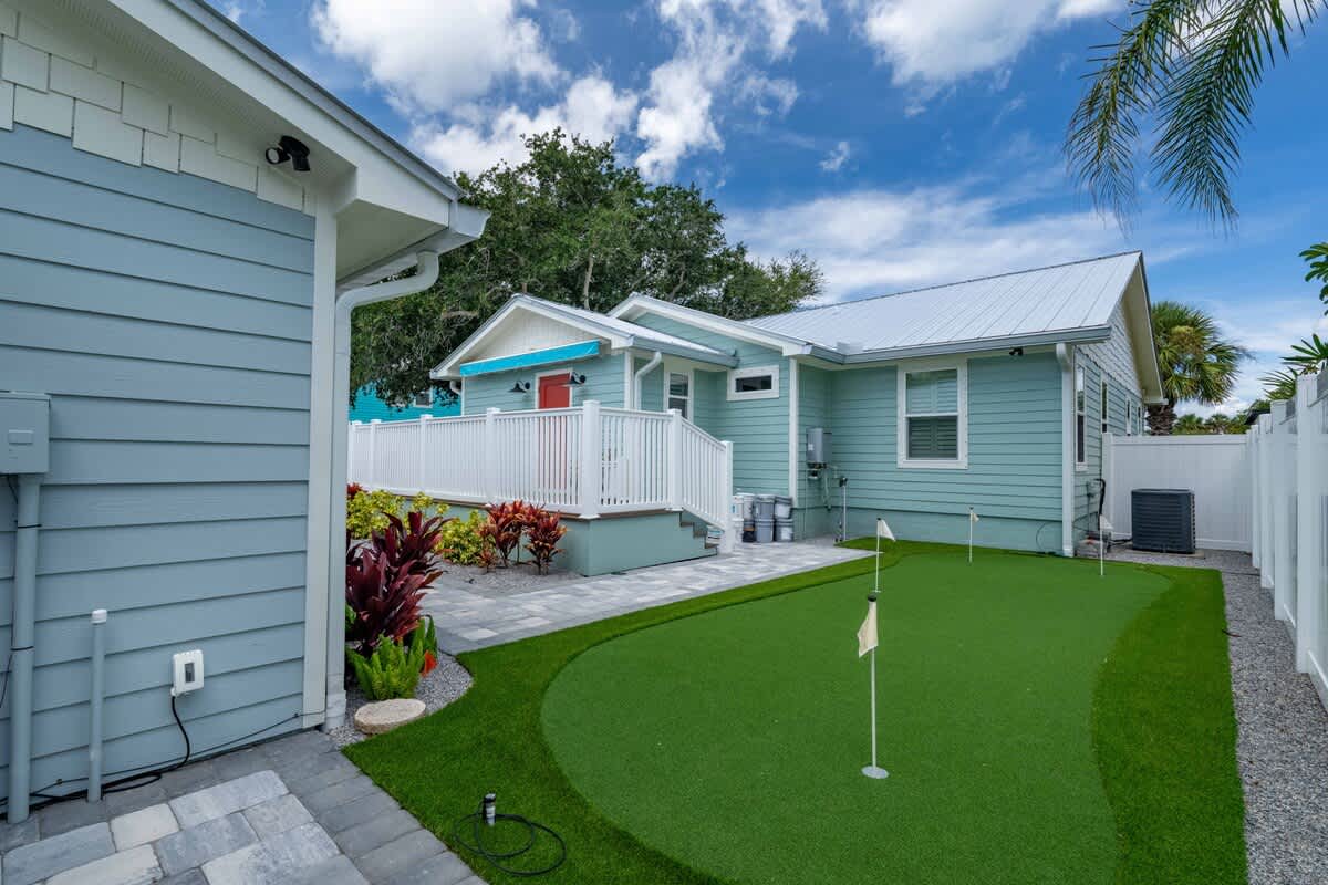 This 1BR, 1.5BA studio is a private escape with a backyard putting green, outdoor seating, and space to unwind. Inside, you’ll find a modern kitchen with island, dining table, and washer/dryer — perfect for extended stays. Refresh in the walk-in shower, then enjoy evenings under the palms. Just 5 minutes from Jacksonville Beach and steps from dining and shops, it’s the ideal mix of fun and relaxation.