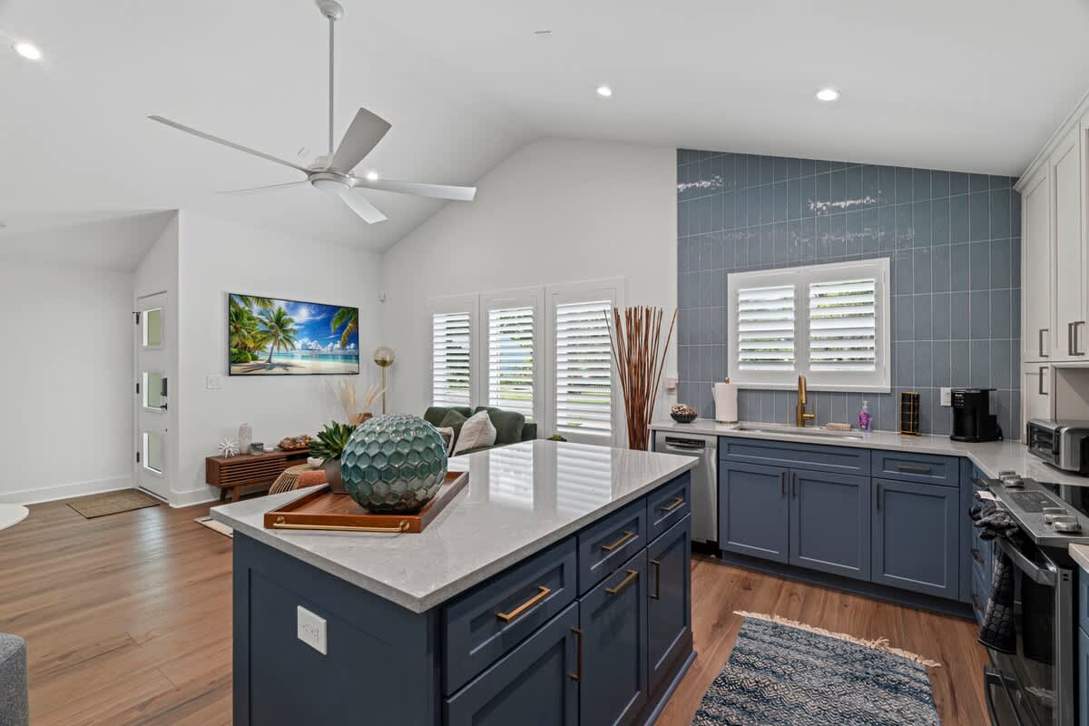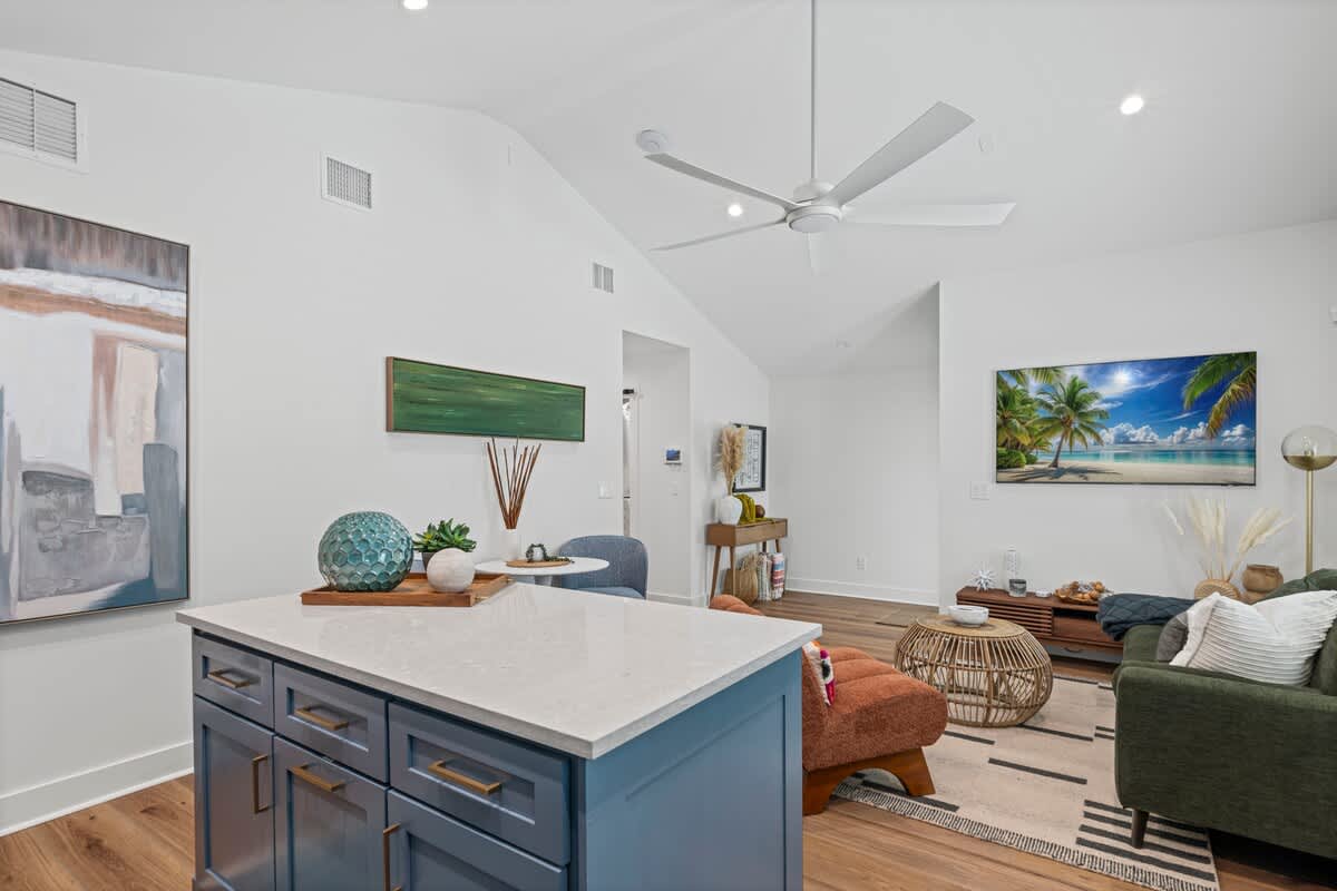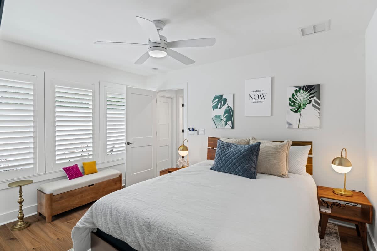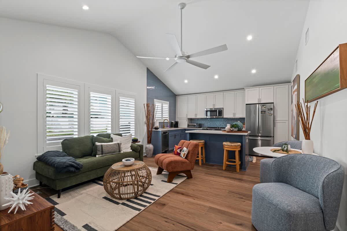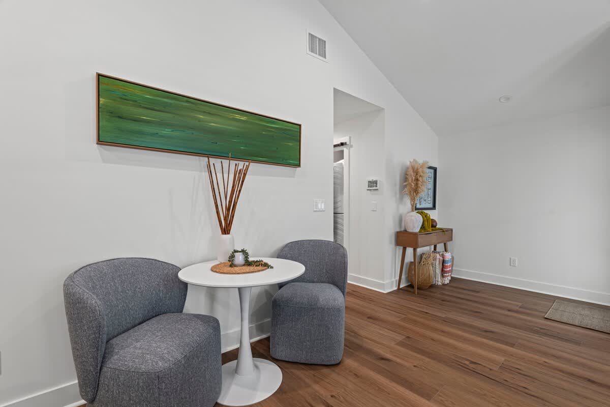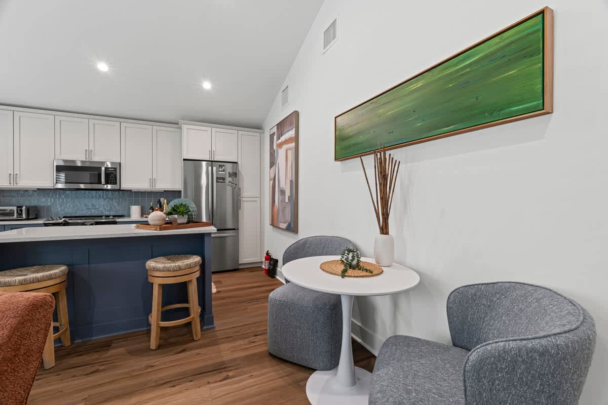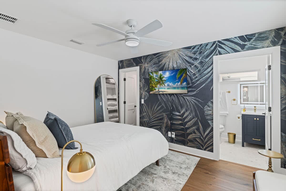 This 1BR, 1.5BA studio is a private escape with a backyard putting green, outdoor seating, and space to unwind. Inside, you’ll find a modern kitchen with island, dining table, and washer/dryer — perfect for extended stays. Refresh in the walk-in shower, then enjoy evenings under the palms. Just 5 minutes from Jacksonville Beach and steps from dining and shops, it’s the ideal mix of fun and relaxation.