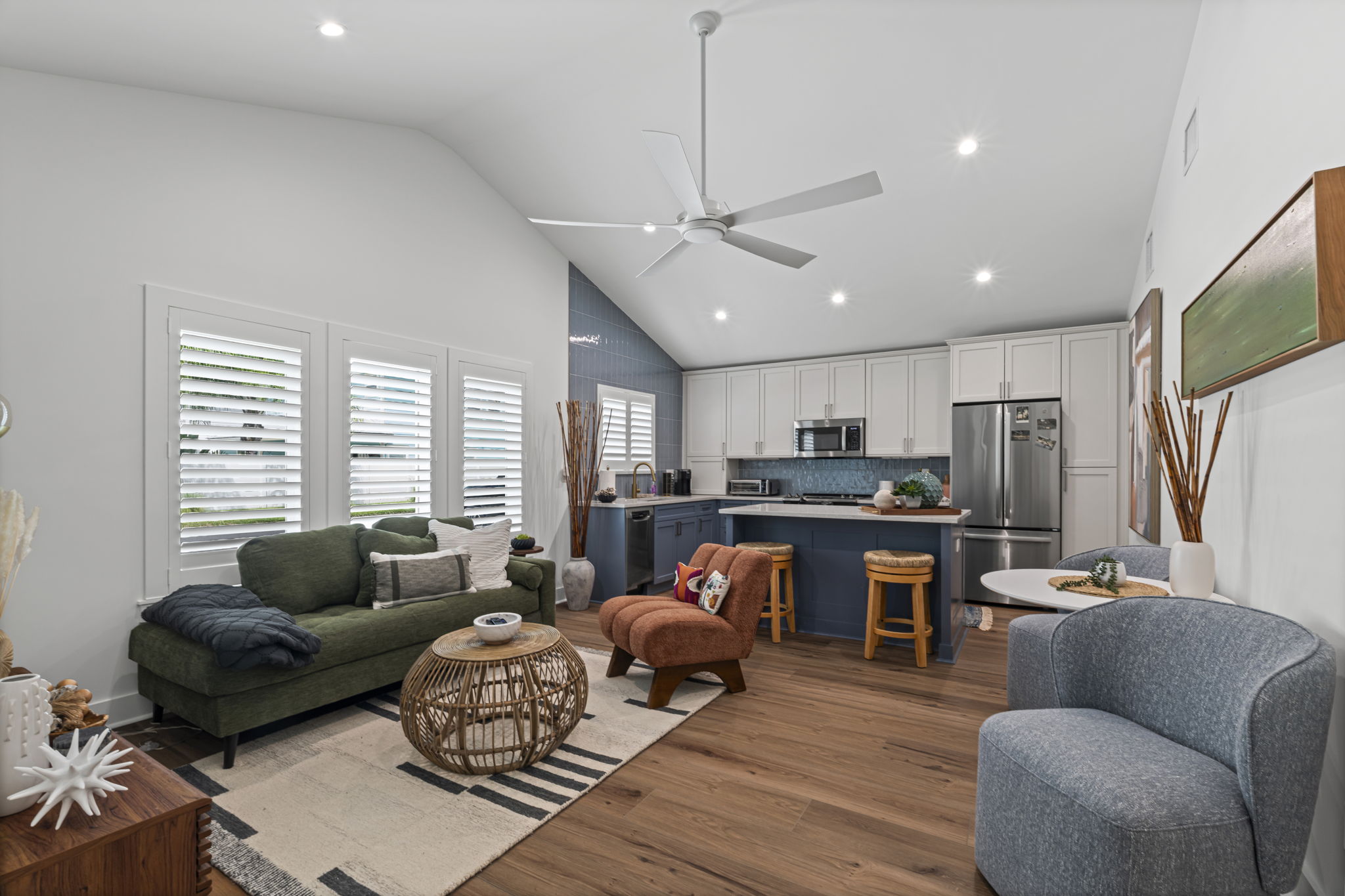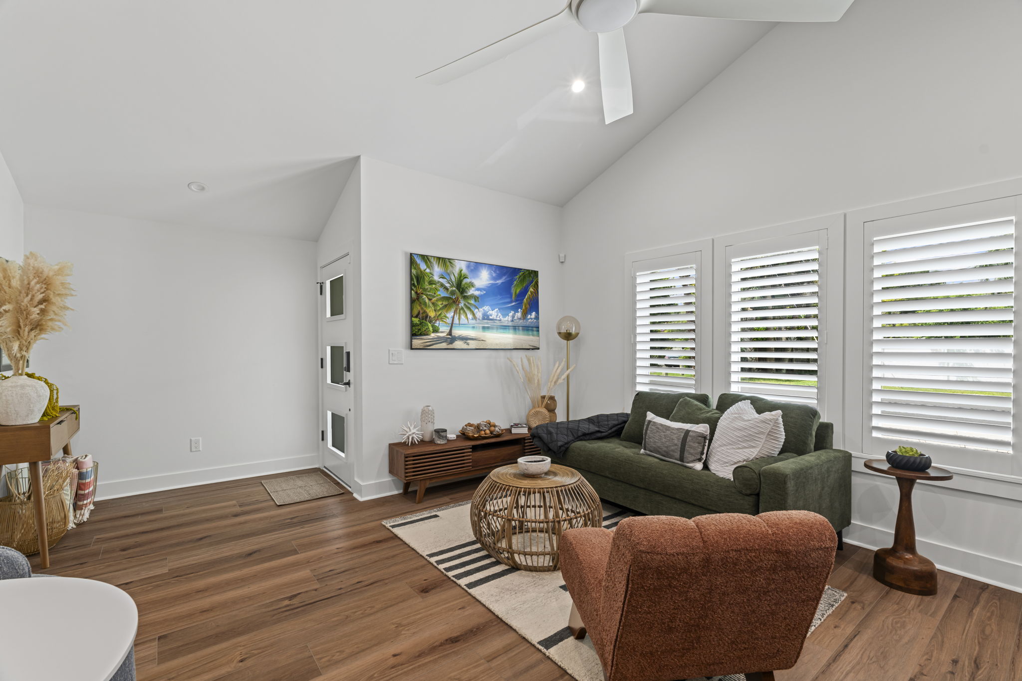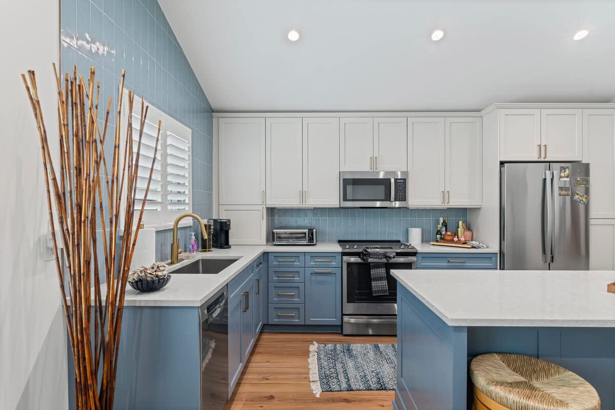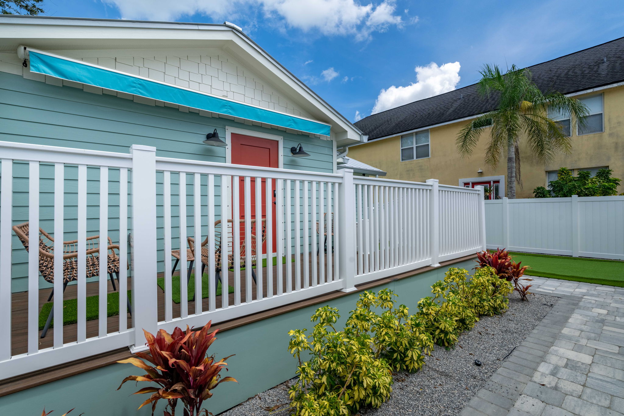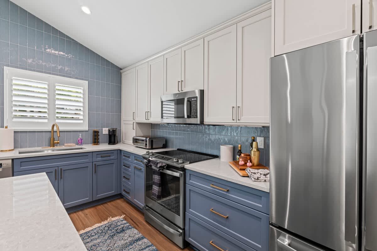 This 1BR, 1.5BA studio is a private escape with a backyard putting green, outdoor seating, and space to unwind. Inside, you’ll find a modern kitchen with island, dining table, and washer/dryer — perfect for extended stays. Refresh in the walk-in shower, then enjoy evenings under the palms. Just 5 minutes from Jacksonville Beach and steps from dining and shops, it’s the ideal mix of fun and relaxation.