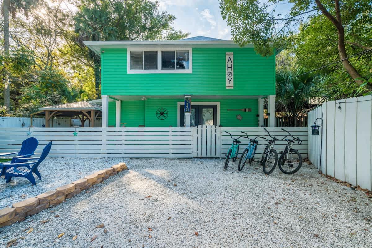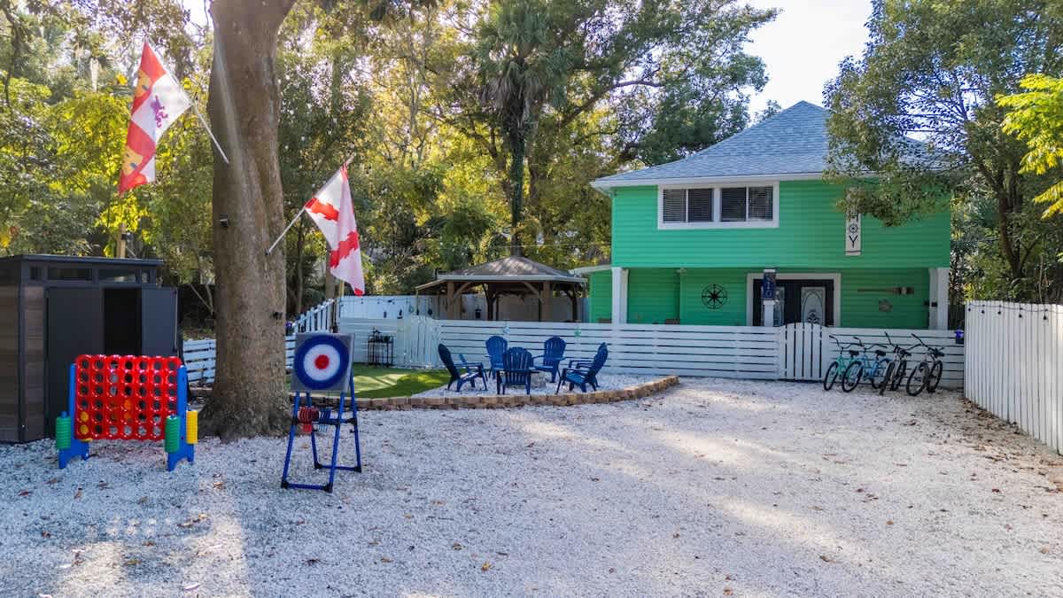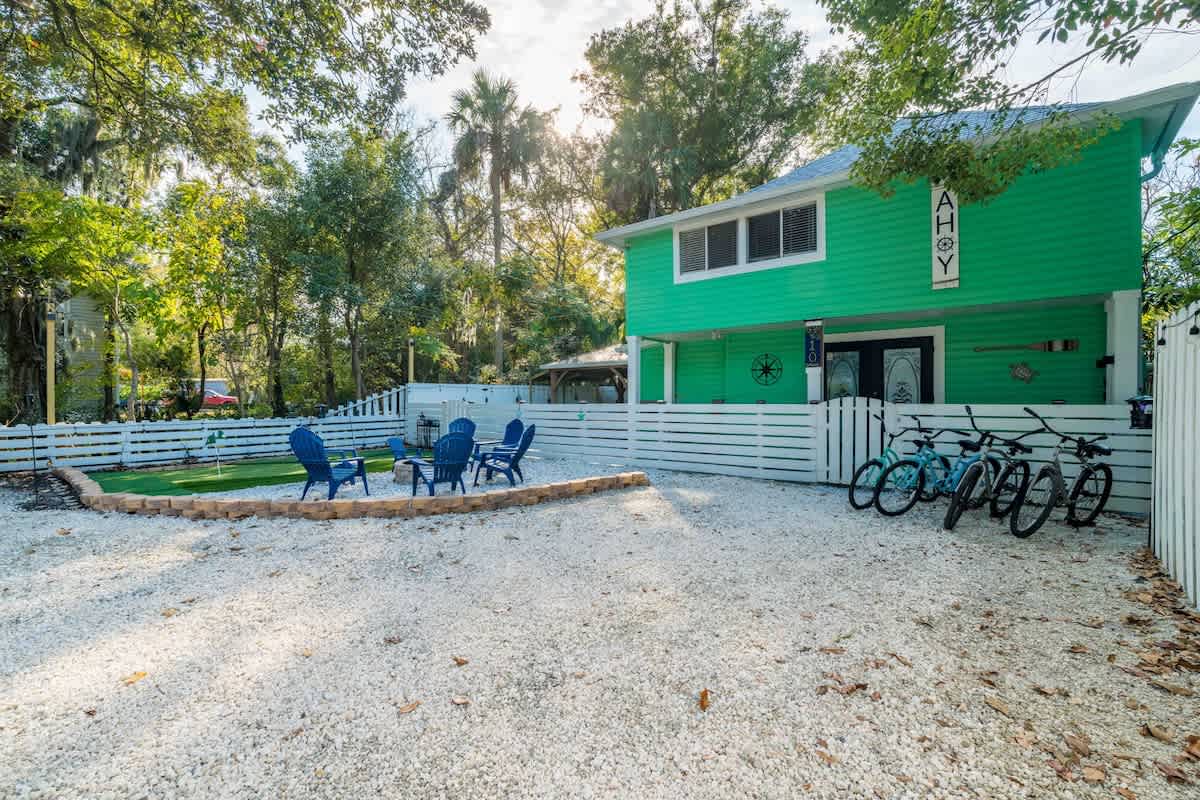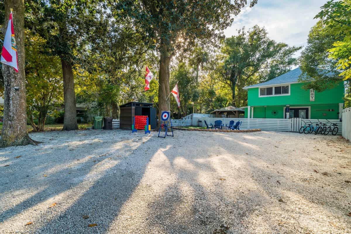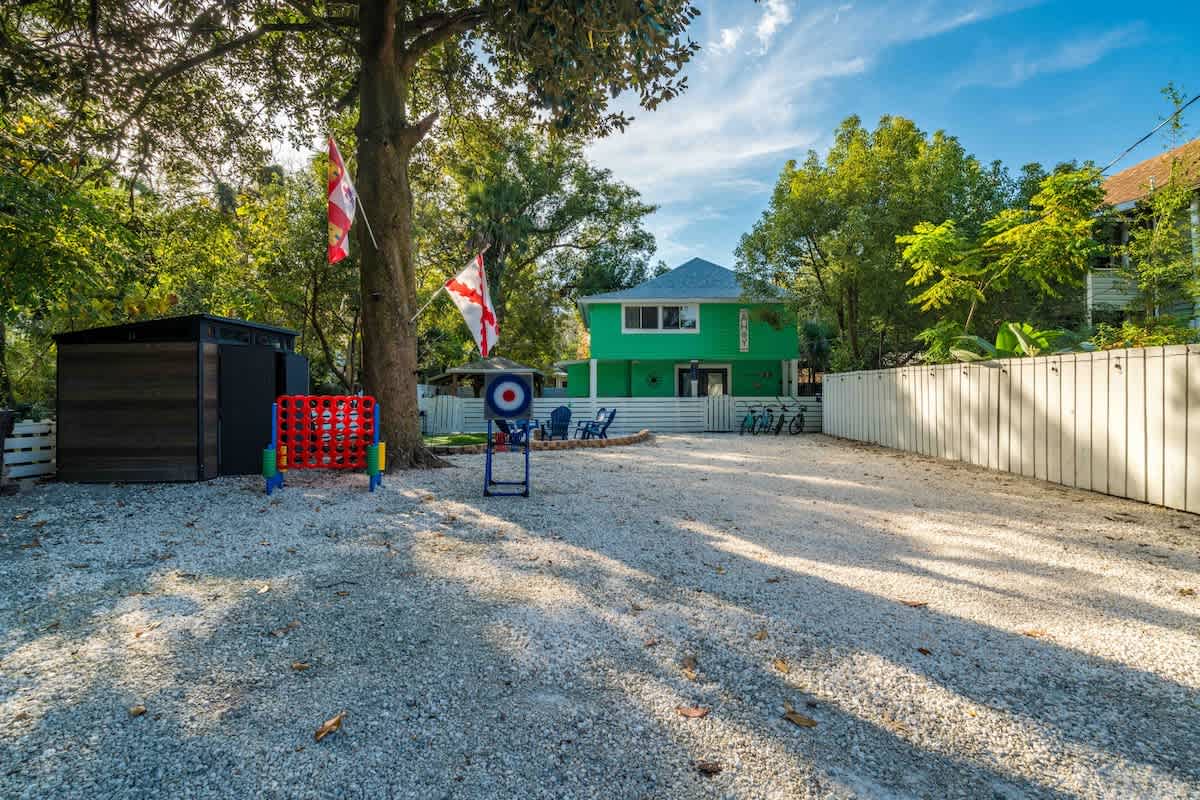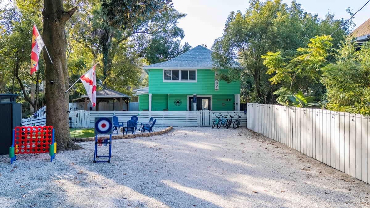 The Cove, your dream vacation home in St. Augustine’s bustling West King district. This stunning 4-bedroom home has been recently updated to ensure you have all the essentials you need for a comfortable and enjoyable stay. Not only are you steps away from top-rated breweries, cafes, and restaurants, but you’re also within walking distance to historic downtown. With a large parking area that can accommodate boat trailers, RVs, and 8 vehicles, you won’t have to worry about finding parking.