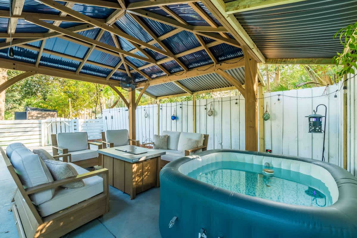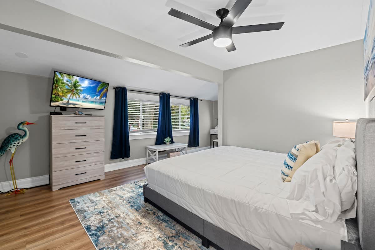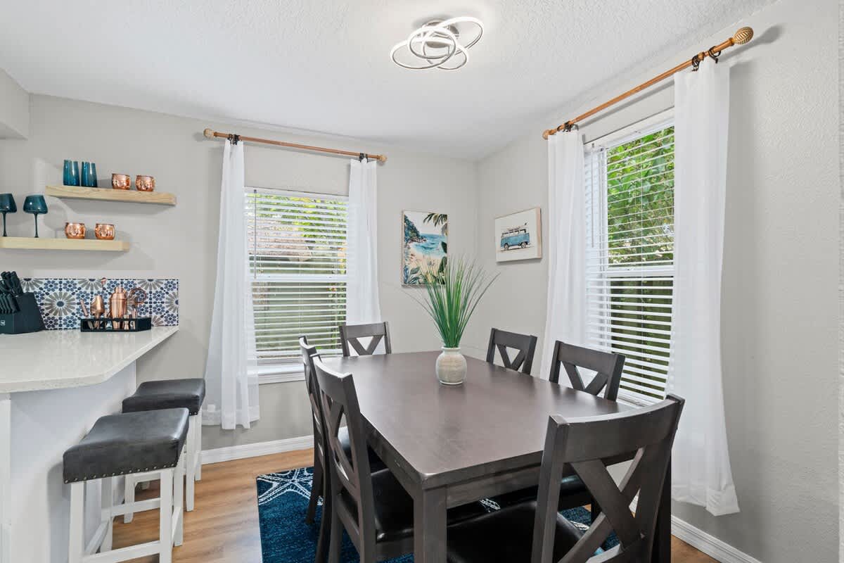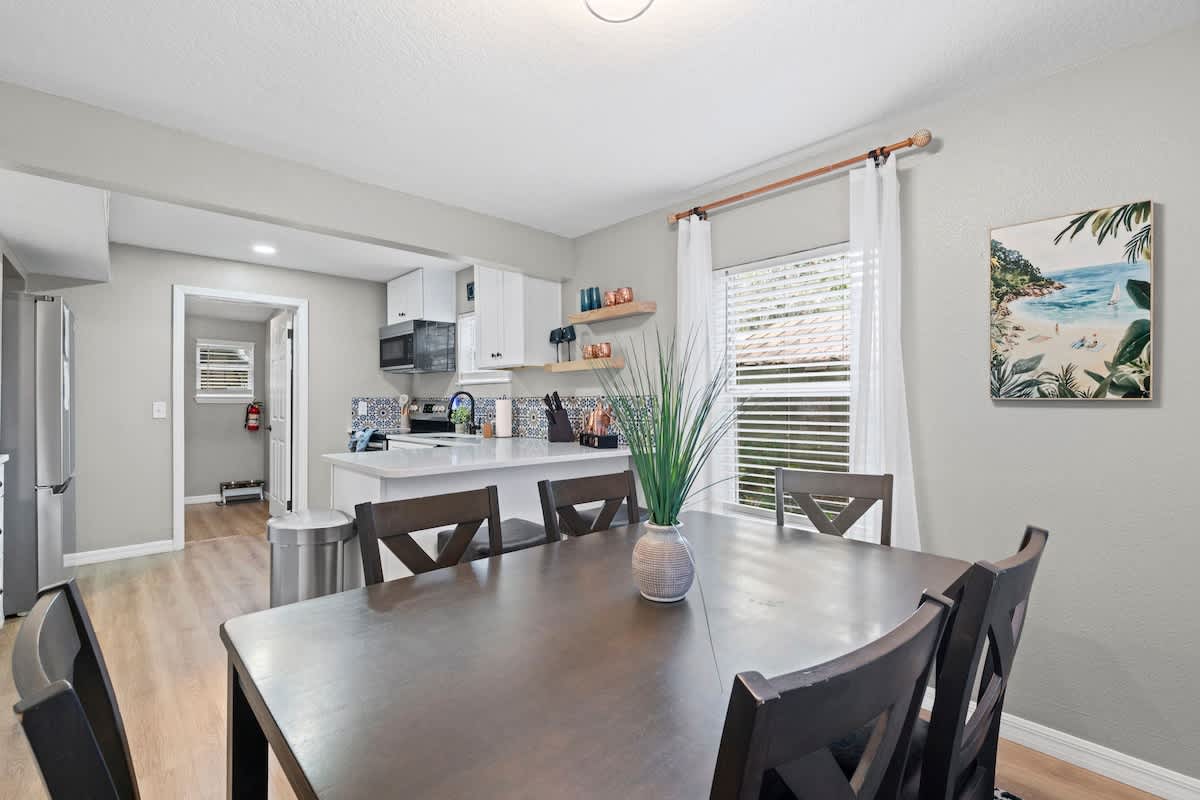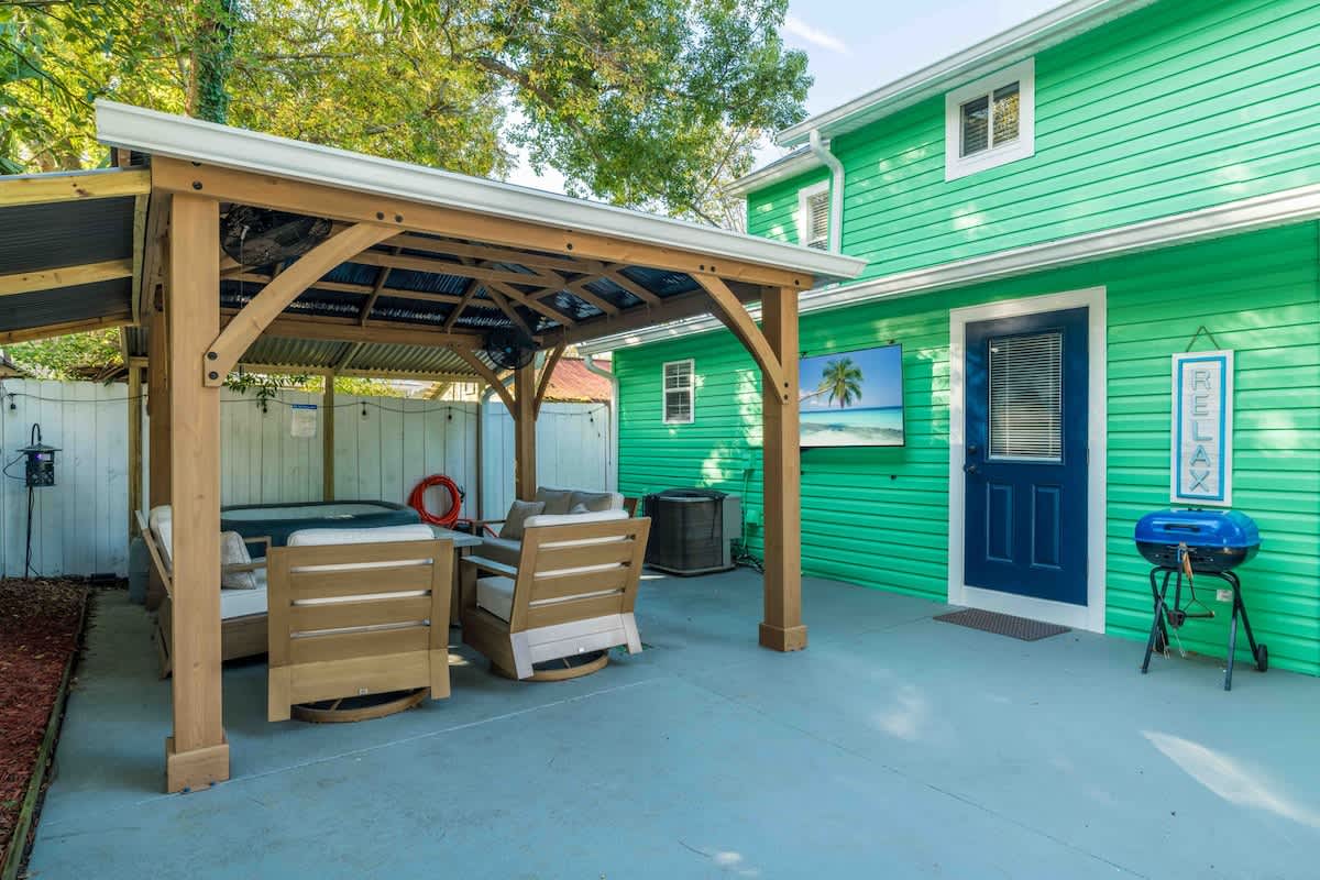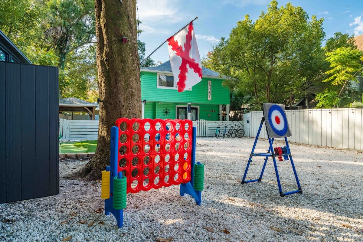 The Cove, your dream vacation home in St. Augustine’s bustling West King district. This stunning 4-bedroom home has been recently updated to ensure you have all the essentials you need for a comfortable and enjoyable stay. Not only are you steps away from top-rated breweries, cafes, and restaurants, but you’re also within walking distance to historic downtown. With a large parking area that can accommodate boat trailers, RVs, and 8 vehicles, you won’t have to worry about finding parking.