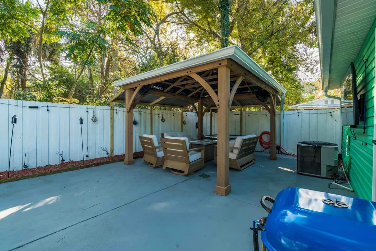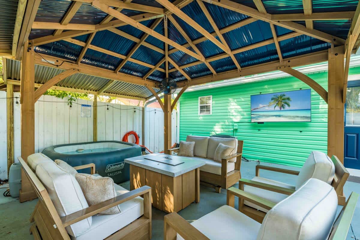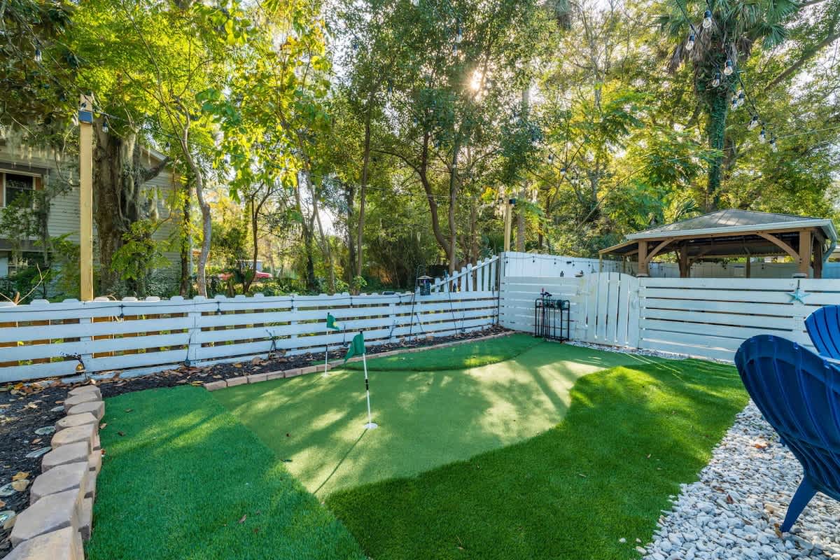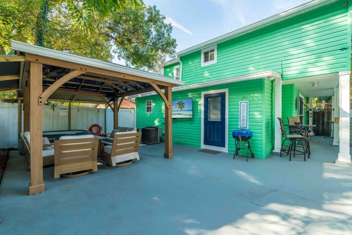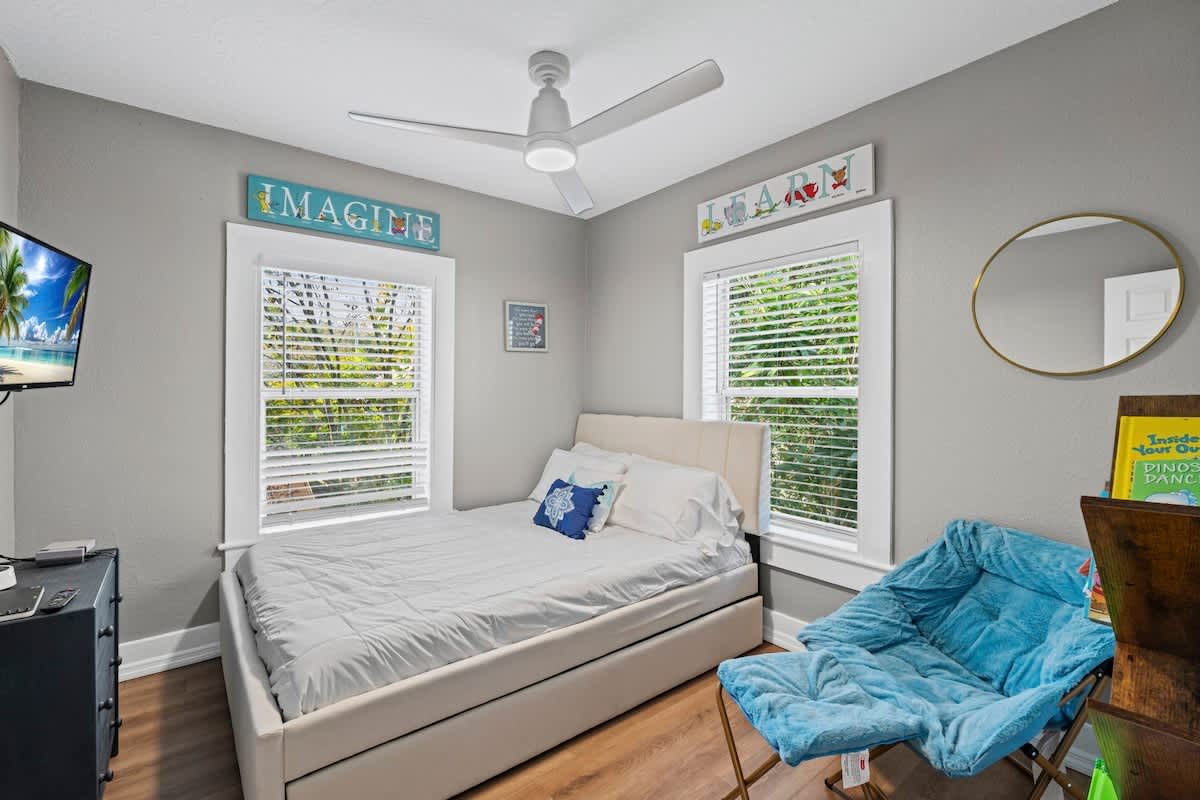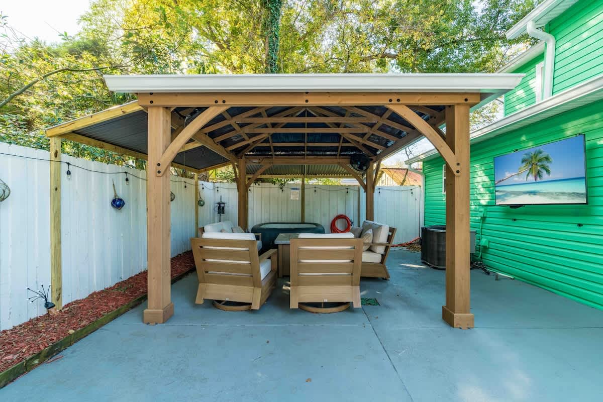 The Cove, your dream vacation home in St. Augustine’s bustling West King district. This stunning 4-bedroom home has been recently updated to ensure you have all the essentials you need for a comfortable and enjoyable stay. Not only are you steps away from top-rated breweries, cafes, and restaurants, but you’re also within walking distance to historic downtown. With a large parking area that can accommodate boat trailers, RVs, and 8 vehicles, you won’t have to worry about finding parking.