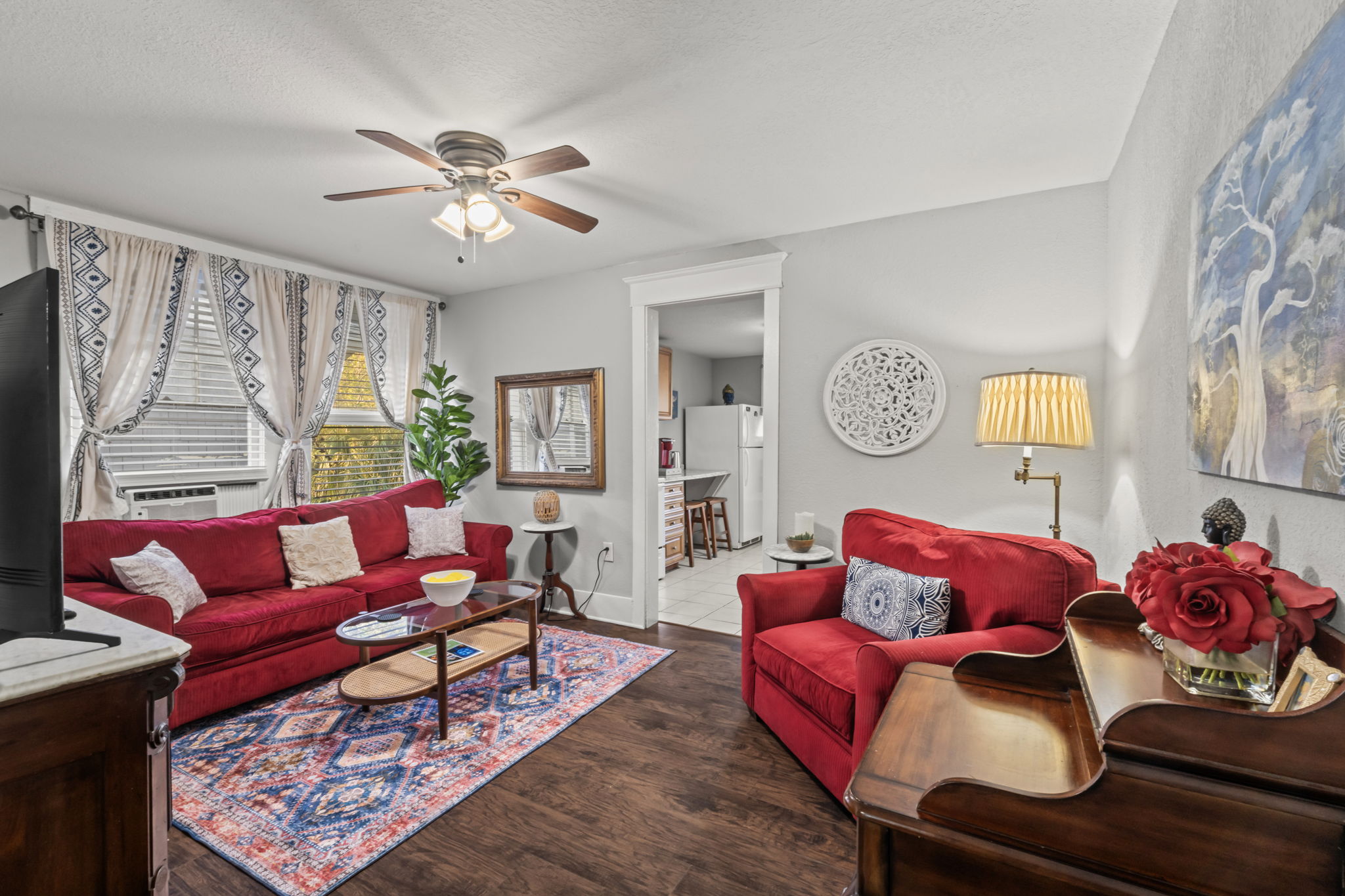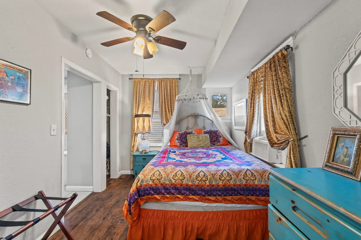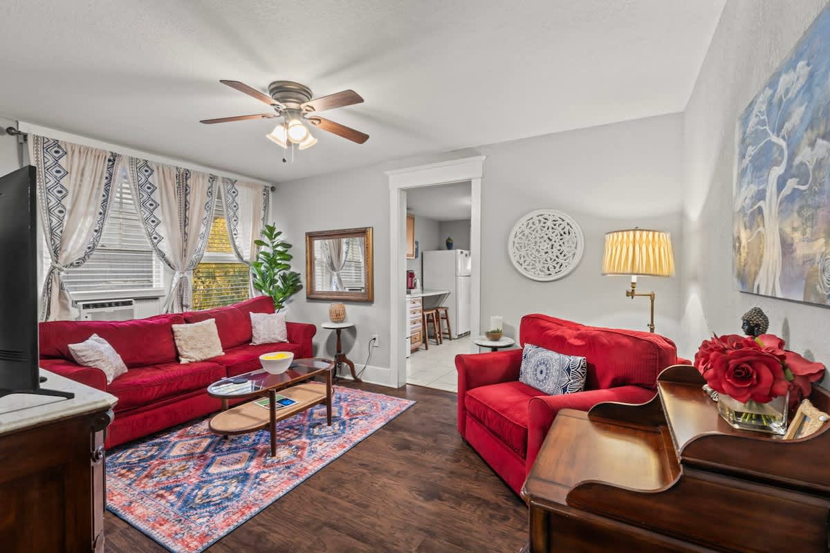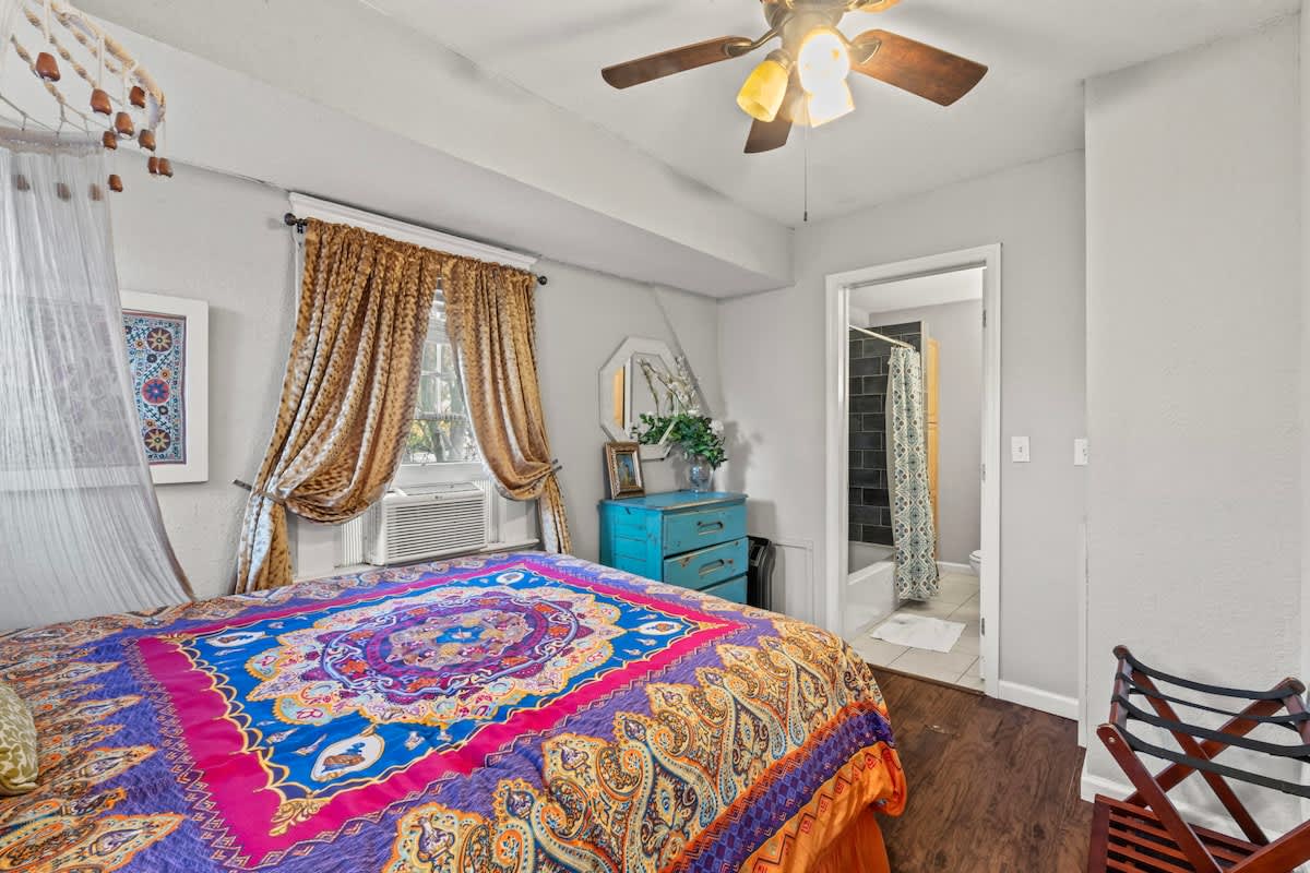 Experience Riverside like never before in this vibrant and stylish upstairs apartment. Designed with an eclectic bohemian flair, this apartment offers a cozy vibe with plenty of natural light, a fully equipped kitchen, and comfy bed to unwind in after a day of exploring. We’d love to host you—book your stay and start your Riverside adventure today!