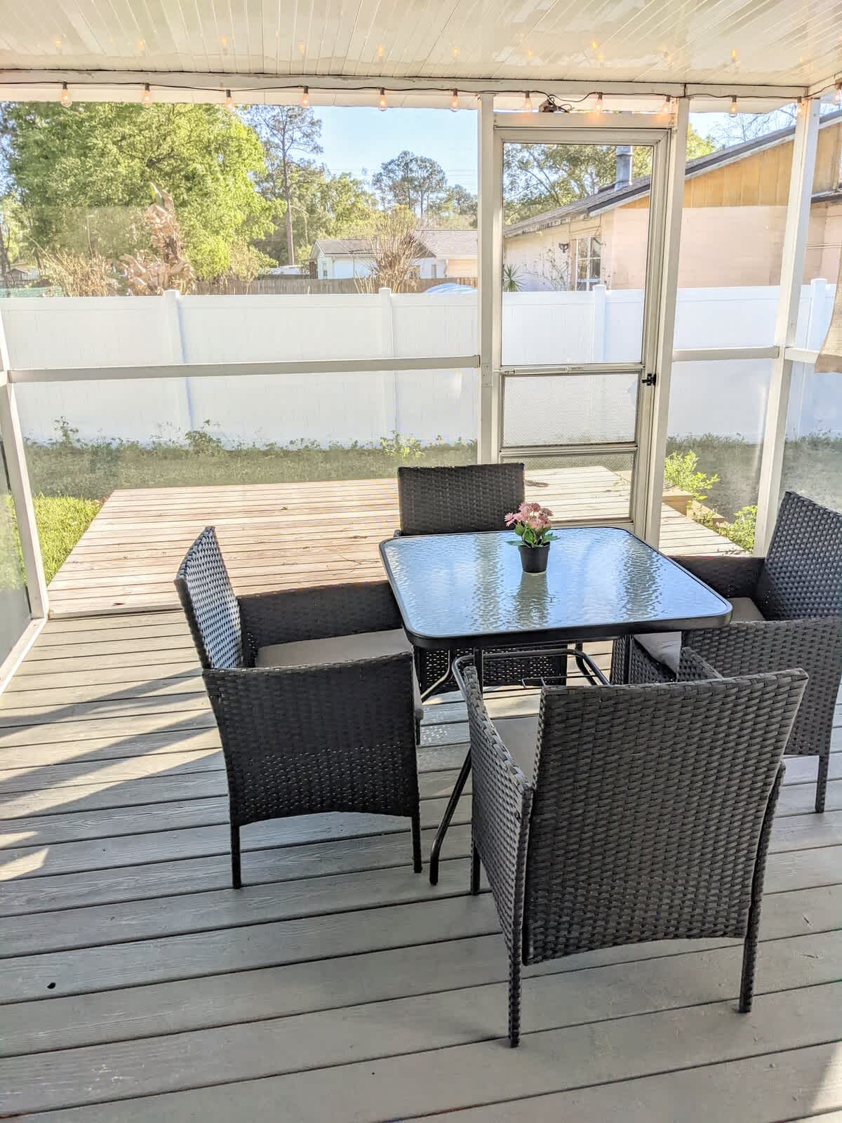 Comfortable and covered patio.