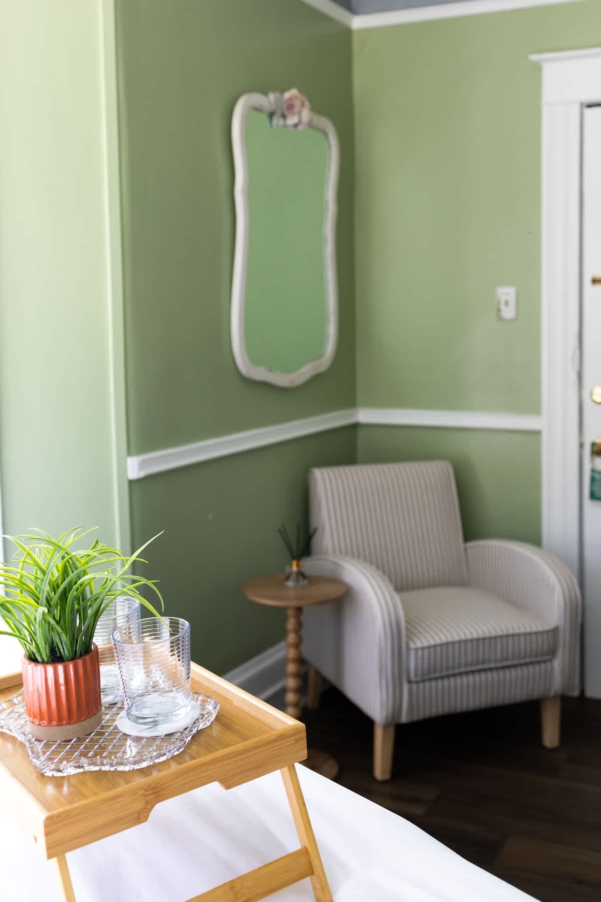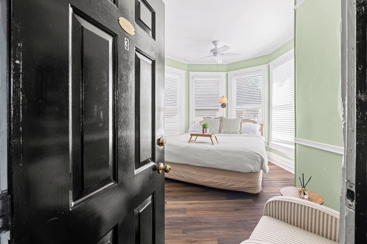 The Fern Room is cozy and more intimate than photos might suggest, with charming old bed-and-breakfast character. It has limited electrical outlets (it's in a historic building), but guests find the comfortable bed, excellent shower pressure, and private bathroom make it a perfect retreat after exploring the city.