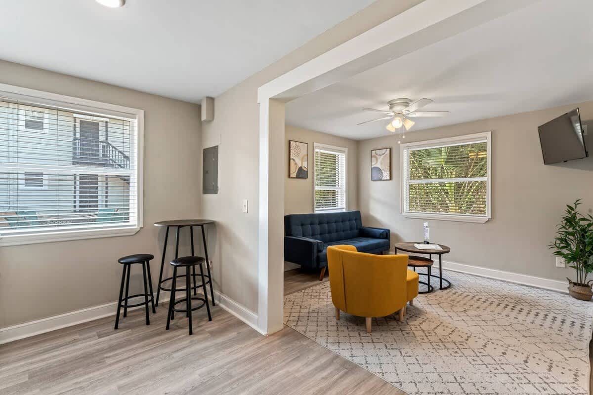 This one-bedroom, 1 bath unit is located in a popular residential building close to San Marco Square and all of the shops, restaurants, and entertainment. The building is surrounded by lush green landscaping that includes a shared backyard featuring a fire pit, bbq grill, and outdoor seating.