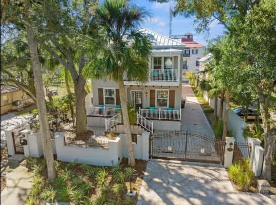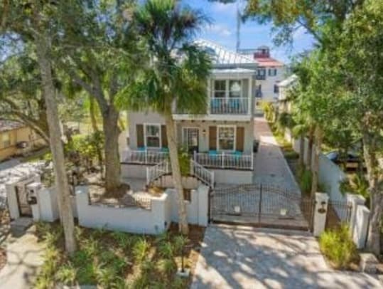 Beautiful gated home on Lake Maria Sanchez in historic downtown Lincolnville, St Augustine. 4 large bedrooms and 3.5full baths. Great front porches to enjoy.