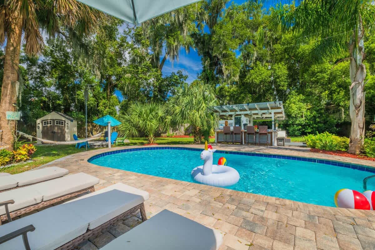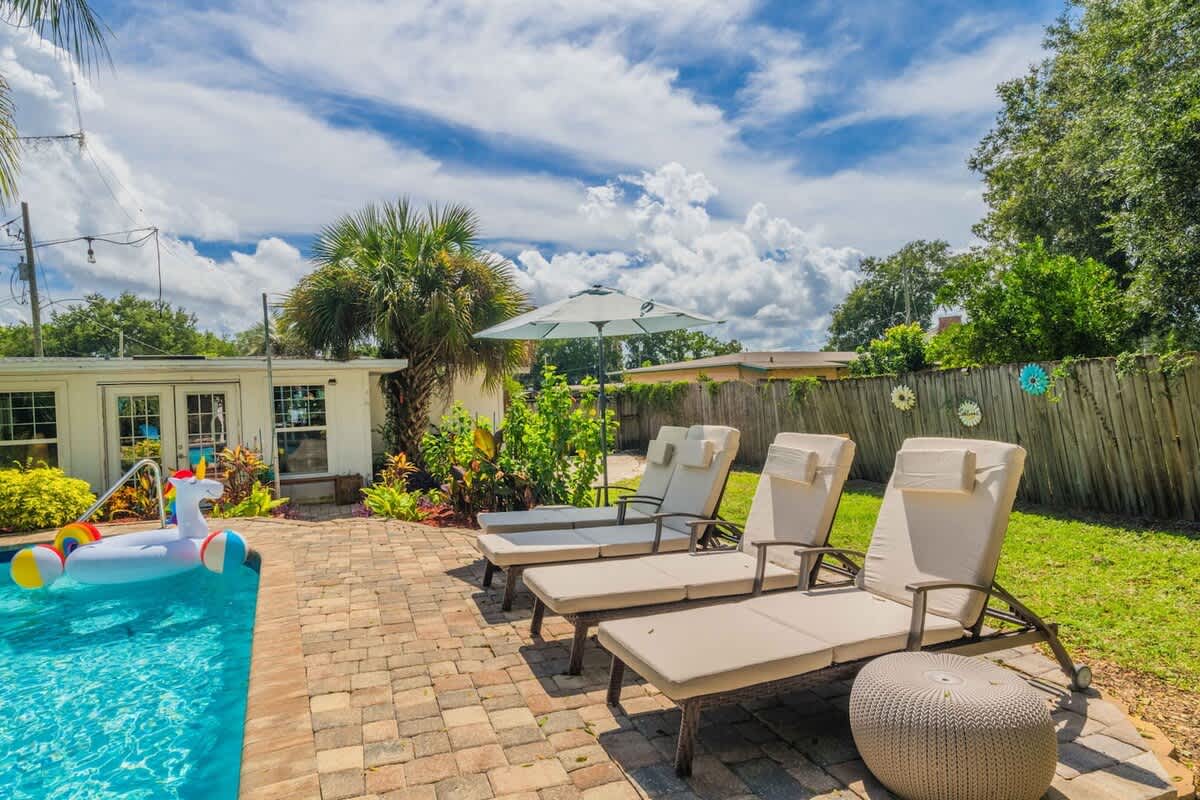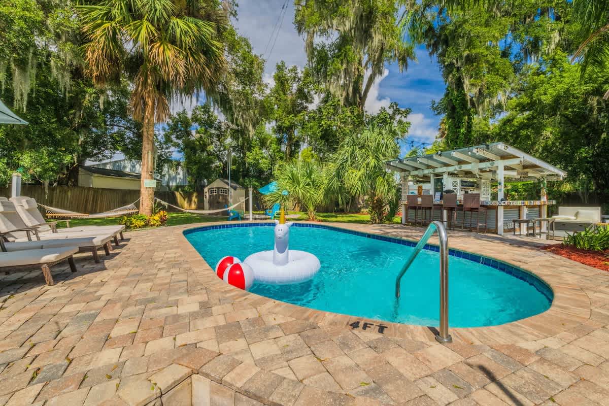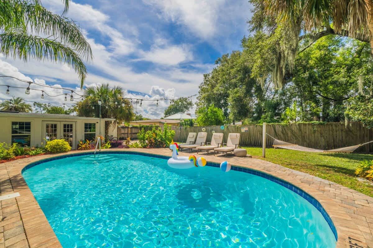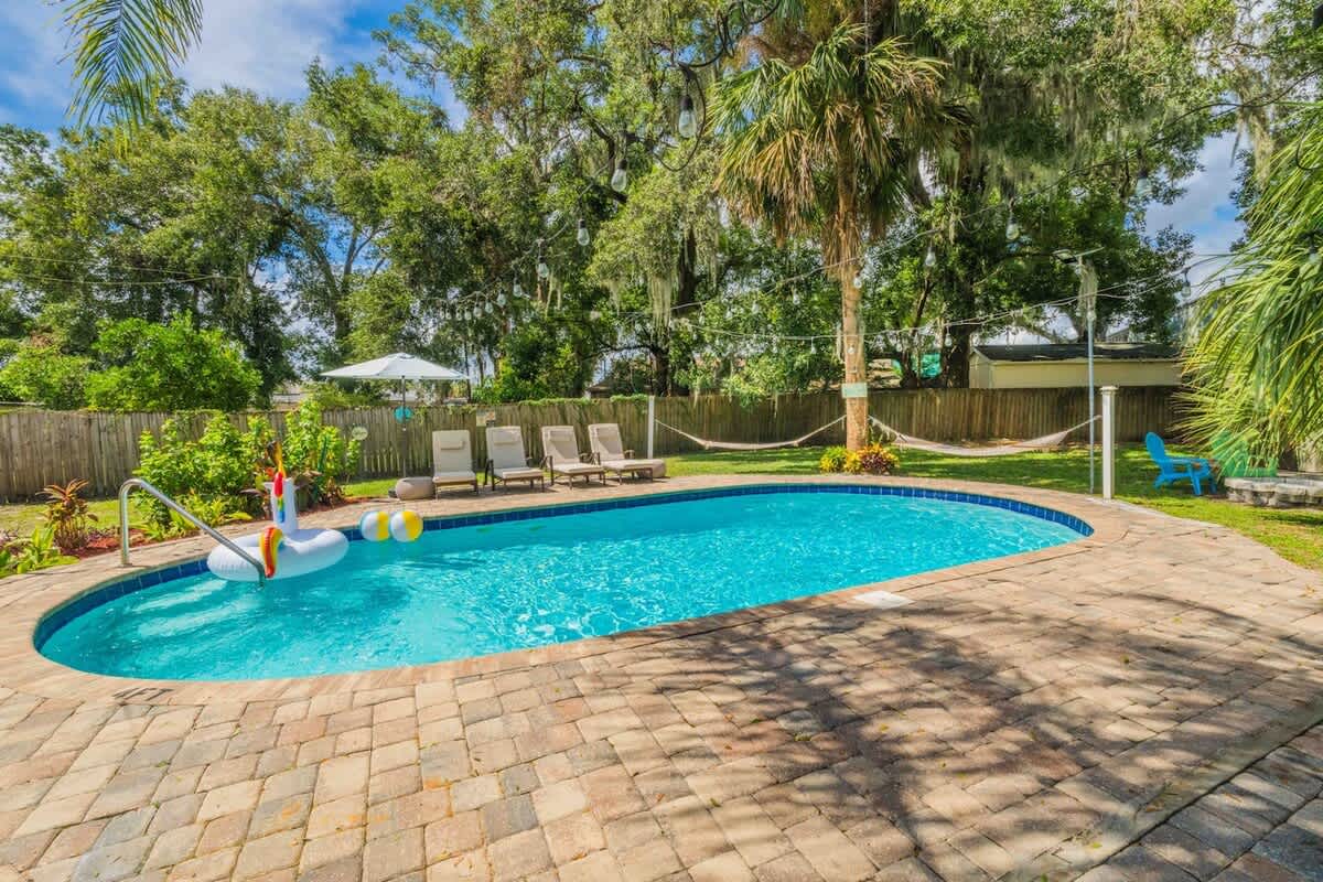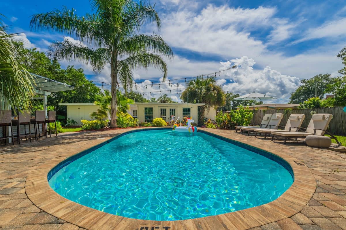 Welcome to the HEATED Pool Side Oasis, a luxurious and tropical short term rental located in the heart of Jacksonville. Our beautiful home is the perfect choice for travelers looking to escape the hustle and bustle of city life and relax by the pool. The pool heater is available ONLY between October and February. Located in a safe and friendly neighborhood, just a short drive away from the shops, restaurants, and entertainment of downtown Jacksonville.