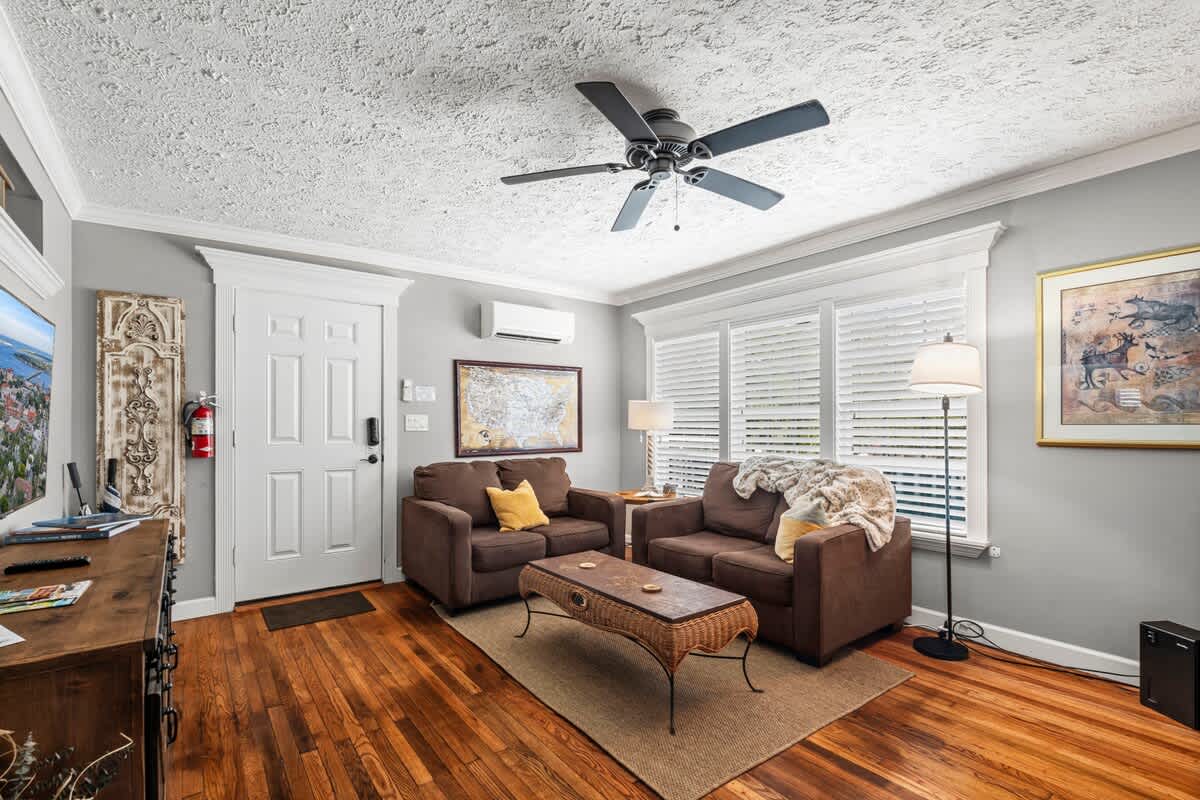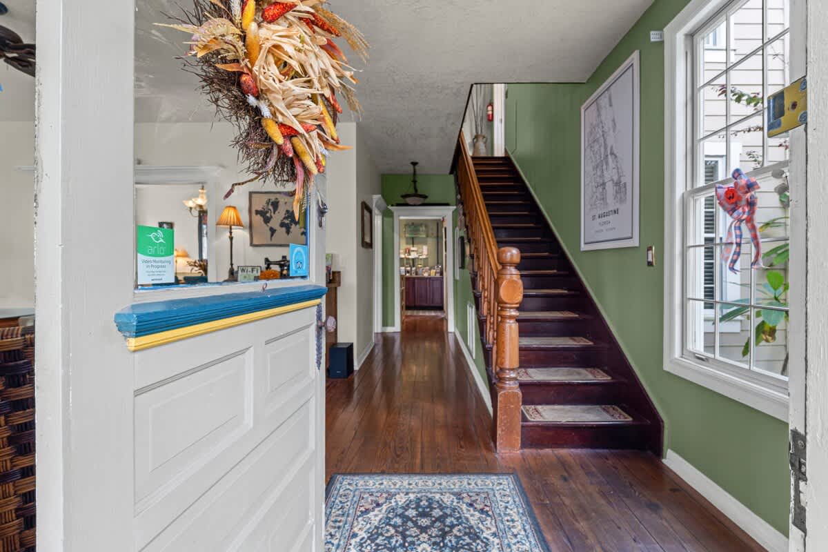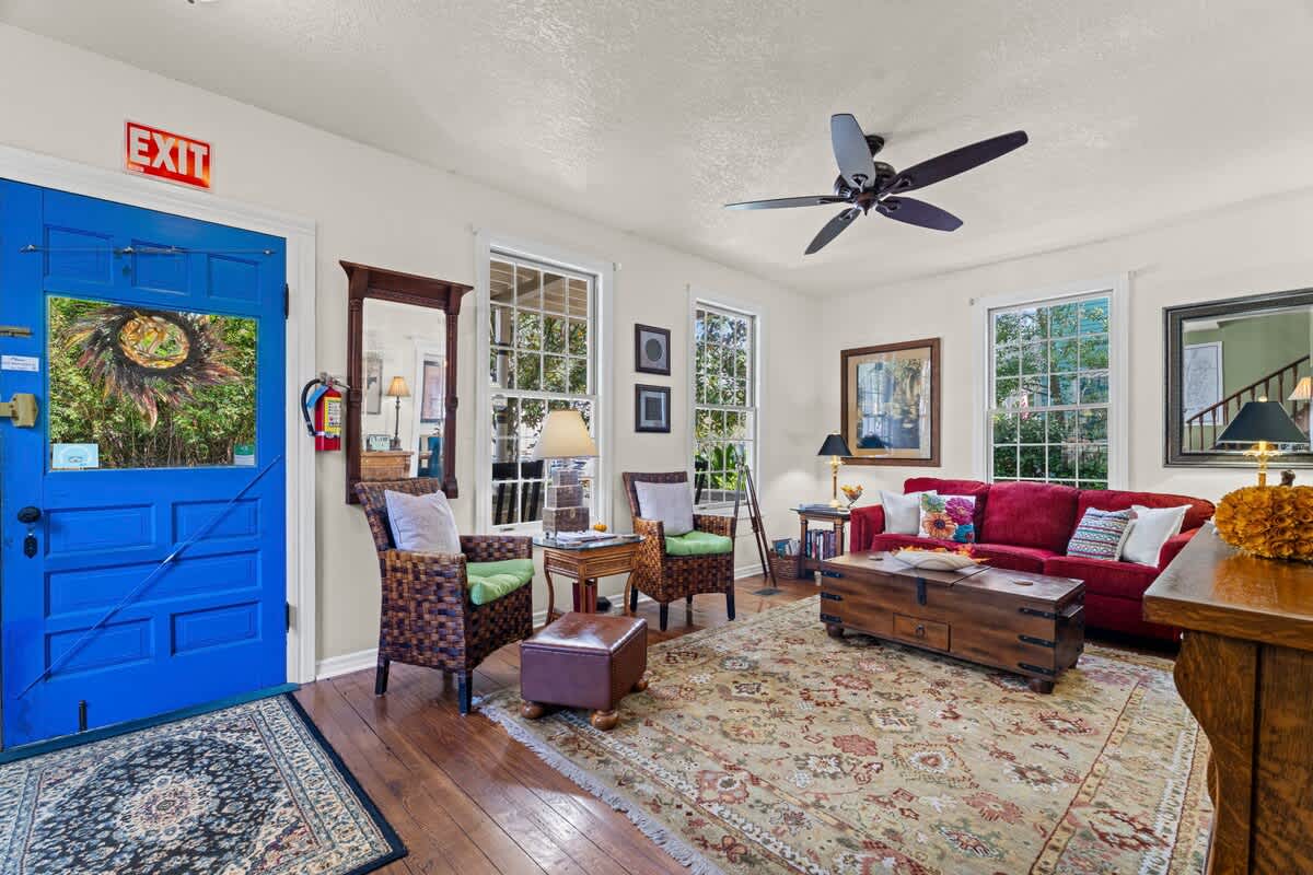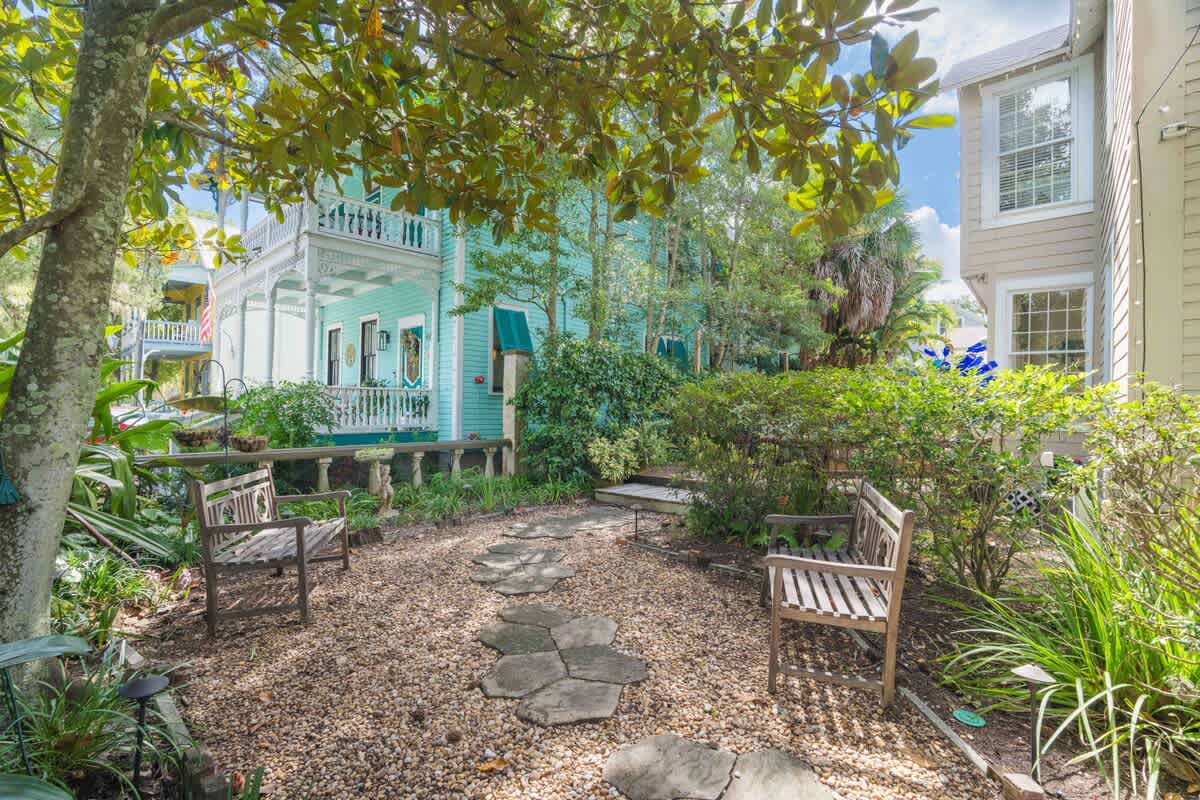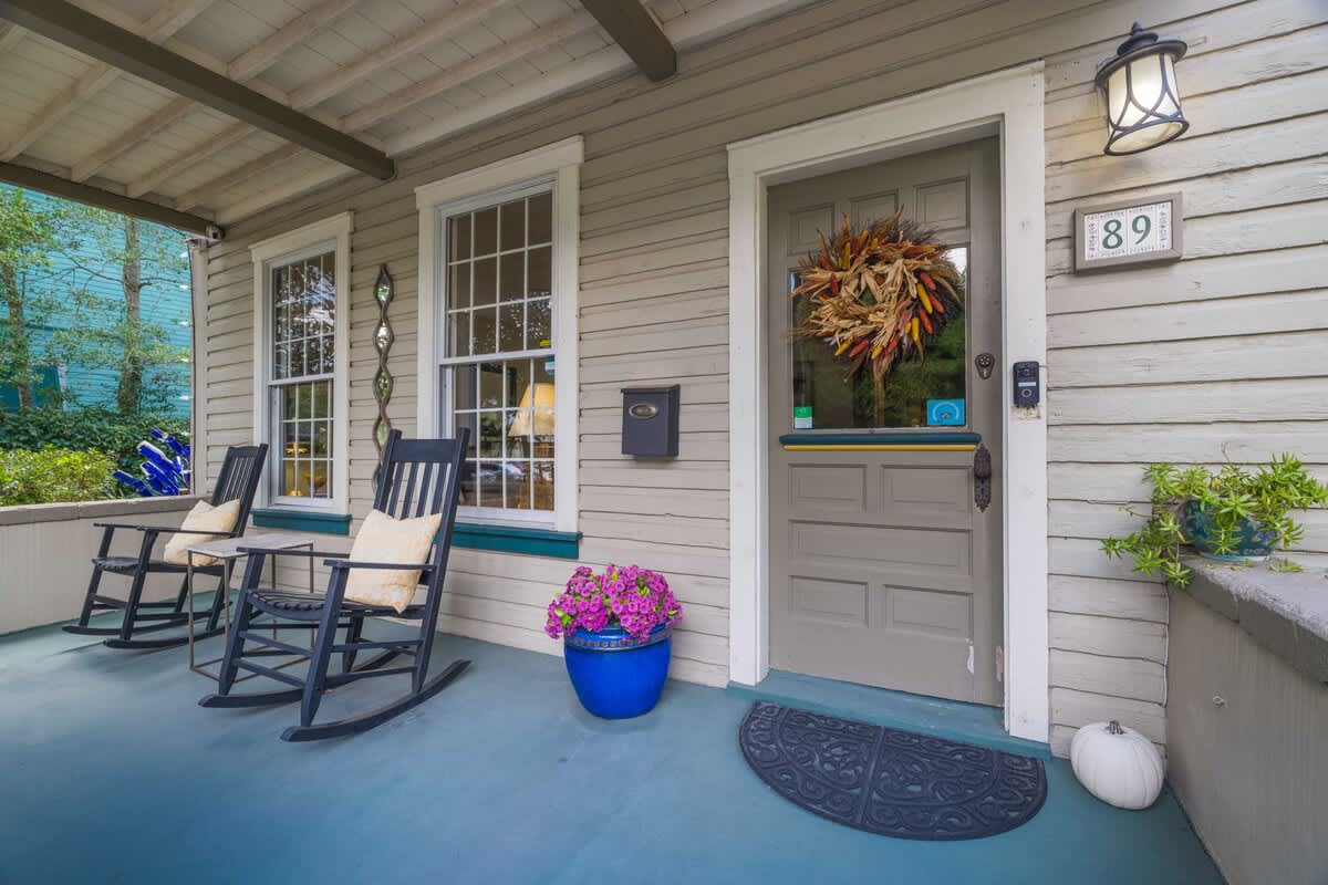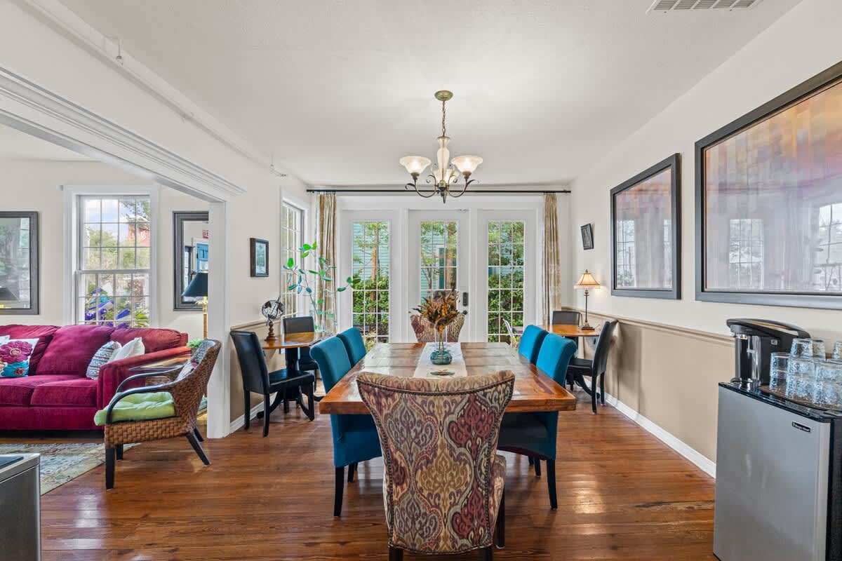 Featuring a plush king-sized bed and a spacious en-suite, the Howard Carter Room is your retreat with its own private covered porch overlooking the garden. Indulge in the ultra-modern 2-person steam shower with massage jets. Relax with HD TV, WiFi, and cozy sitting area. Nestled on a quiet street in historic Lincolnville, you’re steps from dining, art, nightlife, museums, and the bayfront. Victorian charm meets modern comfort in this unique getaway.