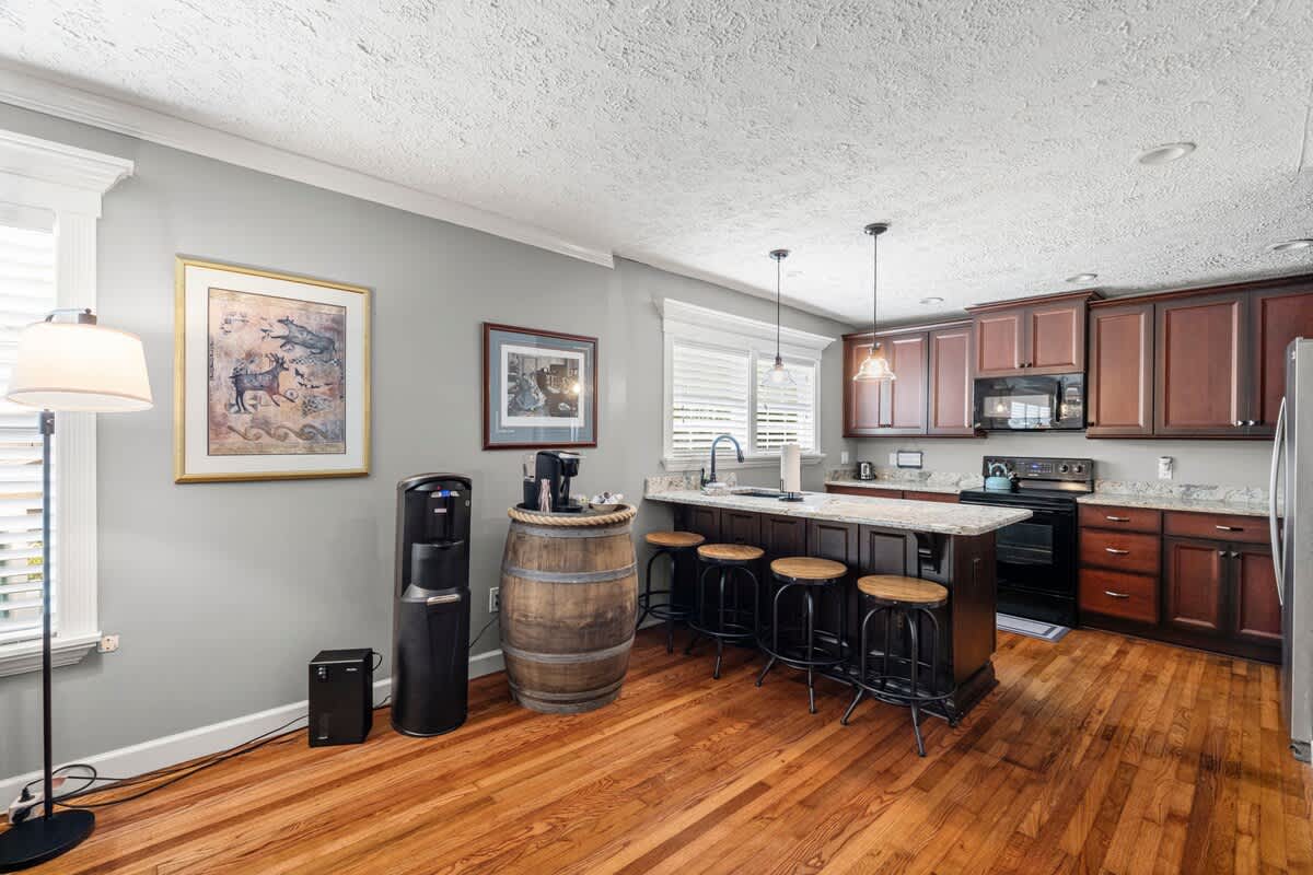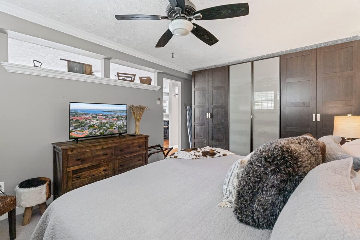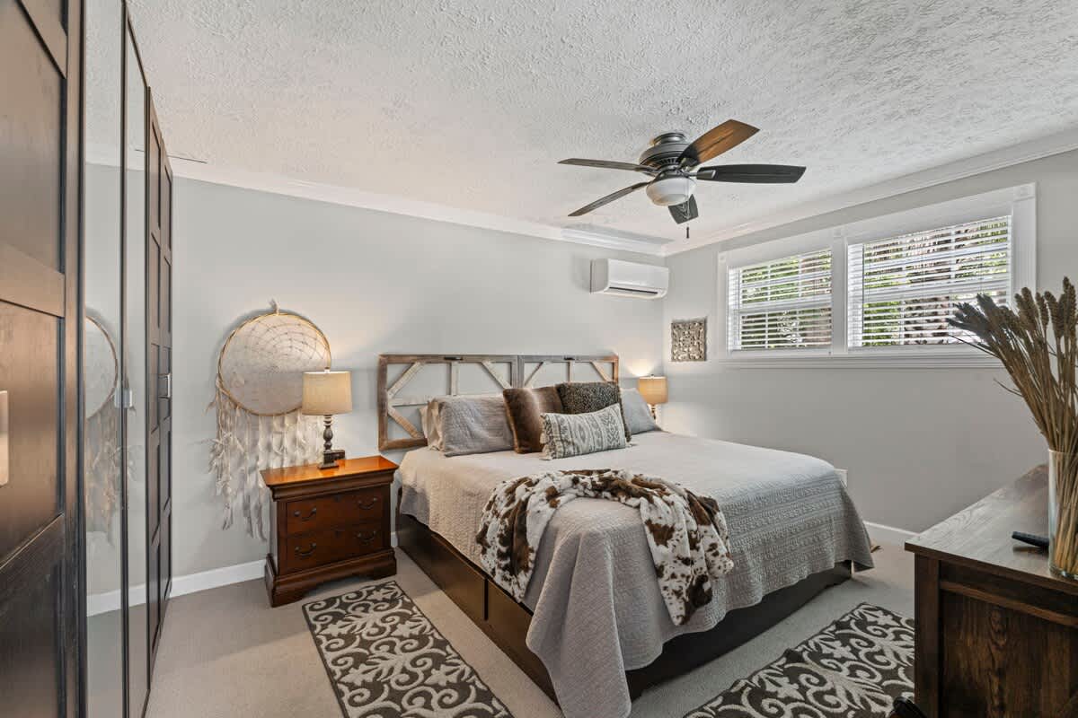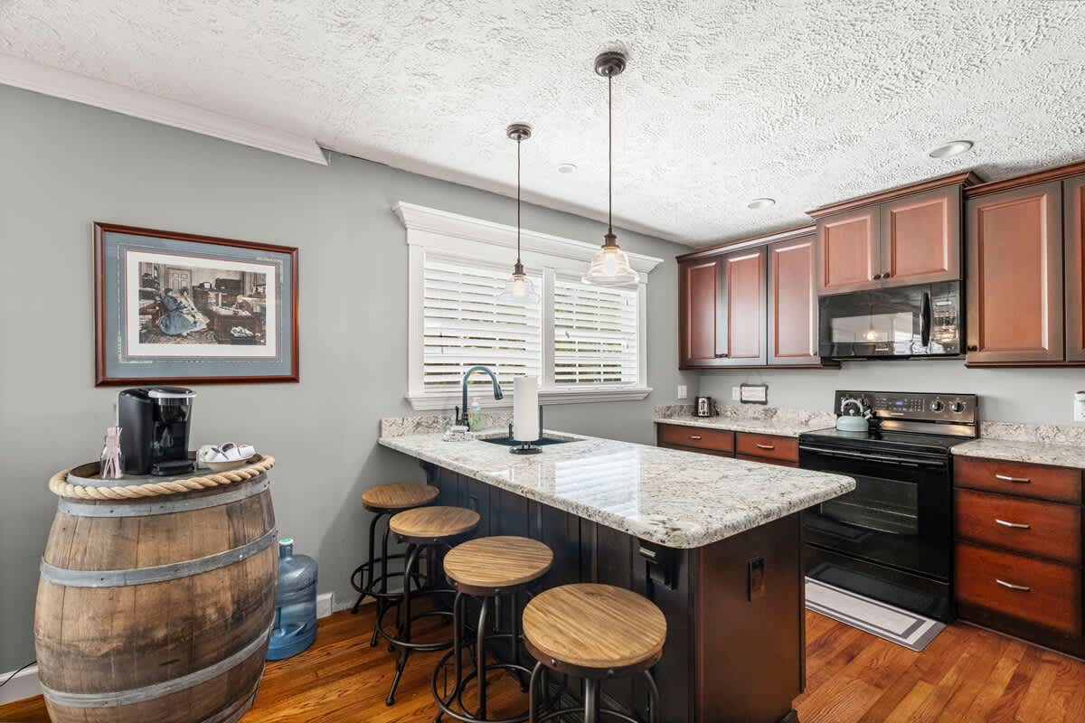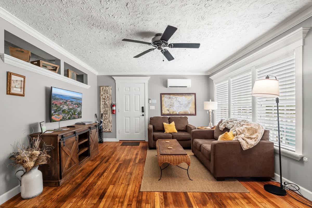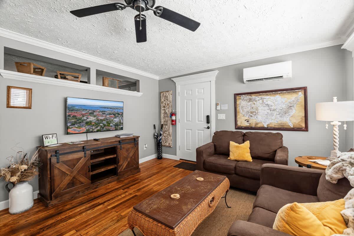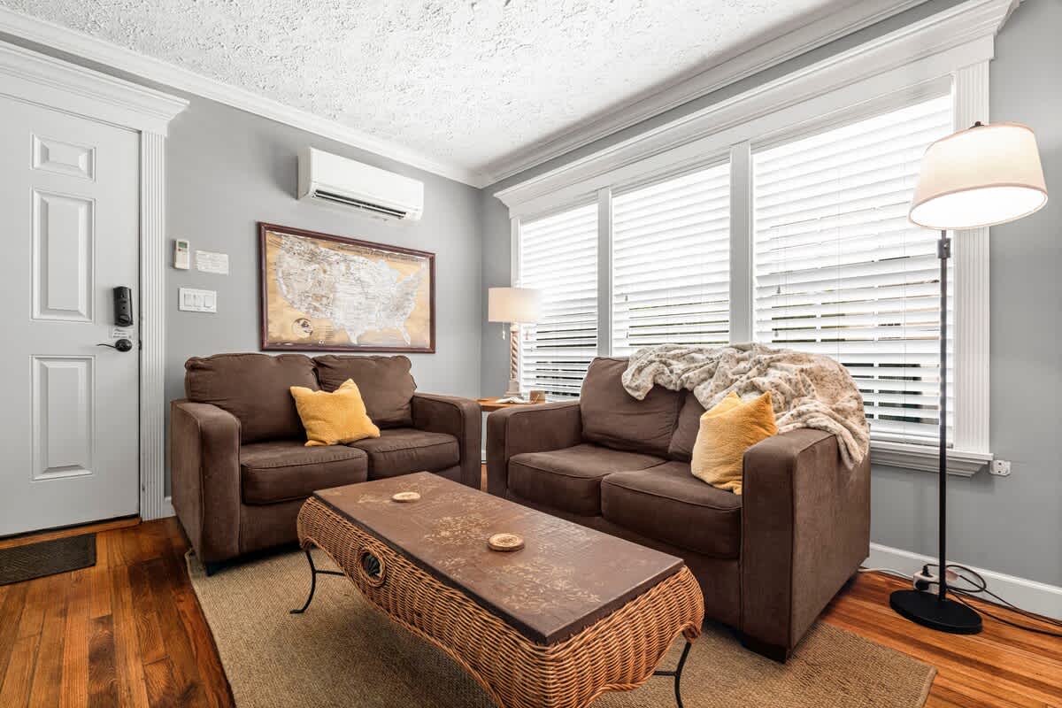 Featuring a plush king-sized bed and a spacious en-suite, the Howard Carter Room is your retreat with its own private covered porch overlooking the garden. Indulge in the ultra-modern 2-person steam shower with massage jets. Relax with HD TV, WiFi, and cozy sitting area. Nestled on a quiet street in historic Lincolnville, you’re steps from dining, art, nightlife, museums, and the bayfront. Victorian charm meets modern comfort in this unique getaway.