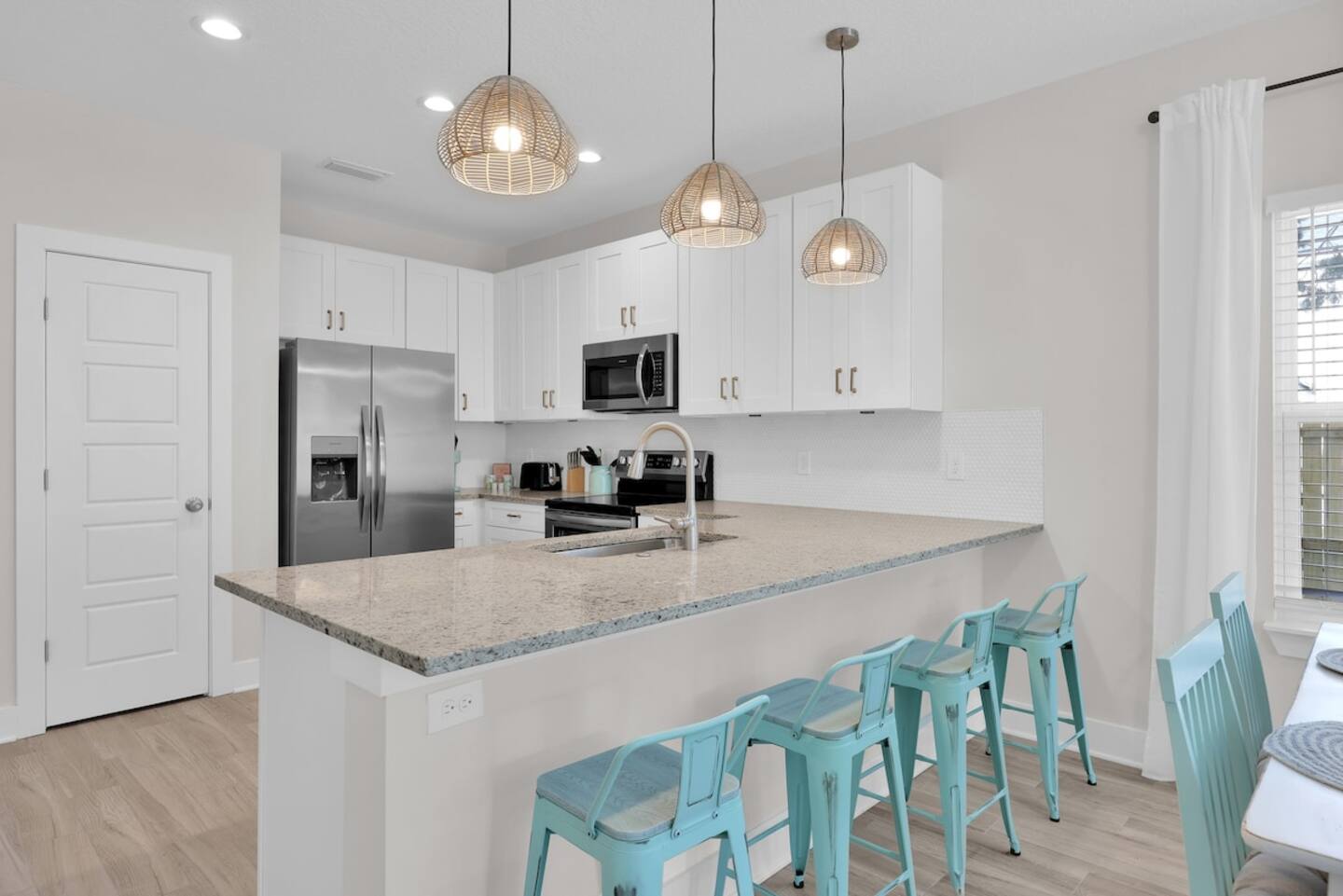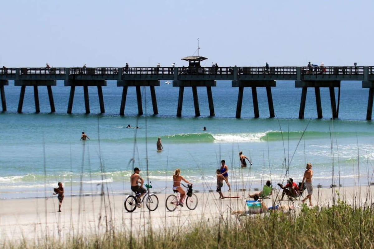 Relax and unwind at the brand new Get A Wave, a fully furnished four bedroom luxury townhouse that has everything you need. Walk to the beach as you will only be 7 blocks away, and centrally located to great restaurants, breweries, and Publix. This beautiful new townhome is fully stocked and provides you with everything you need for a get away.