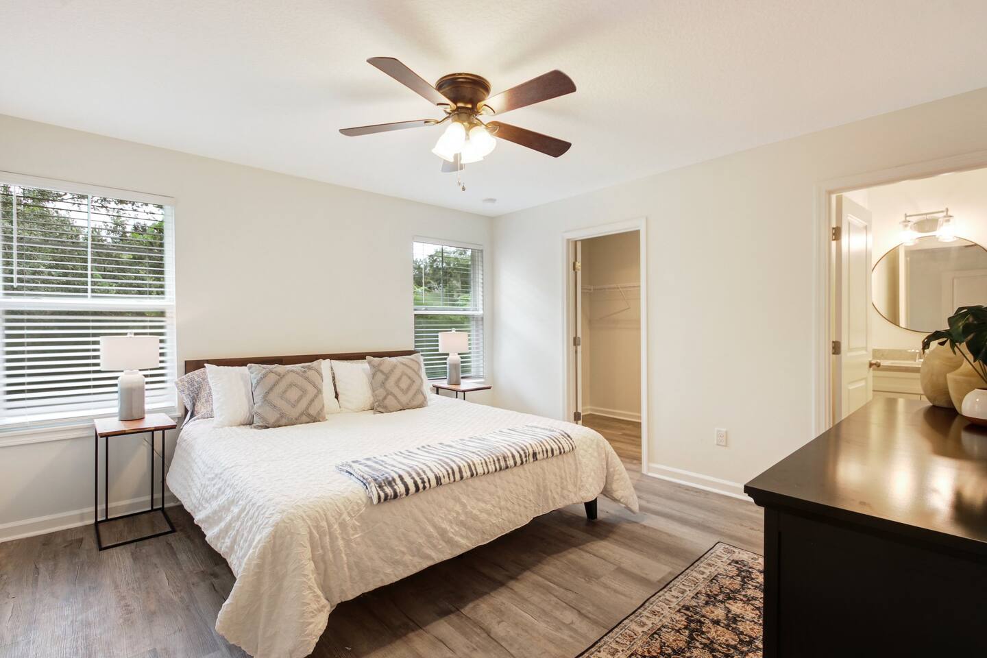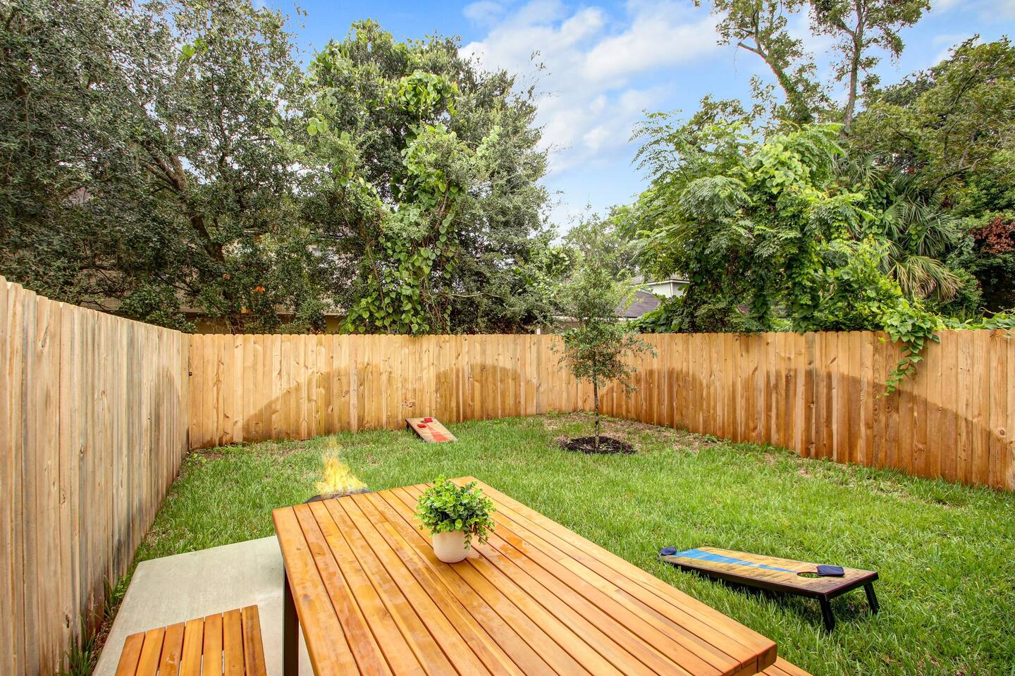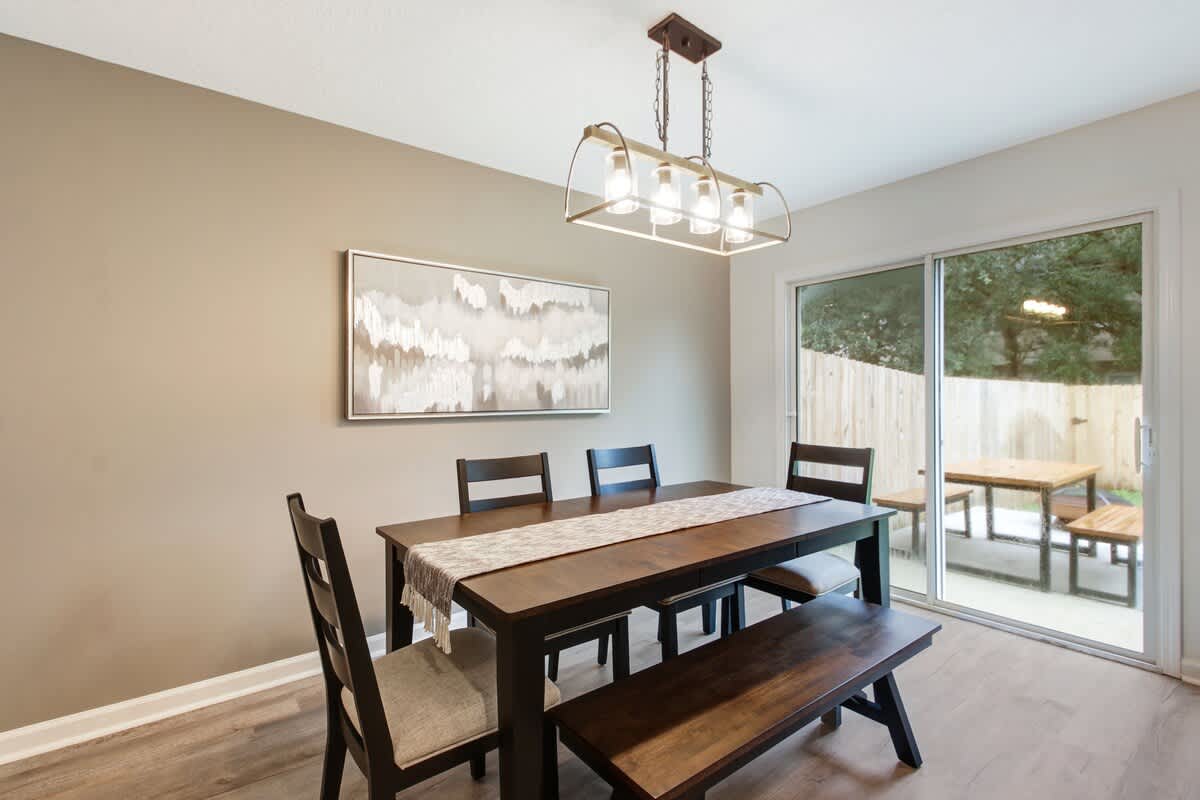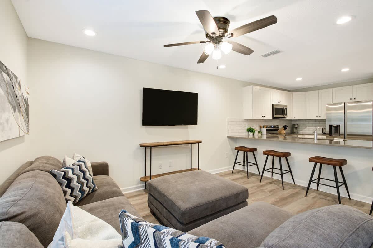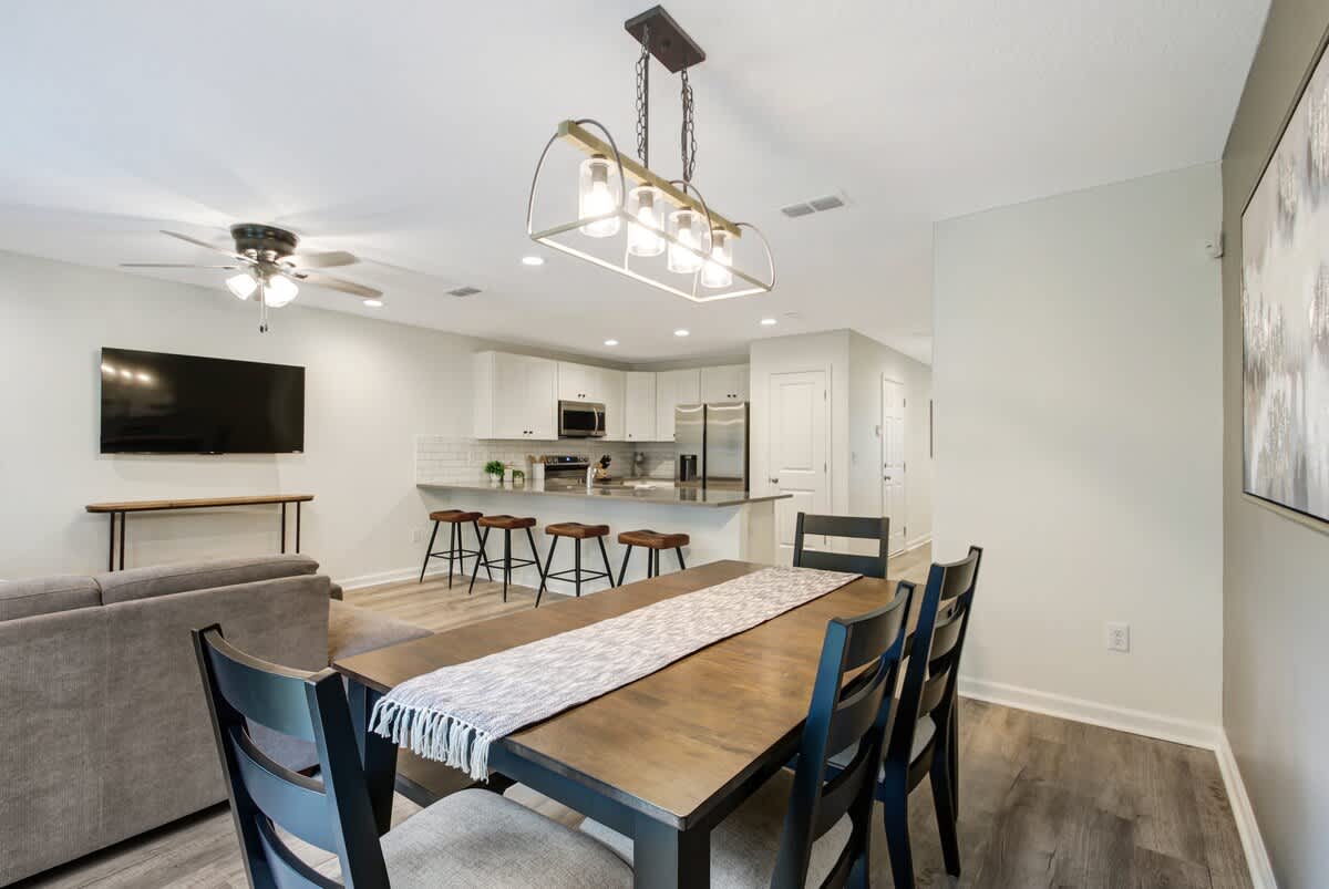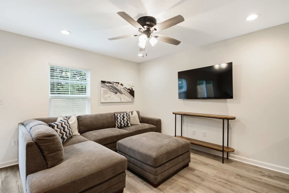 Want to visit Jax without breaking the bank! This home has it all, from a fully functional kitchen to a spacious living room and dining area. The backyard has its own fire pit and outdoor seating for relaxing and enjoying the outdoors. Not to mention a cornhole set perfect for relaxing with friends The luxurious quartz countertops give this home an upscale look, and white shaker cabinets add to the modern feel.
