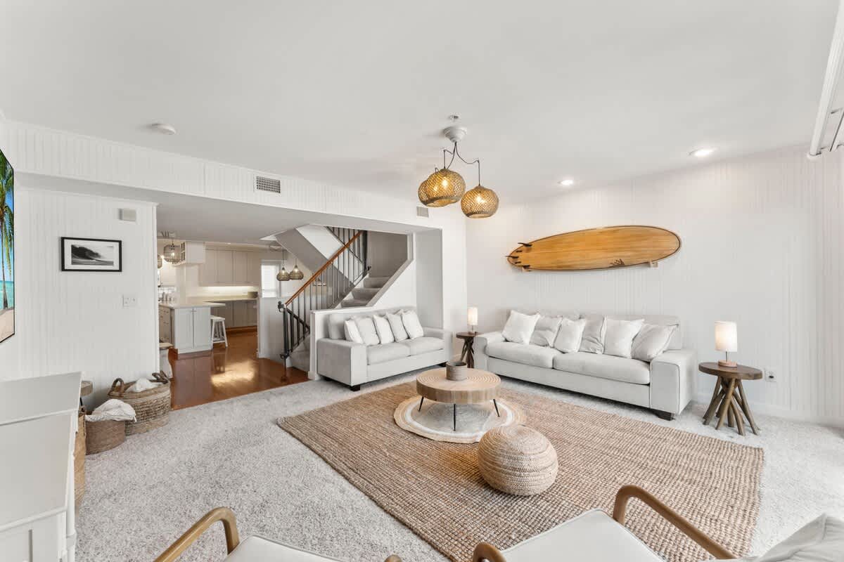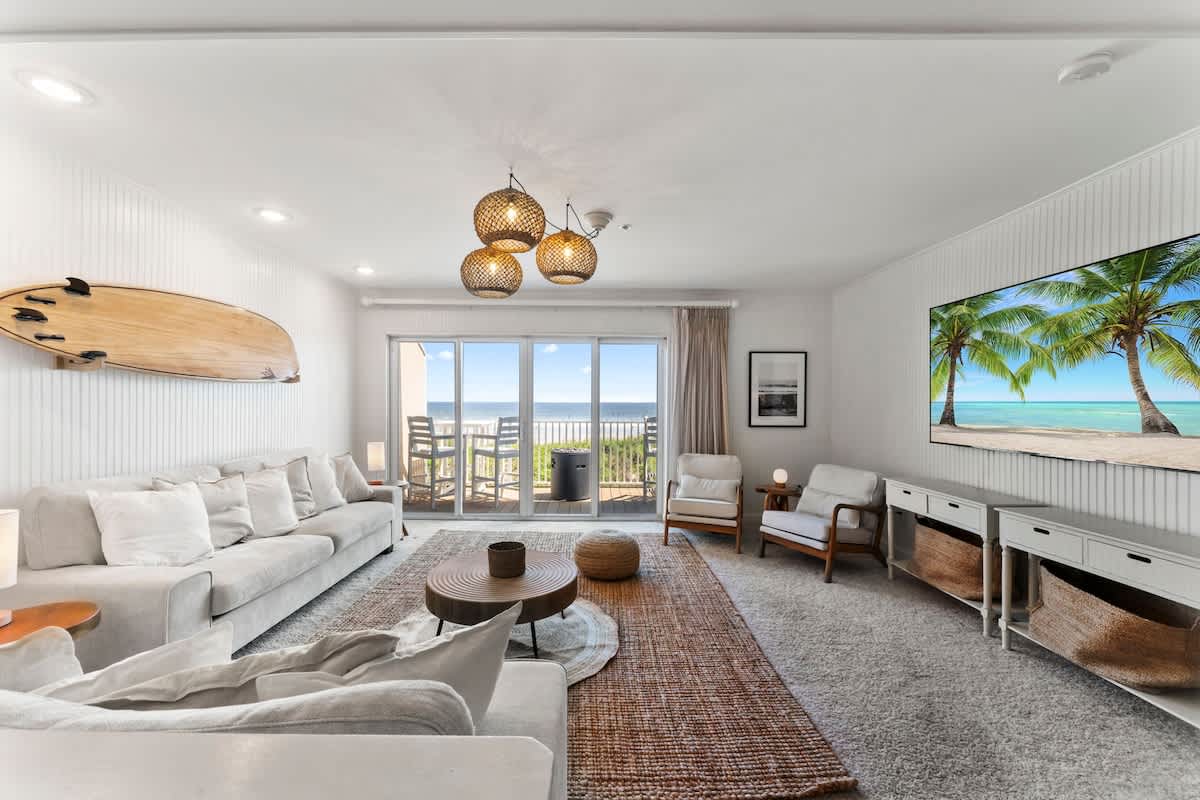Welcome to your dream oceanfront retreat! This multi-level townhouse offers breathtaking views and everything you need for the perfect beach getaway. You’ll find an open living space with floor-to-ceiling windows that showcase amazing panoramic ocean views. Step outside to your private balcony for some fresh sea air or just relax inside with the view. Tastefully designed, all of the art in the house is from Outdoor Photographers, Max Hall and Tanner Olthoff. We can’t wait to host you!