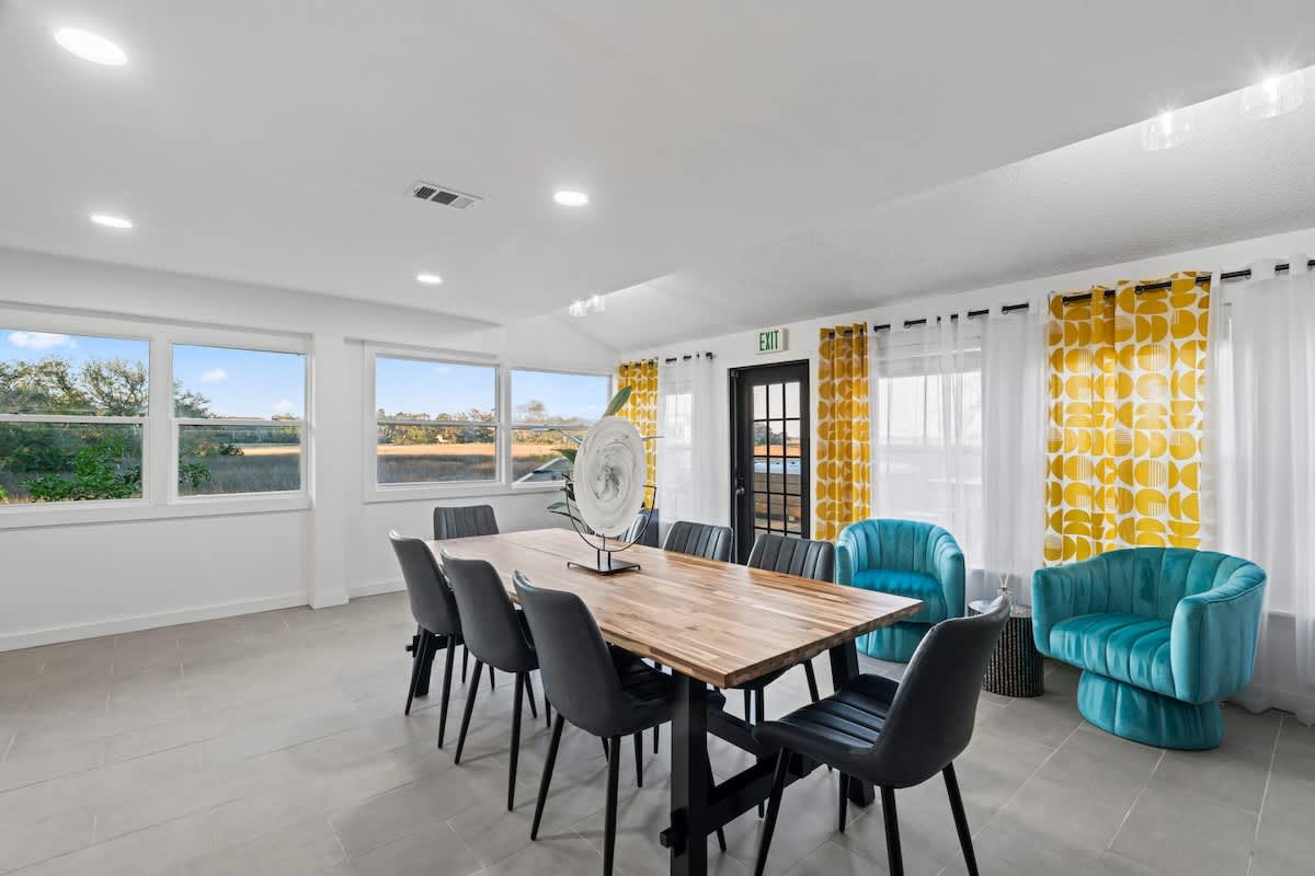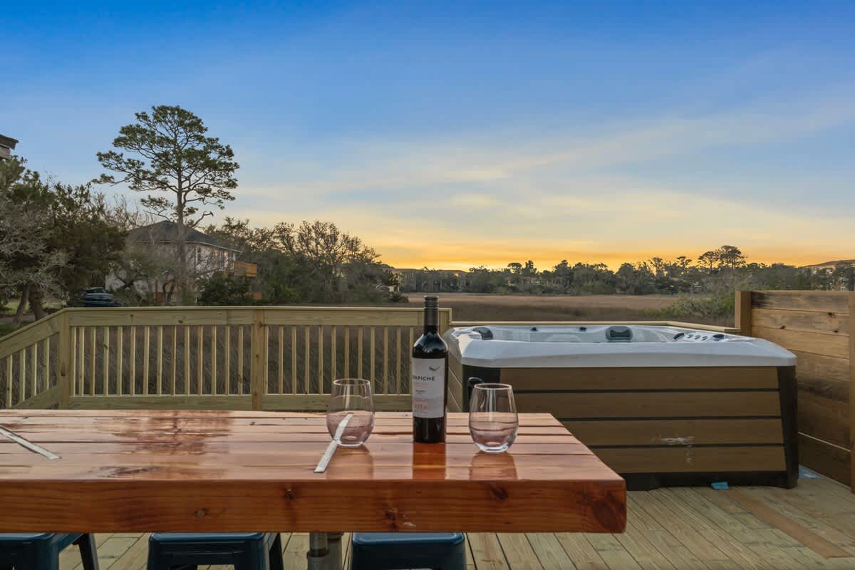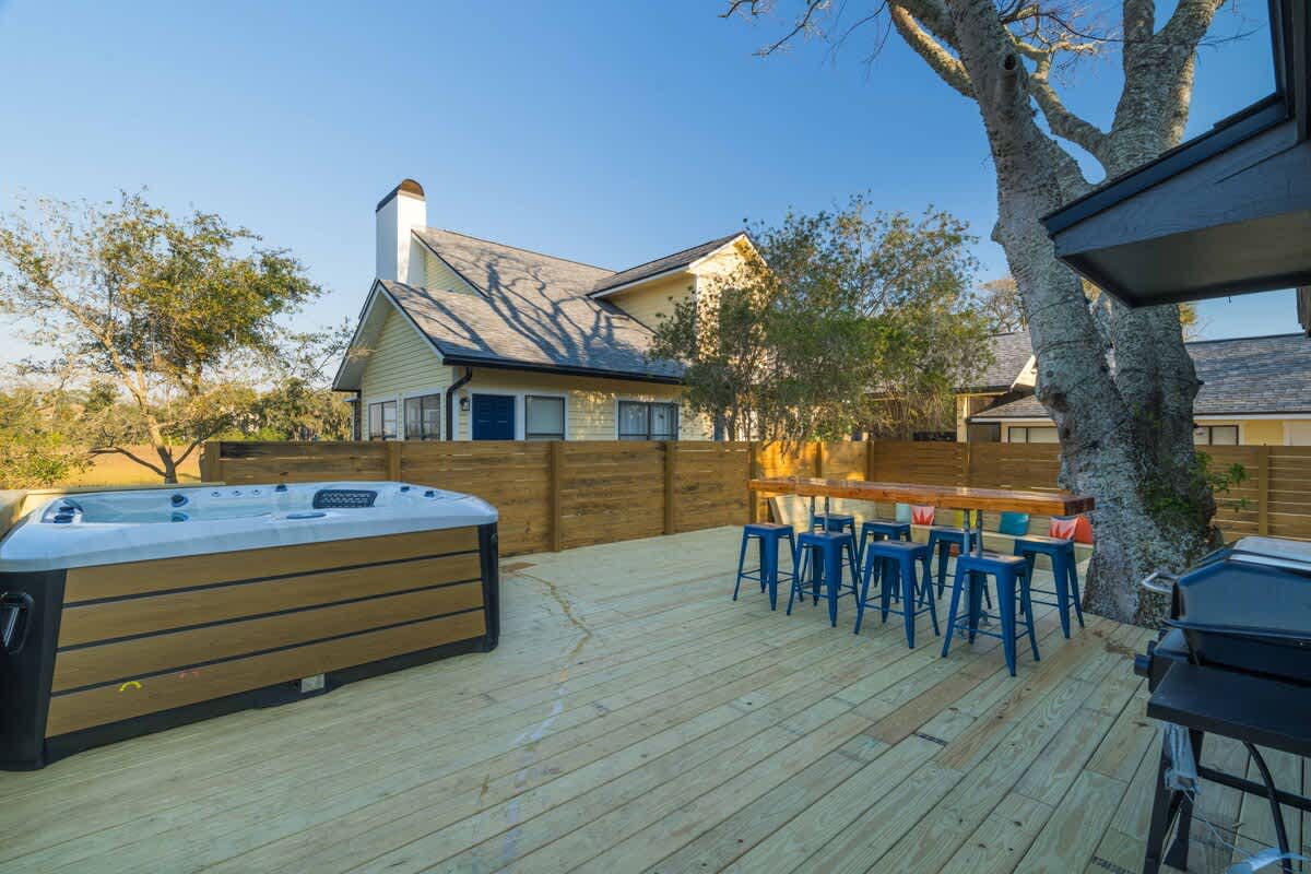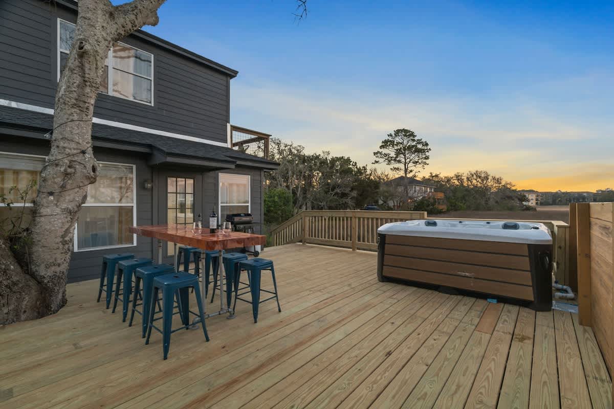 We loved the house and all the amenities. I would definitely come back at a quieter time. It was the perfect place to spend with kids aged 7-14. Unfortunately there was city water lines being replaced directly in front of the house and there was non stop noise during the day and a pump and generator running at night all week long. This is the only reason I gave location 2 stars. Otherwise the neighborhood looks lovely. The views of the marsh are beautiful. I recommend this home, just make sure the road/water line construction has moved on!
