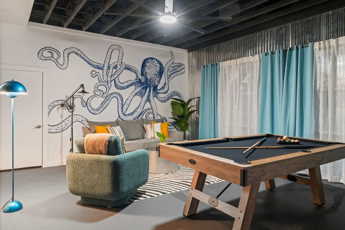 We had a wonderful stay at Andrew’s place! It was decorated so cute, we especially loved the octopus mural. It was perfect for our family of four. We loved soaking in the hot tub, playing darts, and shooting pool. It was extremely clean and the perfect location to great restaurants, attractions, and shopping. I would recommend this rental to others visiting St Augustine.