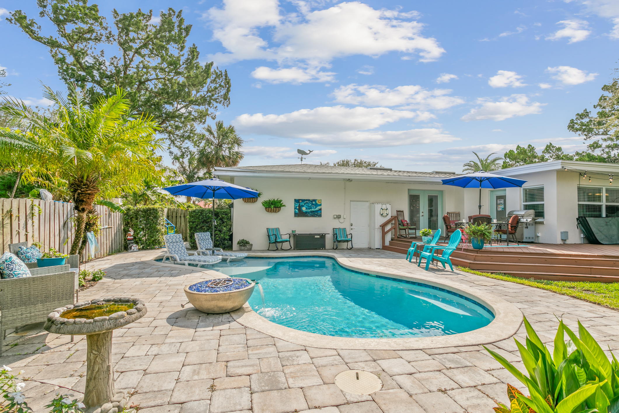 Welcome to your charming poolside retreat at the base of the Bridge of Lions! This home draws you in with its inviting presence: a large front yard, friendly sidewalks, and a spacious front porch flanked by bespoke lion statues and an iconic old tree that exude timeless charm. Located in St. Augustine, this home places you in one of the most popular, vibrant communities in Florida. It’s truly a blend of comfort, beauty, and just a short walk over the Lions Bridge into downtown.