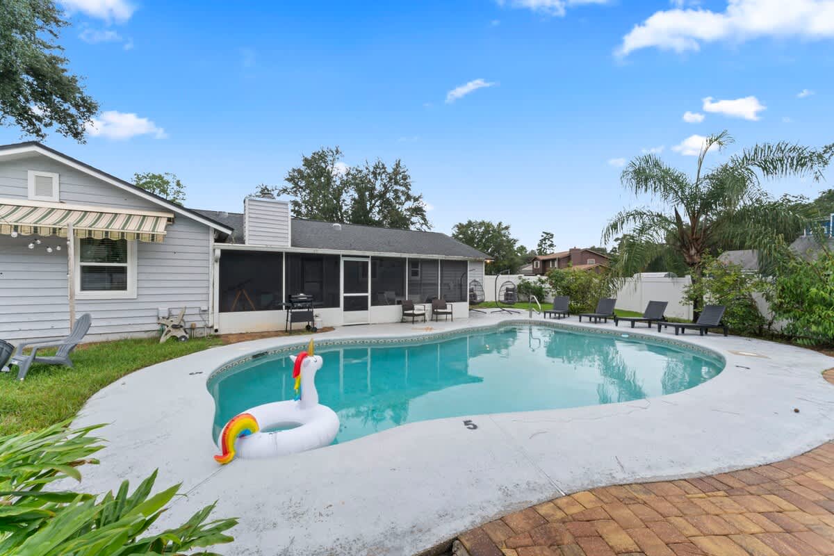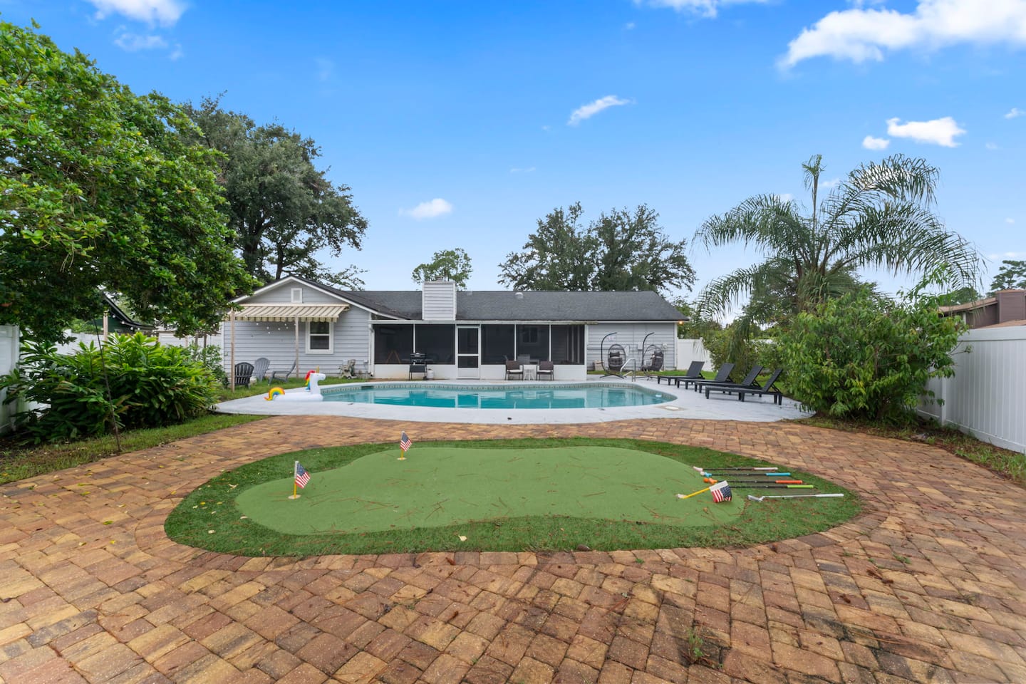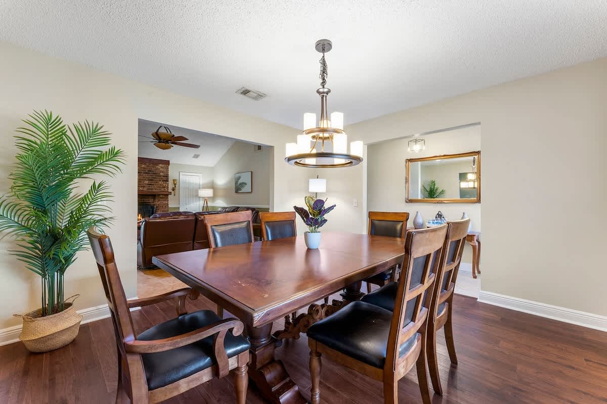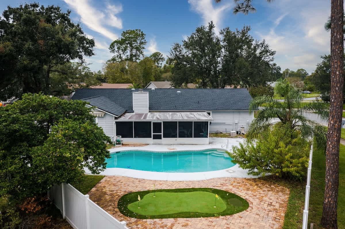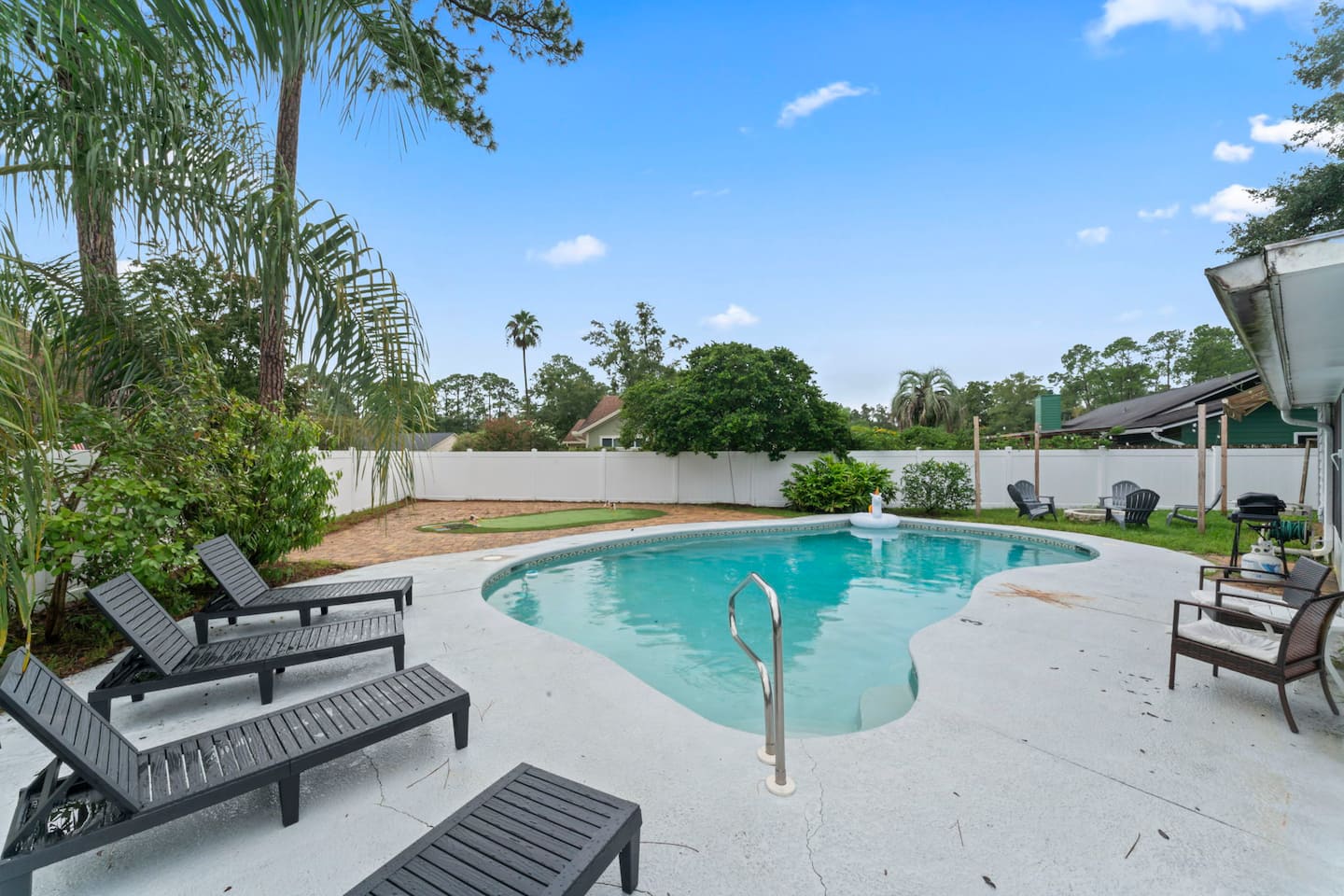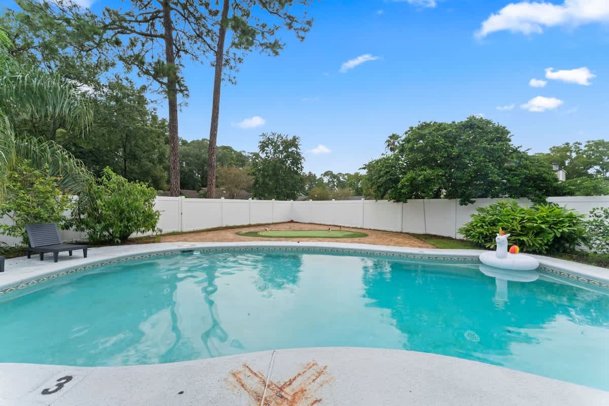 Experience an authentic, relaxing vacation retreat in the heart of Jacksonville. Located just off 295 and in a very central location. 3 bedrooms on one side of the home and two bedrooms on another side of the home with common areas in the middle. During your stay, you will have access to the pool, which is ideal for some fun pool time after spending some time at the nearby mini golf course. This house offers everything for a great family vacation or weekend getaway.