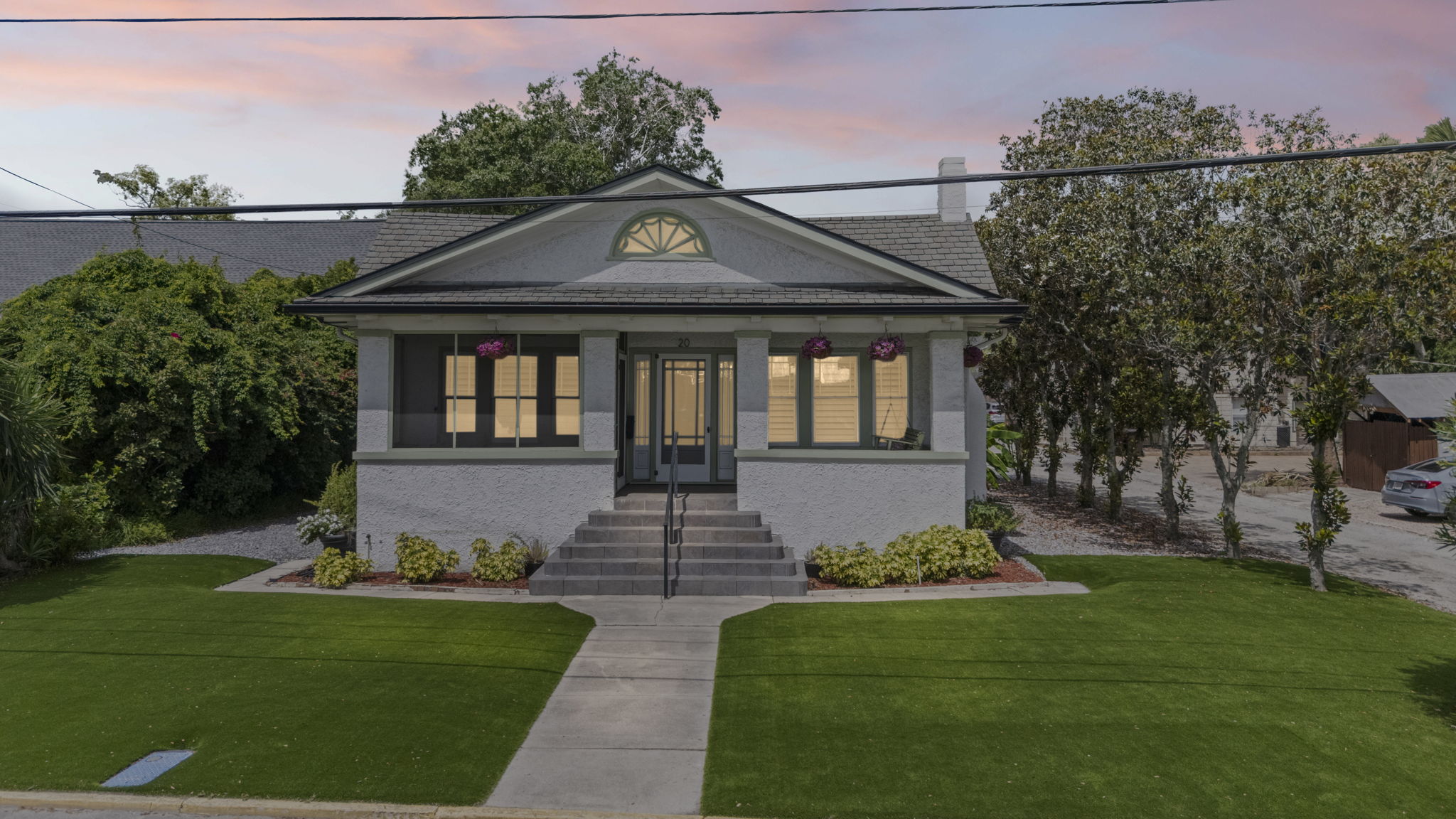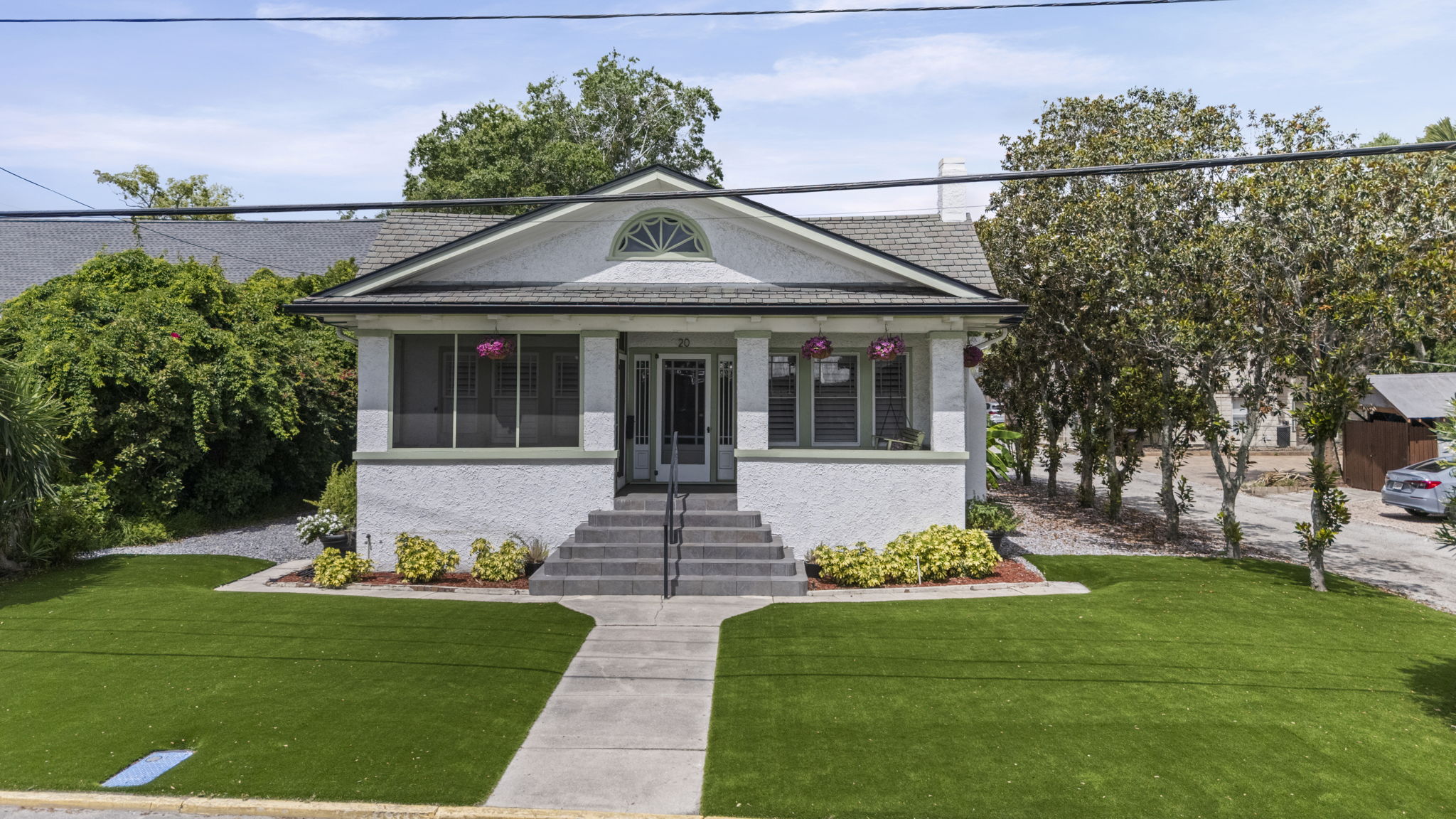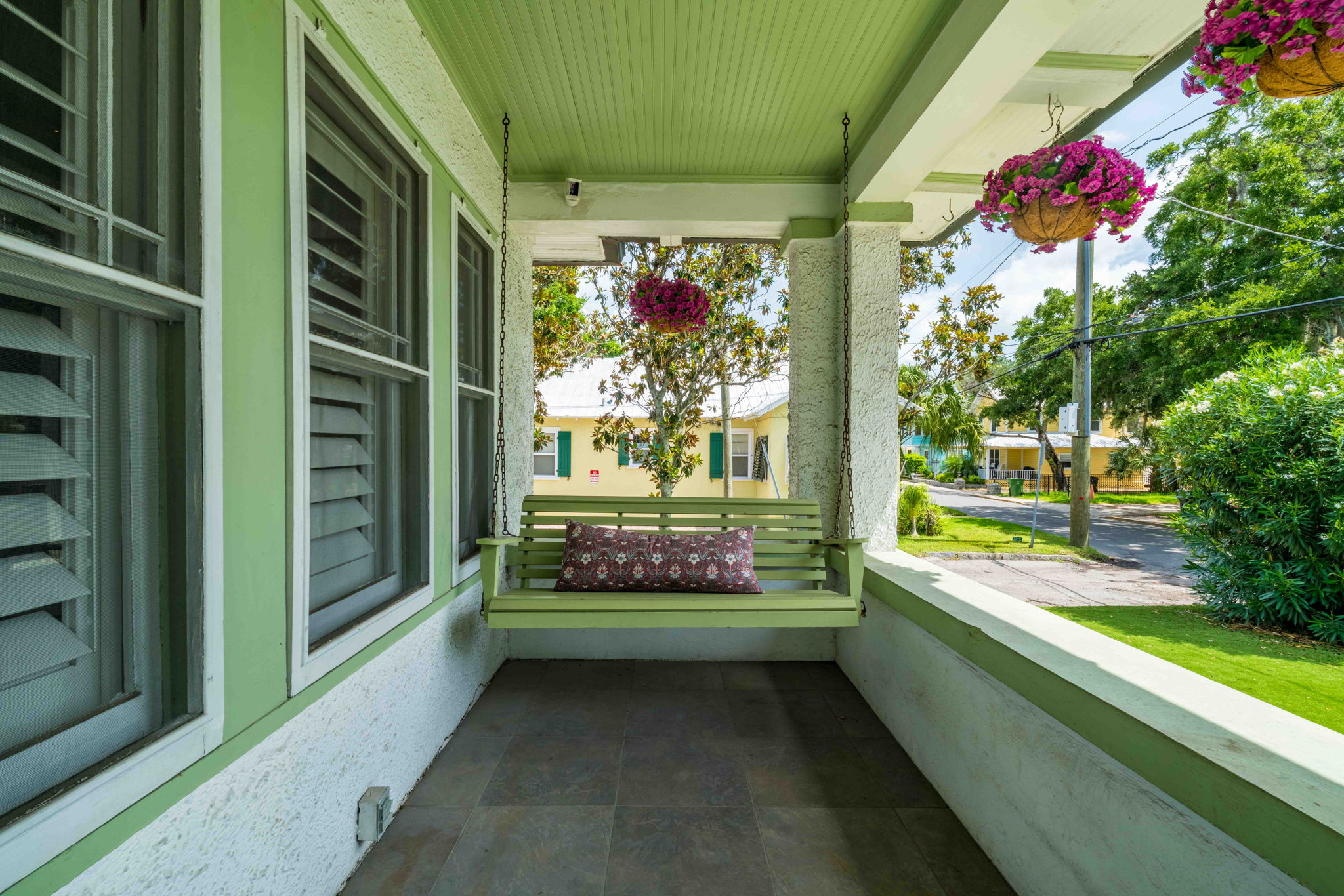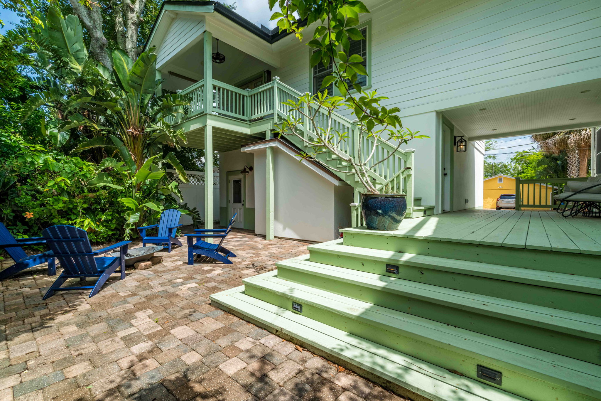 Welcome to this charming 4-bedroom, 3-bath downtown retreat! The main house offers 3 bright bedrooms, updated bathrooms, a cozy living room, spacious dining area, and a European-style kitchen. Enjoy morning coffee on the wide front porch or in the private courtyard. Connected by a breezeway, the fully equipped guest cottage features a queen bed, built-in bunks, a full kitchen, and a stylish bath. Just a short walk to St. Augustine’s historic district! Book the entire property!