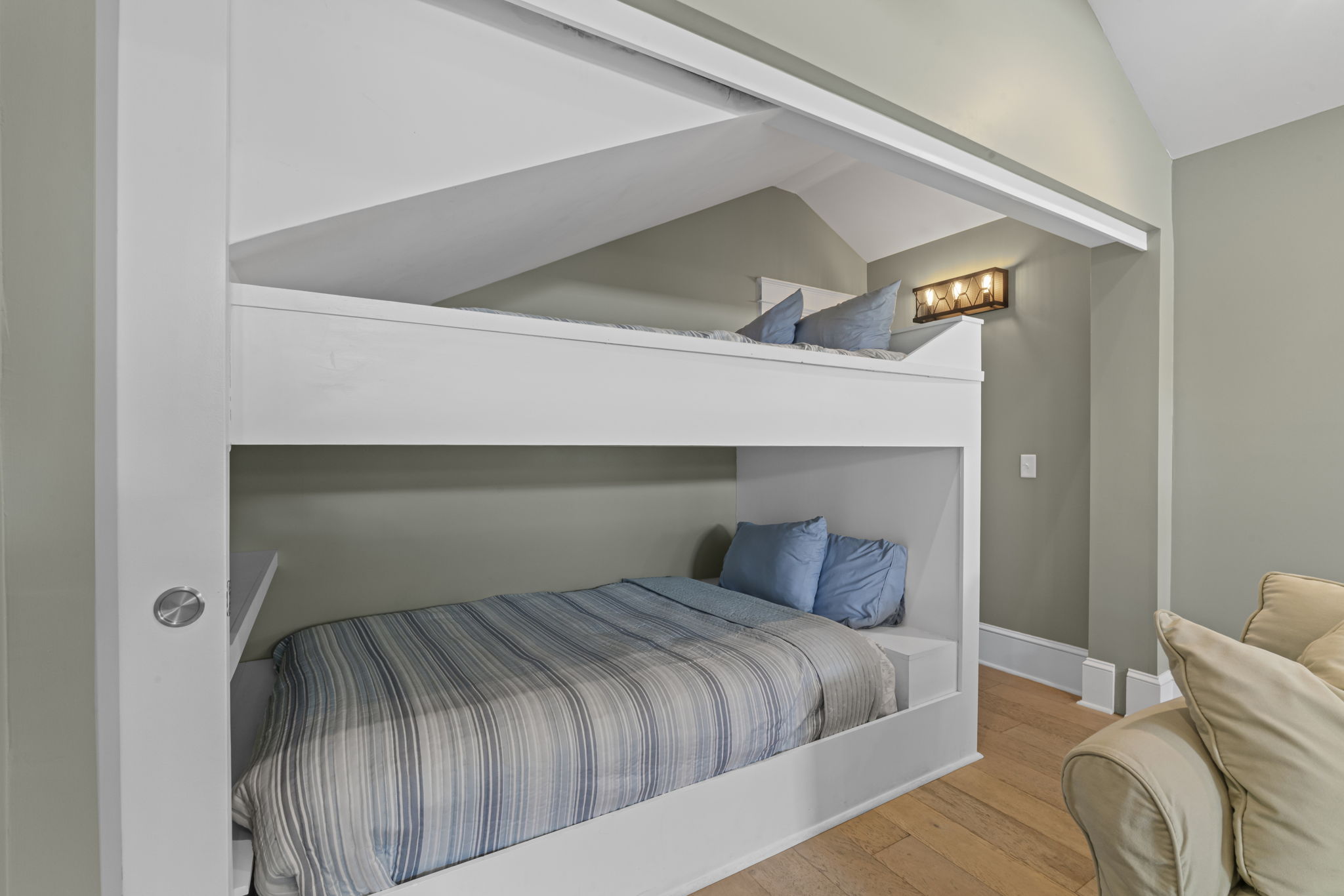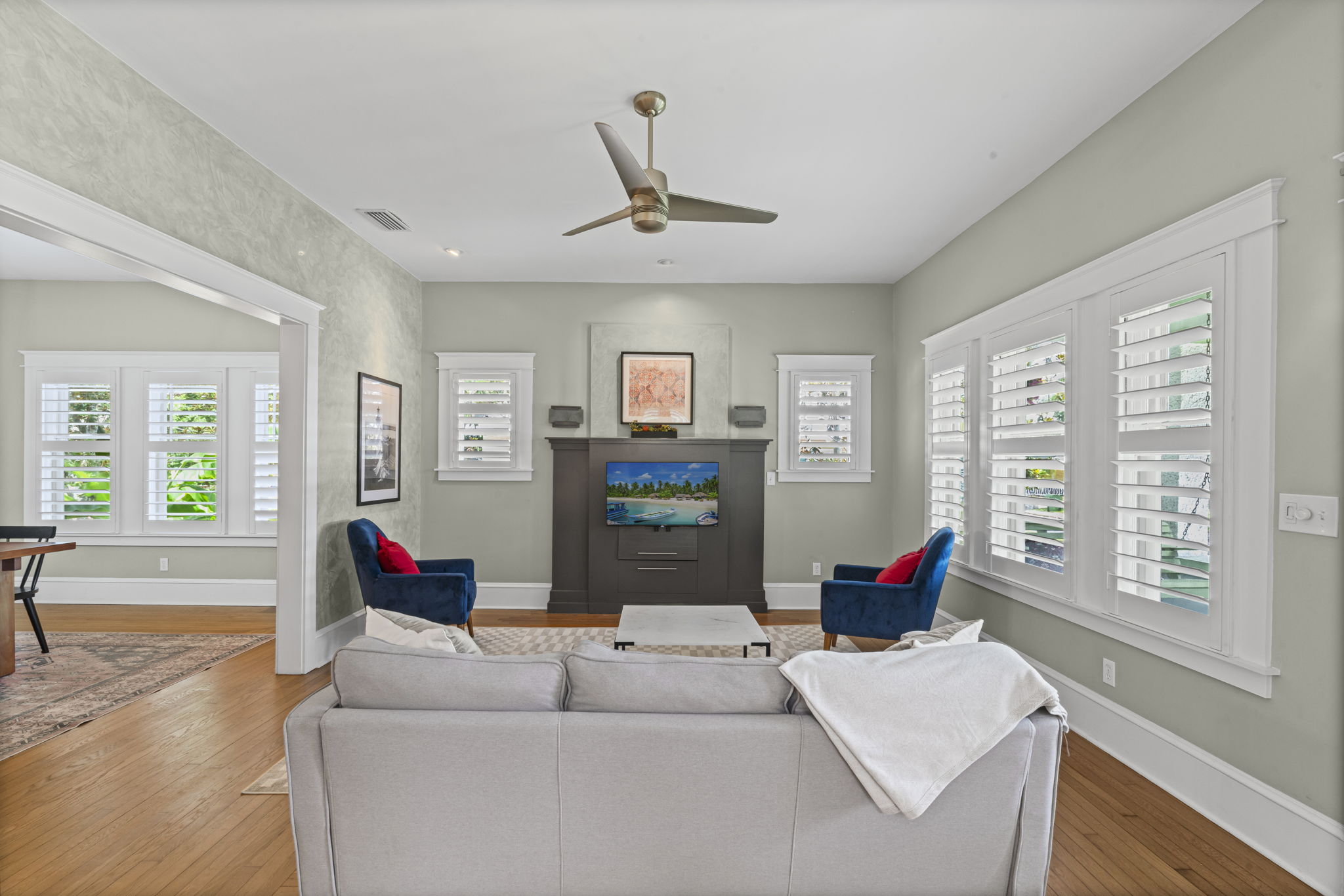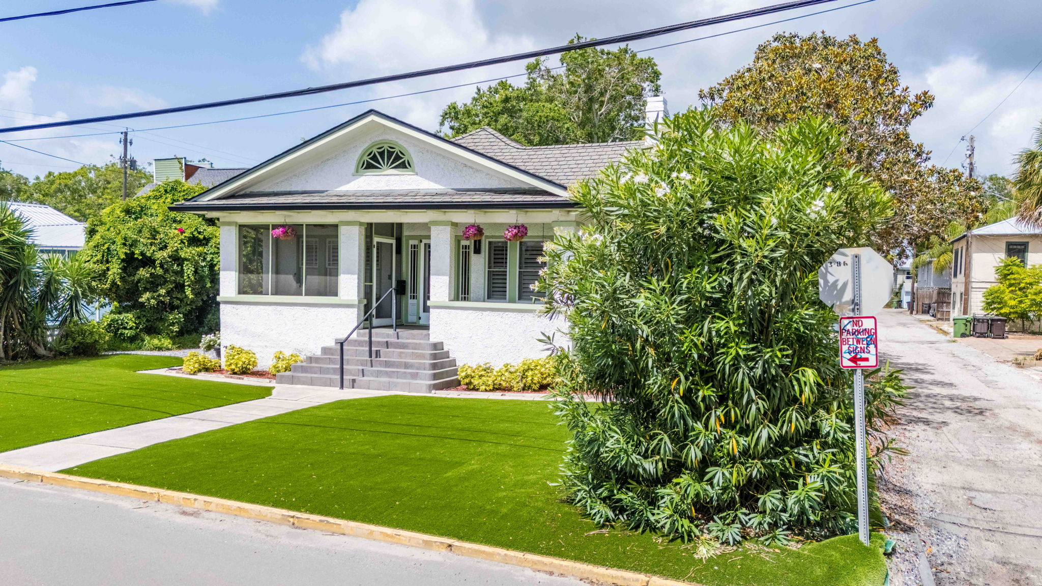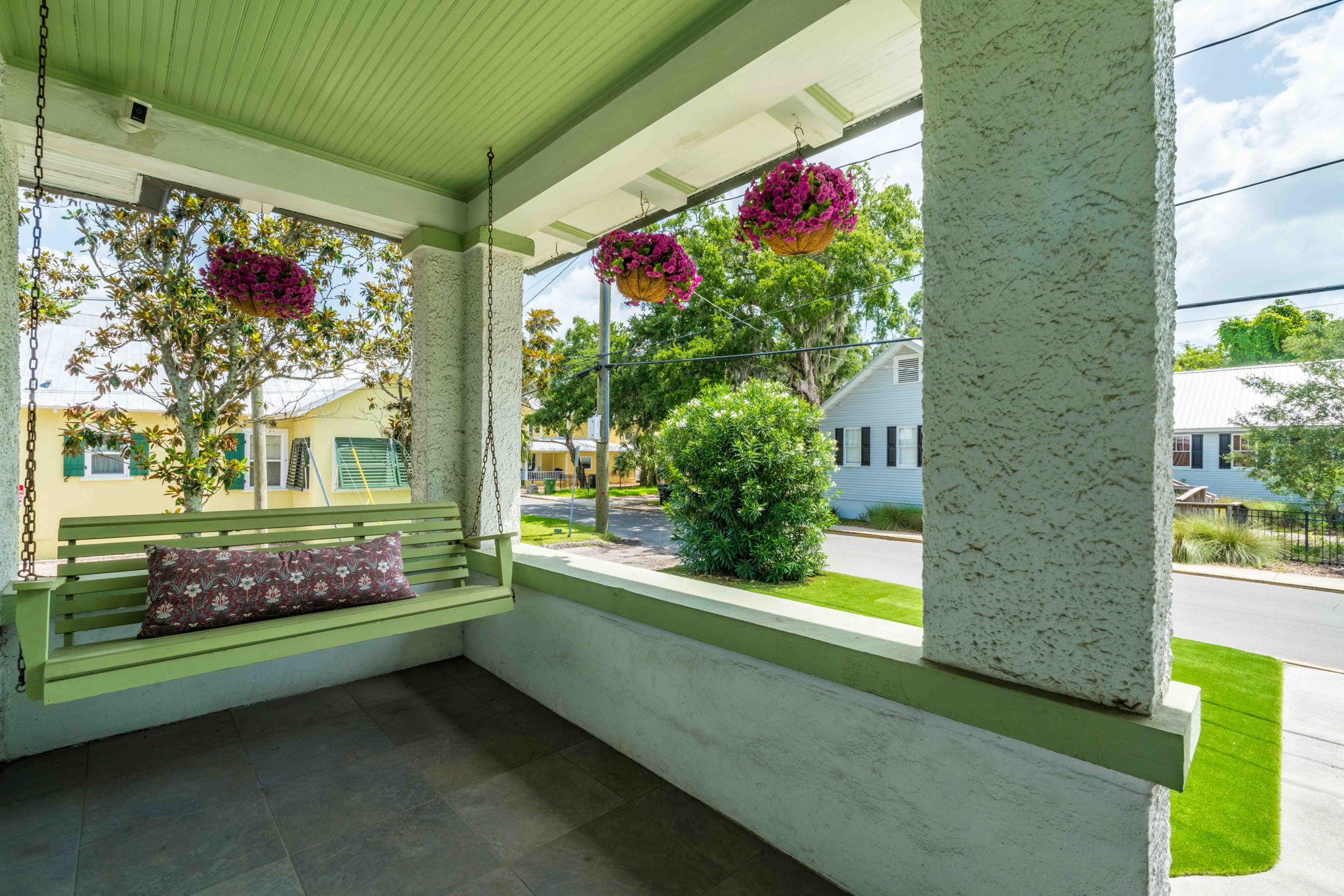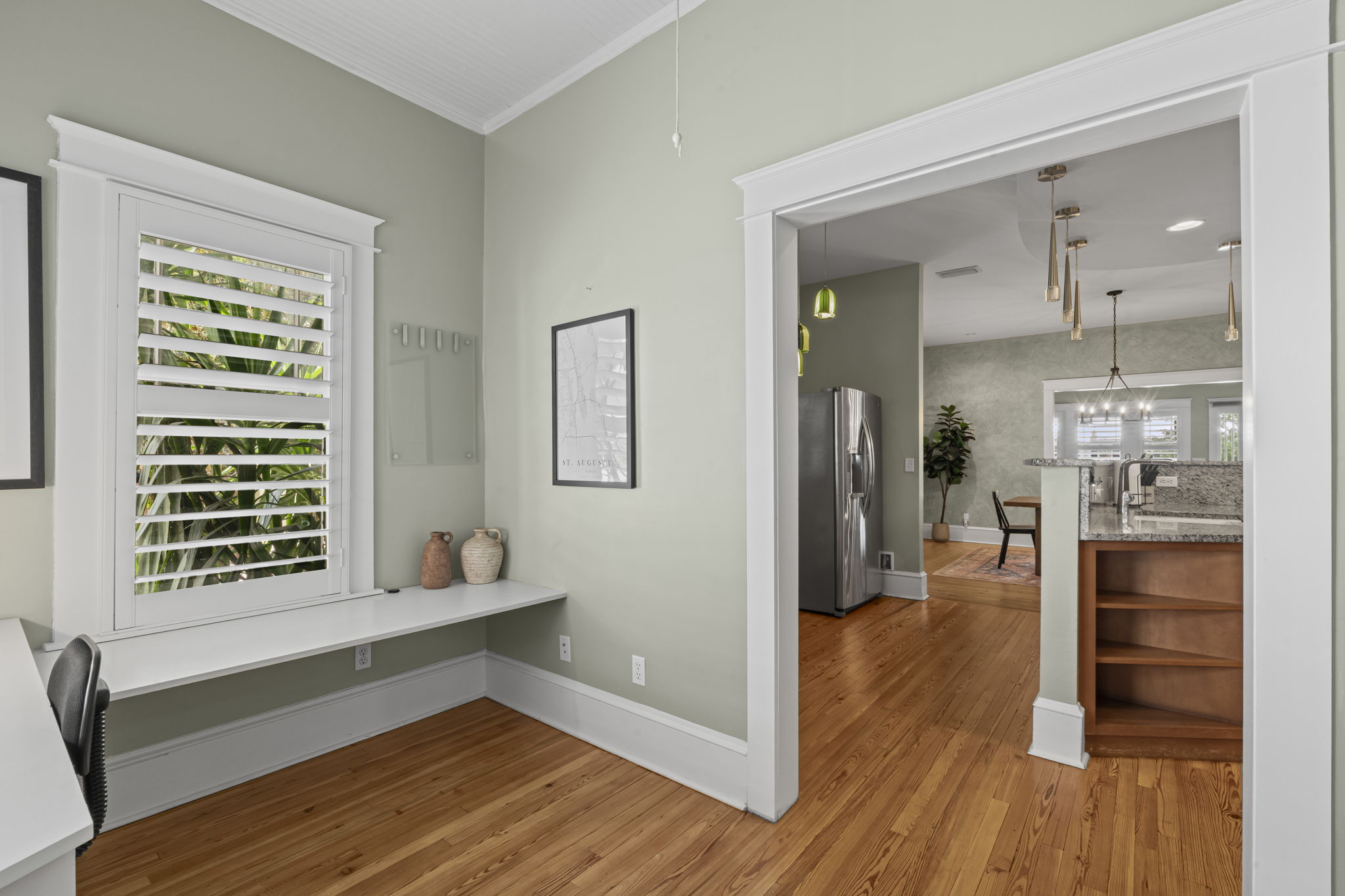 Welcome to this charming 4-bedroom, 3-bath downtown retreat! The main house offers 3 bright bedrooms, updated bathrooms, a cozy living room, spacious dining area, and a European-style kitchen. Enjoy morning coffee on the wide front porch or in the private courtyard. Connected by a breezeway, the fully equipped guest cottage features a queen bed, built-in bunks, a full kitchen, and a stylish bath. Just a short walk to St. Augustine’s historic district! Book the entire property!