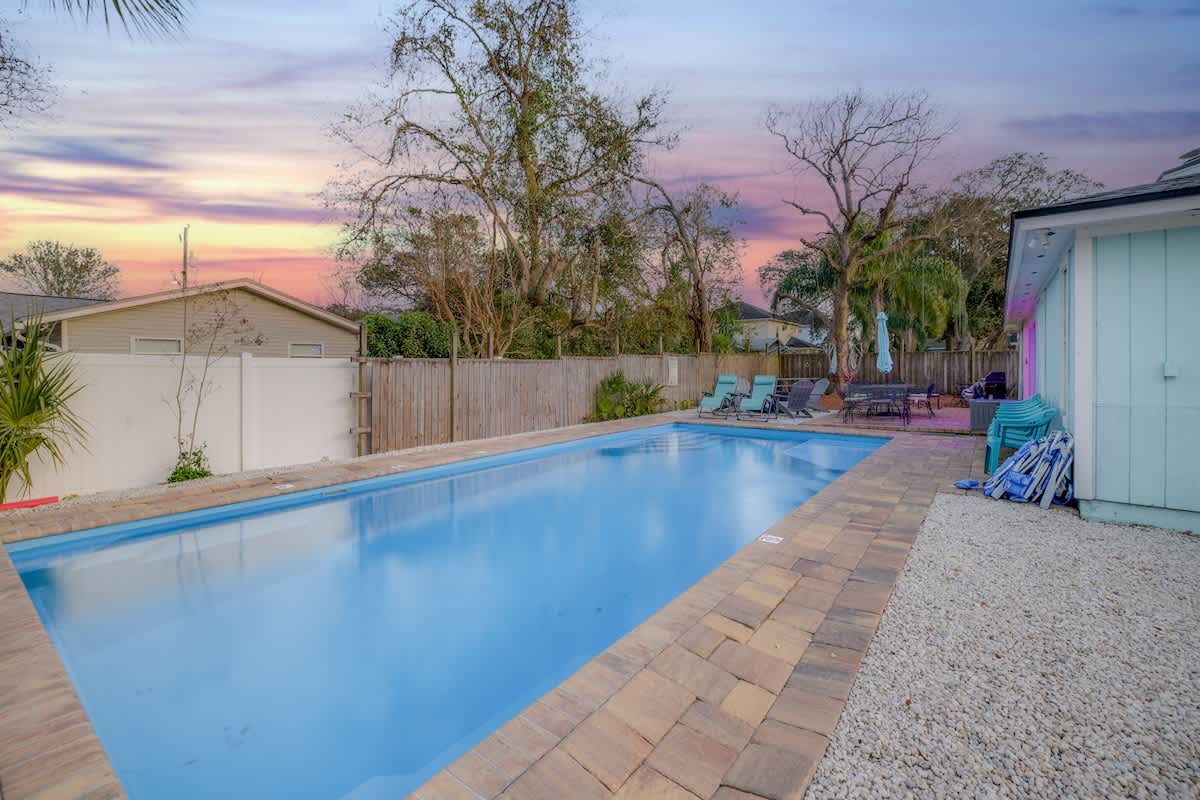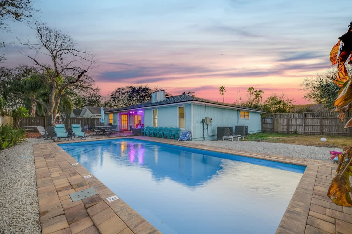 Welcome to The Salty Palm, a newly remodeled 4-bedroom home with a Large, Heated Saltwater Pool (brand new 2023). Situated in a quiet residential neighborhood just minutes away from dining, shopping, Mayo Clinic and the pristine Beaches and Atlantic Ocean.