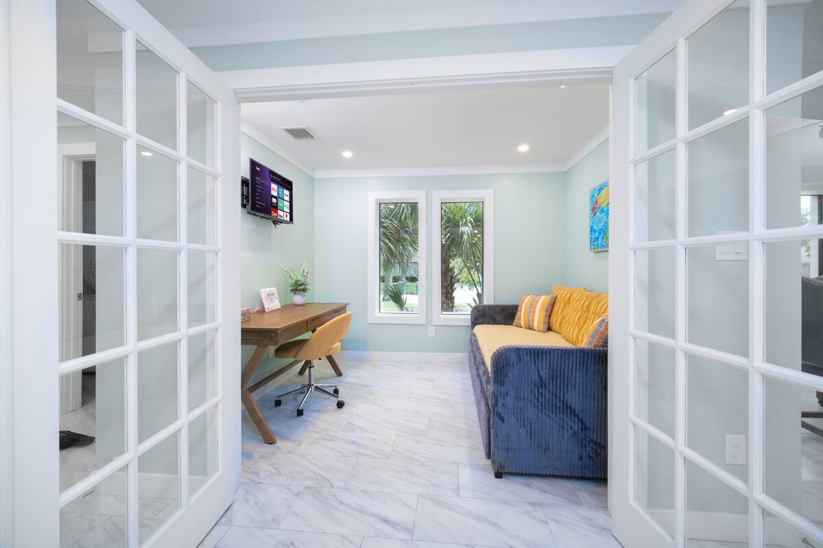 Welcome to Coastal Glow, a spacious 5-bedroom retreat in serene Jacksonville Beach. This inviting pool home is perfect for families and groups, offering comfort, style, and convenience. Enjoy a fully equipped kitchen, elegant dining room, and ground-floor laundry. With two generous living areas—one opening to a screened-in pool—you’ll have the ideal space for relaxing, entertaining, and soaking up the Florida sun.