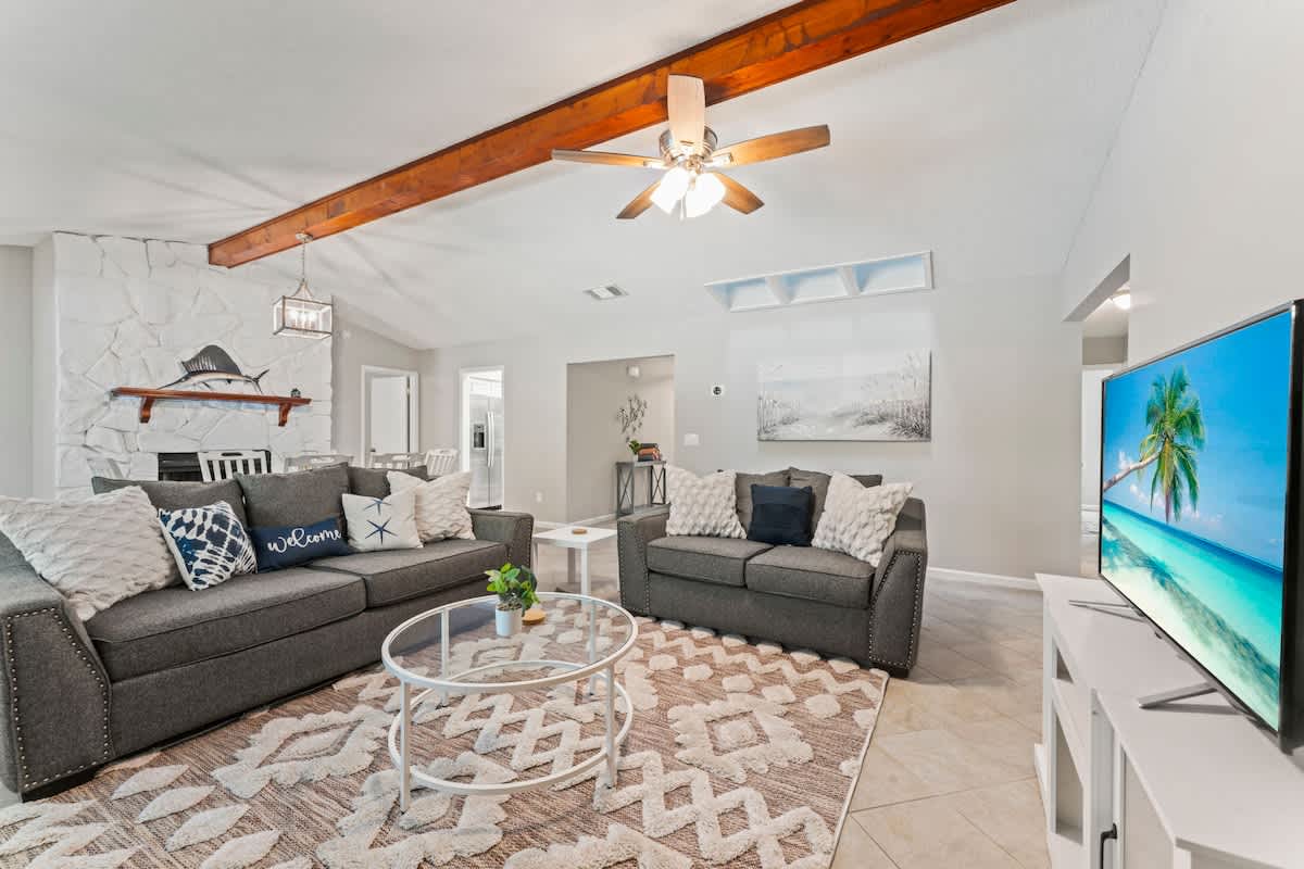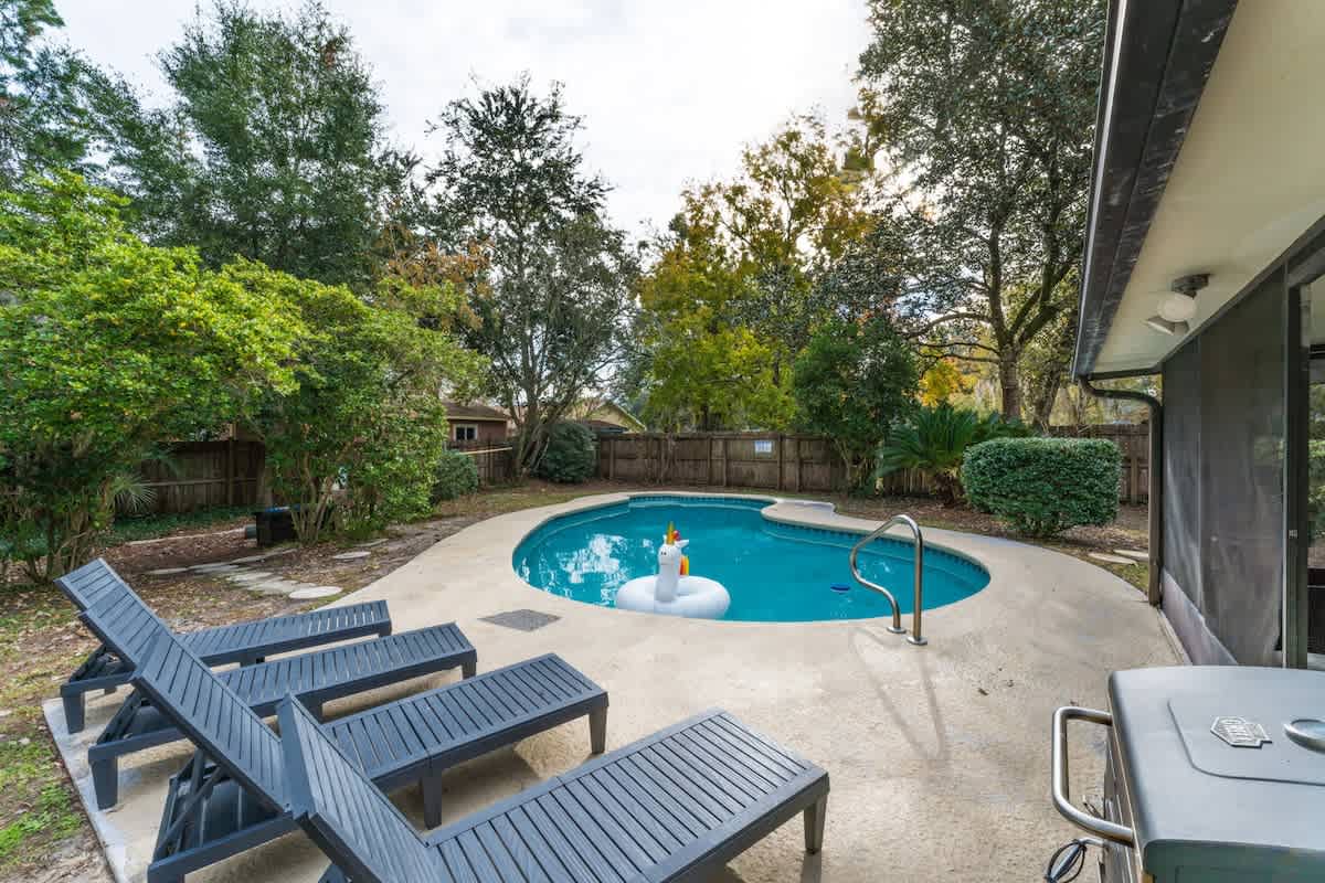Nestled in a tranquil oasis, this 5-bedroom, 2-bath haven is your perfect escape. Enjoy endless fun on the golf mat or soak up the sun by the sparkling pool. Whether you’re craving outdoor adventures, browsing charming shops, or savoring delicious local eats, it’s all just minutes away. Relax, explore, and make unforgettable memories at this spacious getaway designed for families and friends. Book your stay and experience the best blend of comfort and convenience!
