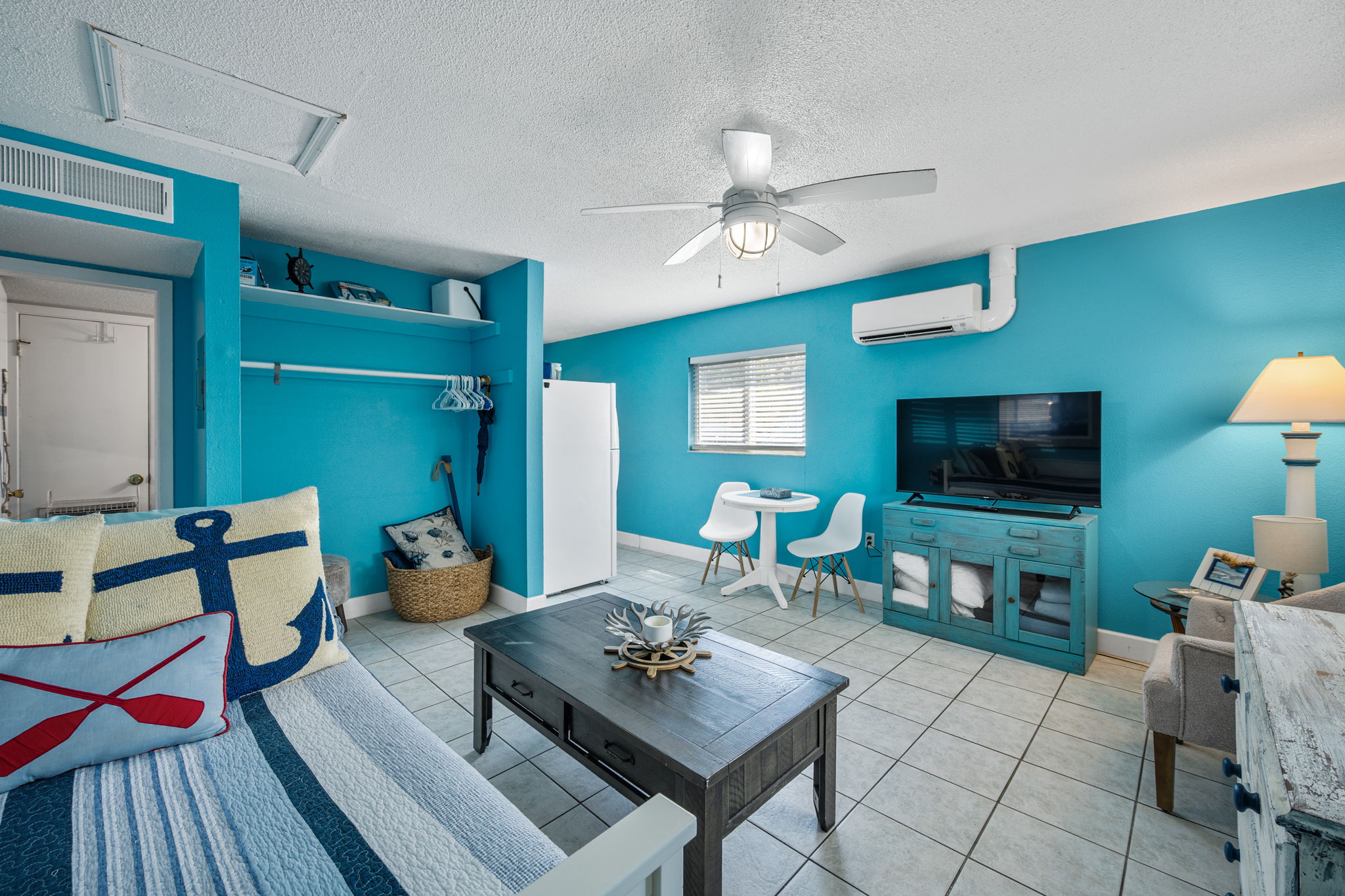 Welcome to the Surfing Turtle! 🐢🌊 This cozy 1-bedroom, 1-bath beach retreat is just steps from the sand. Relax in coastal style with a daybed that pulls out to a king, a fully equipped kitchen, and charming seaside décor. Perfect for a quick getaway or extended stay, this spot offers easy, breezy Florida living. Whether you’re here to soak up the sun, stroll the shore, or unwind indoors, the Surfing Turtle is your perfect beach escape. 🏖️