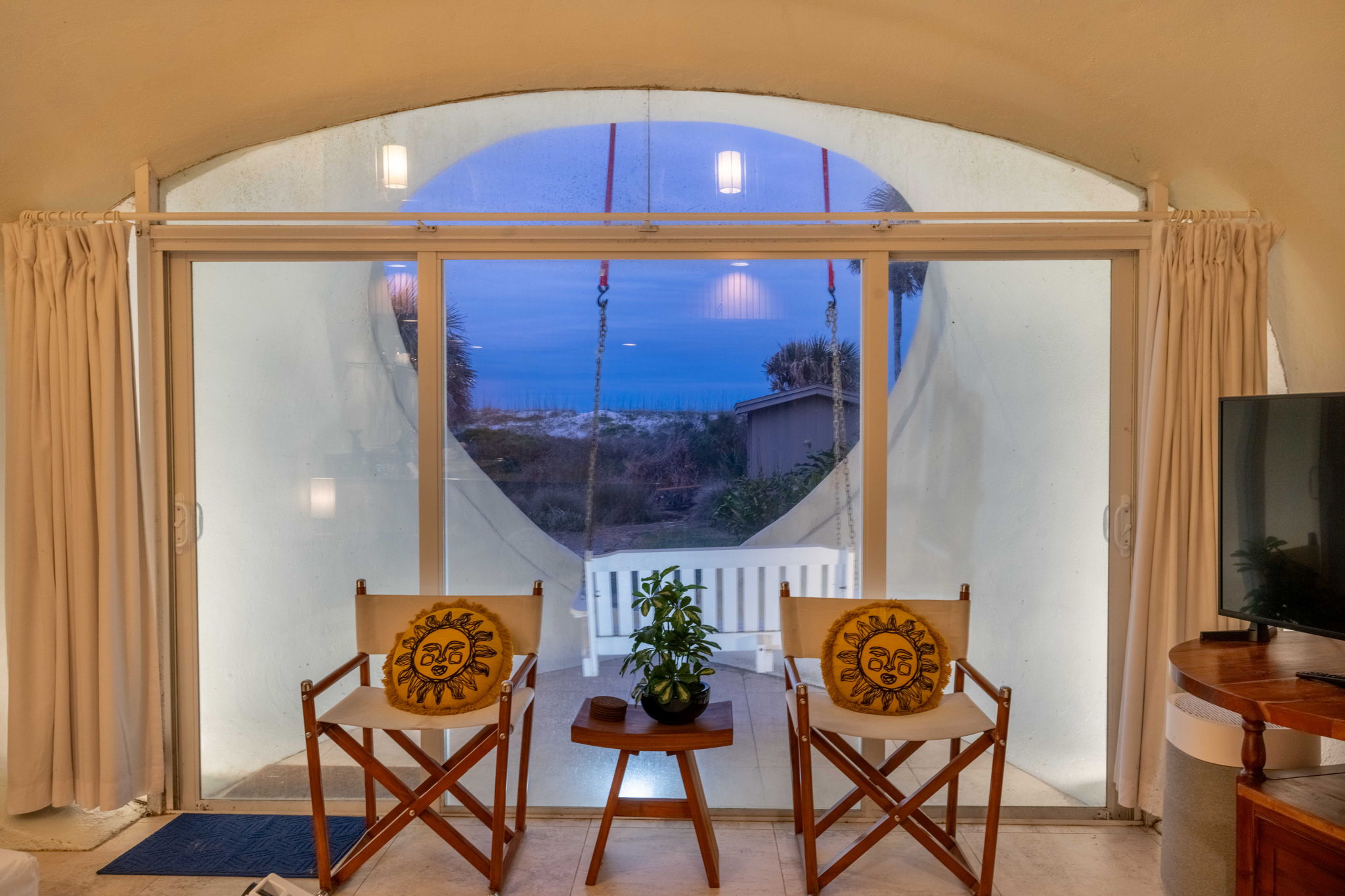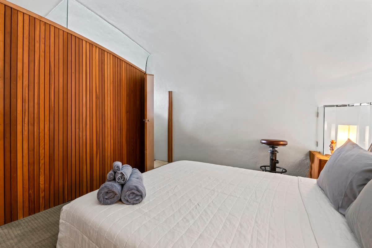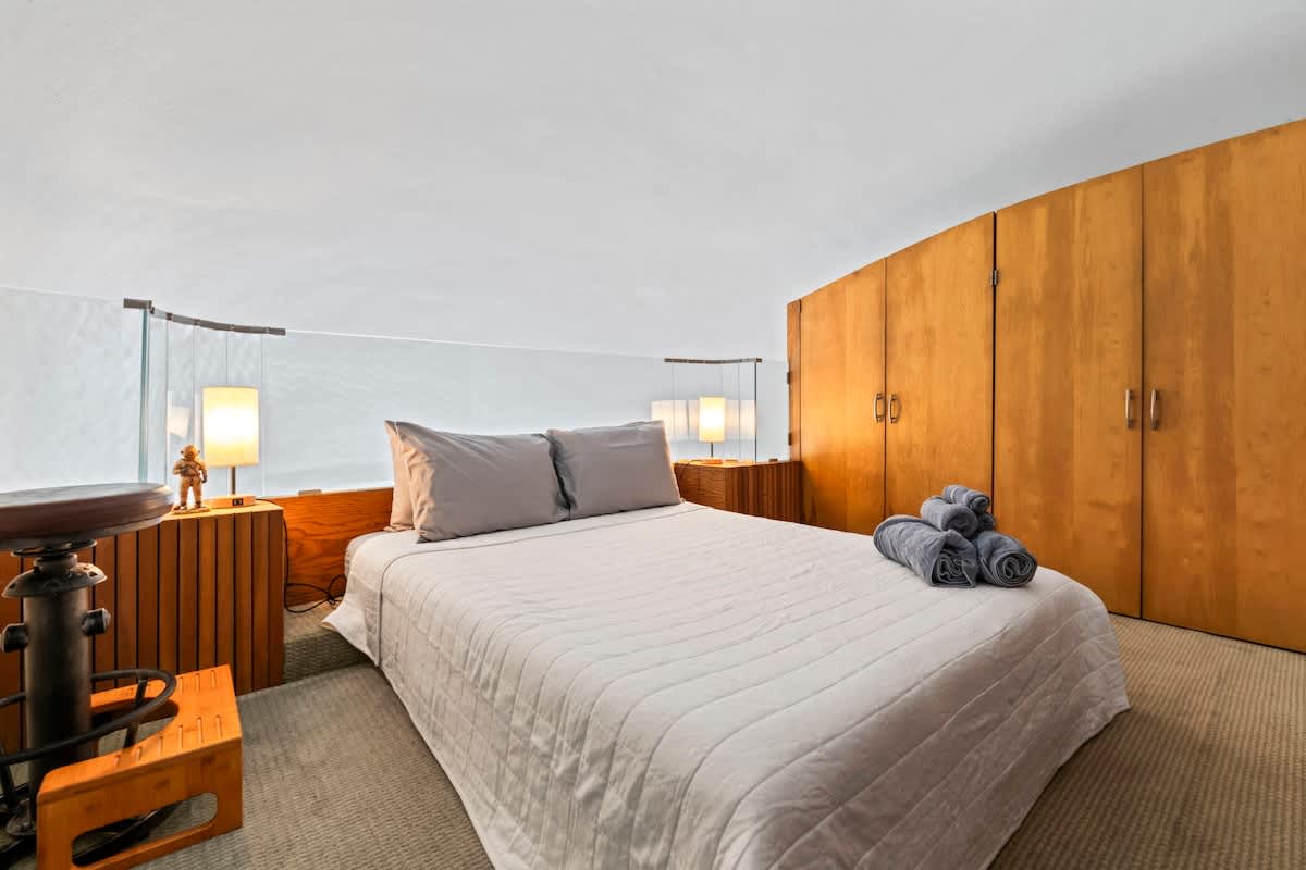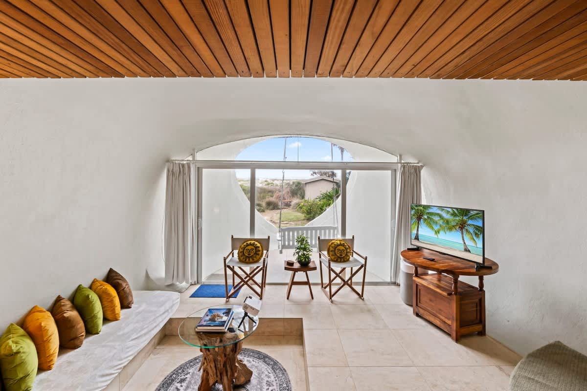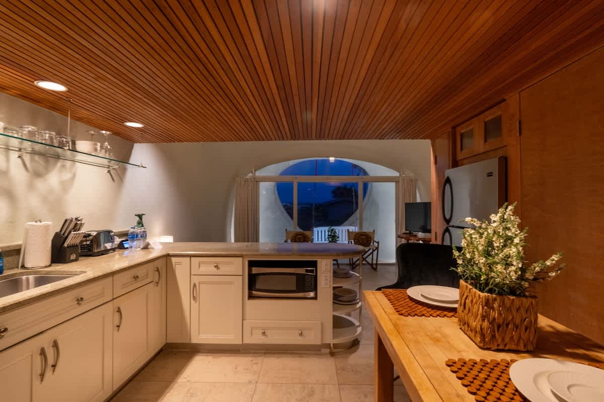 This place is a true architectural treat. My husband and I have always passed this place when in town and have wondered what lies “in the dune”, so we were so excited to see it finally on Airbnb. The inside has both a cave-like feel and the feeling of being on a ship, with a small, yet perfectly utilized space and tons of wood detailing. It’s the perfect size for one person or a couple to enjoy direct access to the beach and amazing sunrises from the private outdoor space. It is attached to another “unit” next door, but you can’t hear anything through the walls, and there is still space to park a vehicle in the driveway. We will definitely be staying here again.