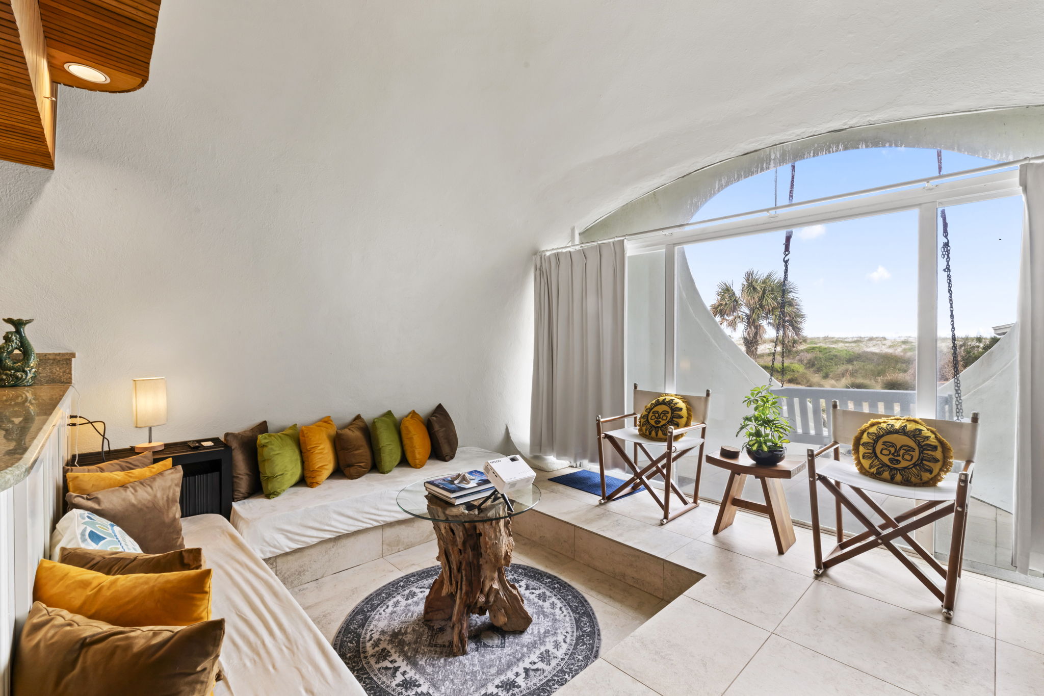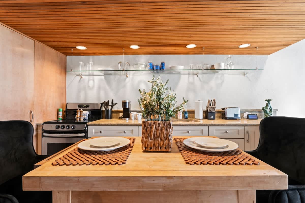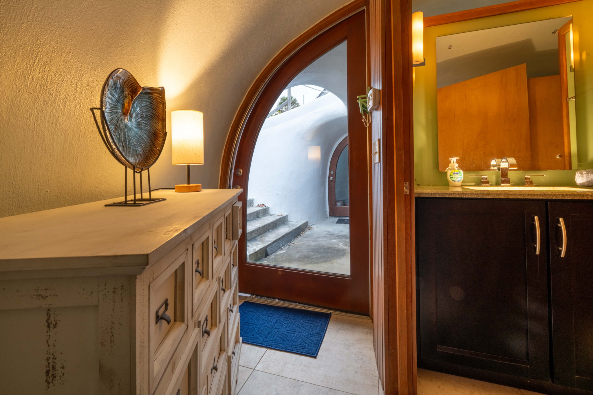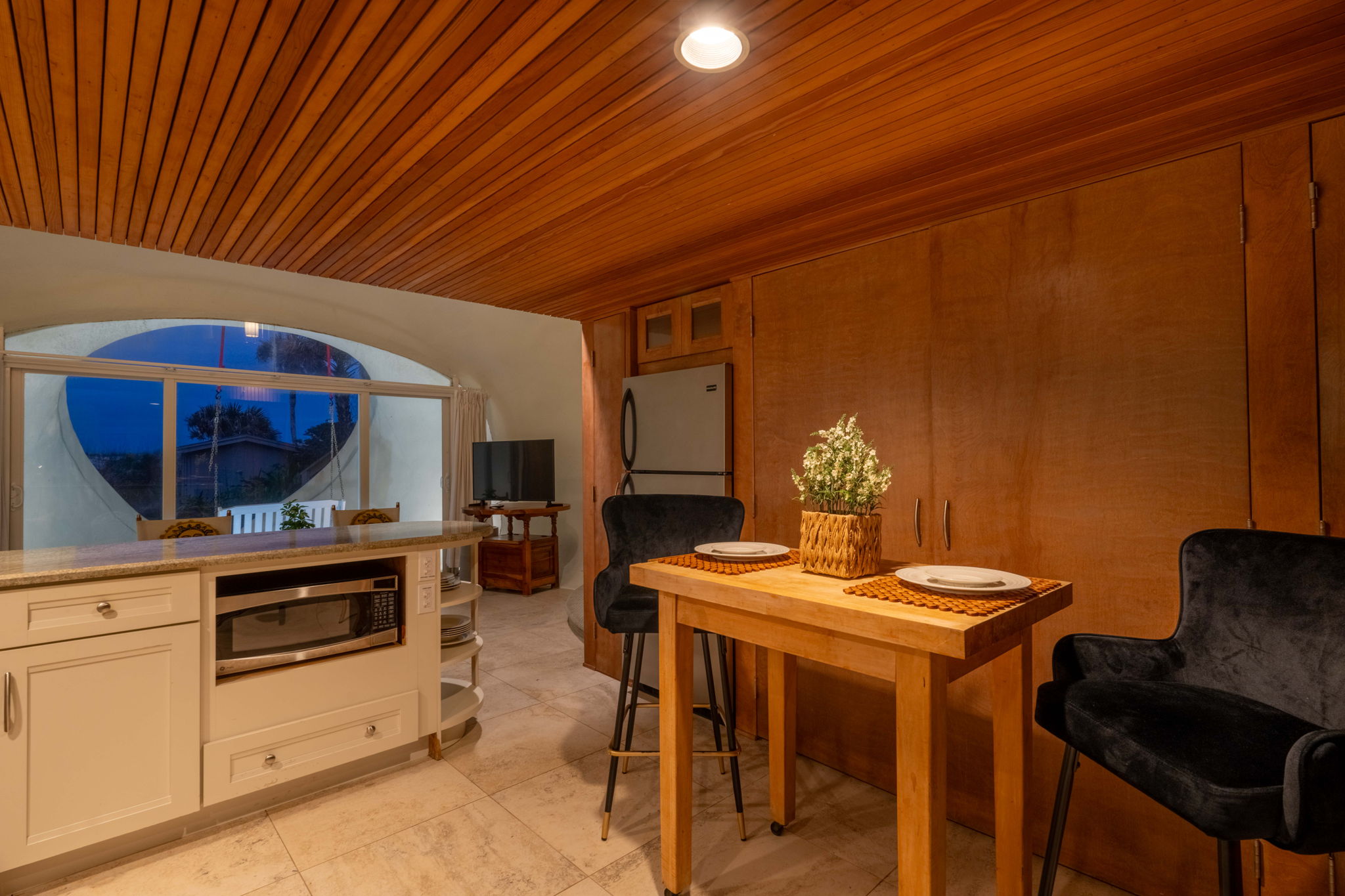 This place is a true architectural treat. My husband and I have always passed this place when in town and have wondered what lies “in the dune”, so we were so excited to see it finally on Airbnb. The inside has both a cave-like feel and the feeling of being on a ship, with a small, yet perfectly utilized space and tons of wood detailing. It’s the perfect size for one person or a couple to enjoy direct access to the beach and amazing sunrises from the private outdoor space. It is attached to another “unit” next door, but you can’t hear anything through the walls, and there is still space to park a vehicle in the driveway. We will definitely be staying here again.