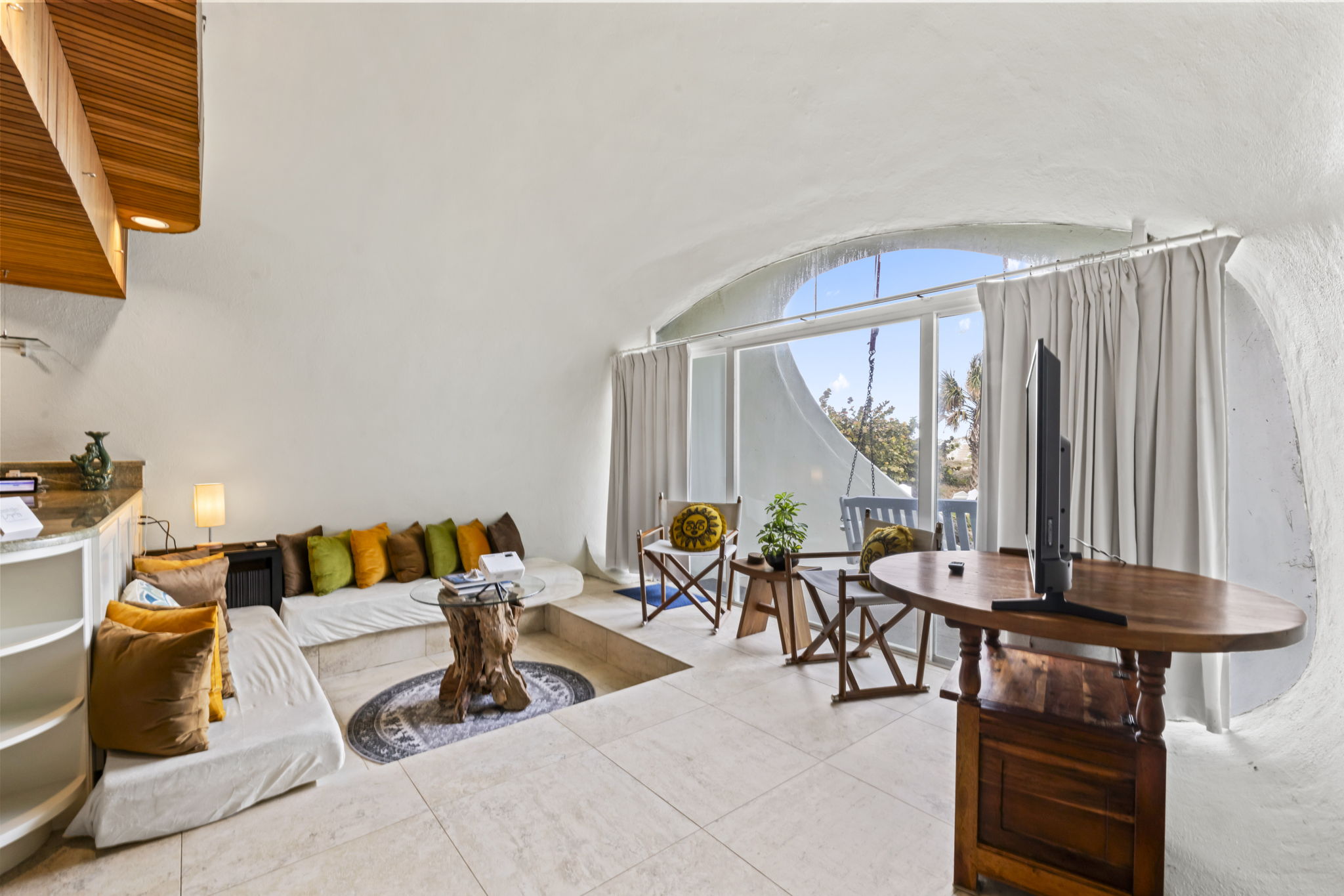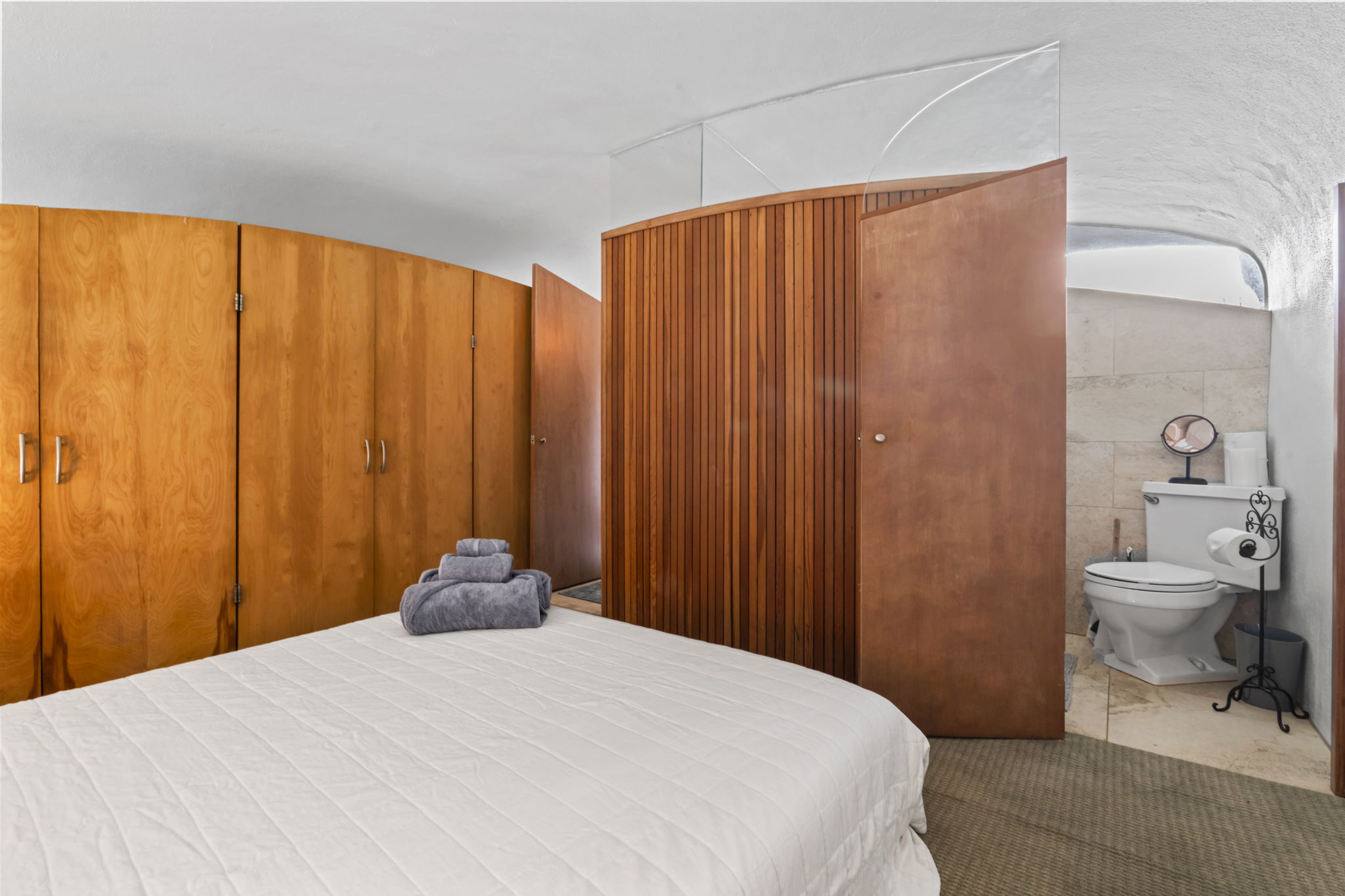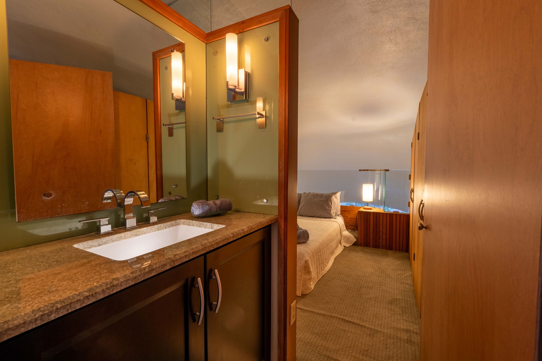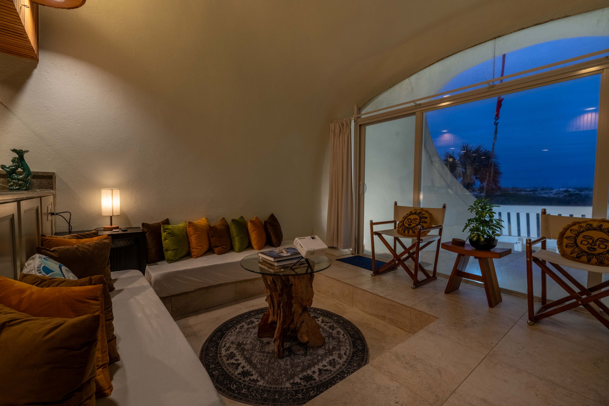This place is a true architectural treat. My husband and I have always passed this place when in town and have wondered what lies “in the dune”, so we were so excited to see it finally on Airbnb. The inside has both a cave-like feel and the feeling of being on a ship, with a small, yet perfectly utilized space and tons of wood detailing. It’s the perfect size for one person or a couple to enjoy direct access to the beach and amazing sunrises from the private outdoor space. It is attached to another “unit” next door, but you can’t hear anything through the walls, and there is still space to park a vehicle in the driveway. We will definitely be staying here again.