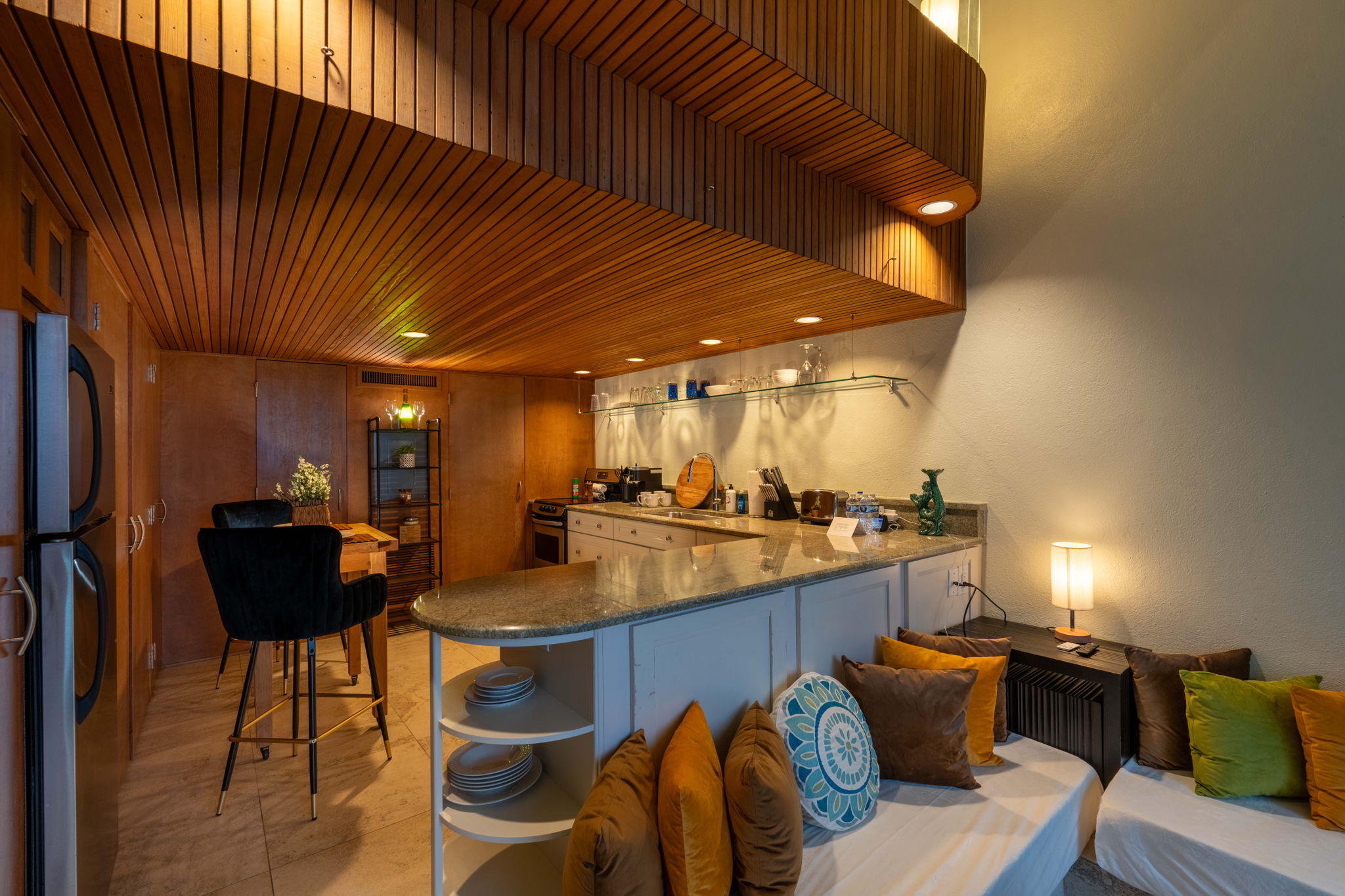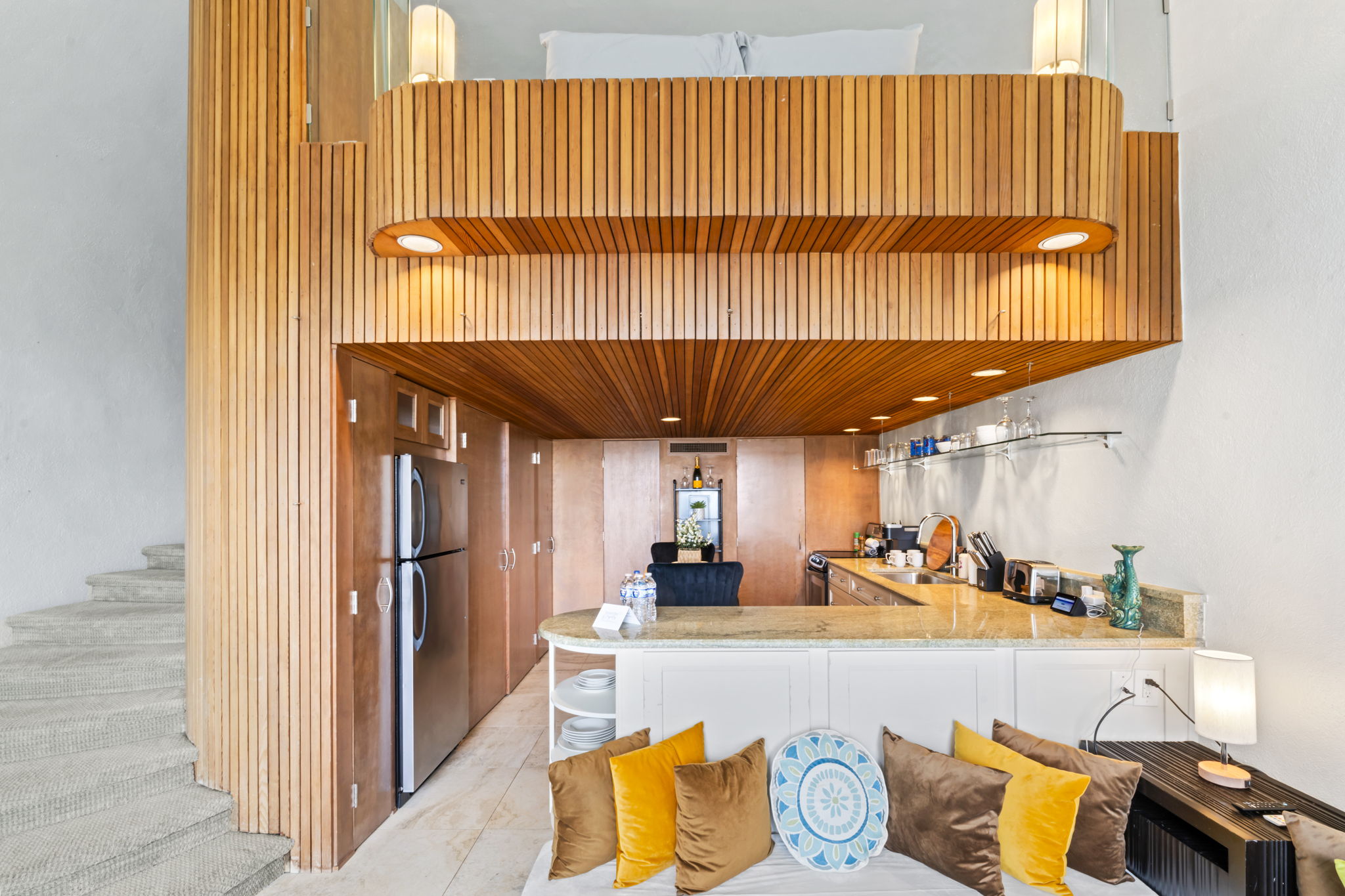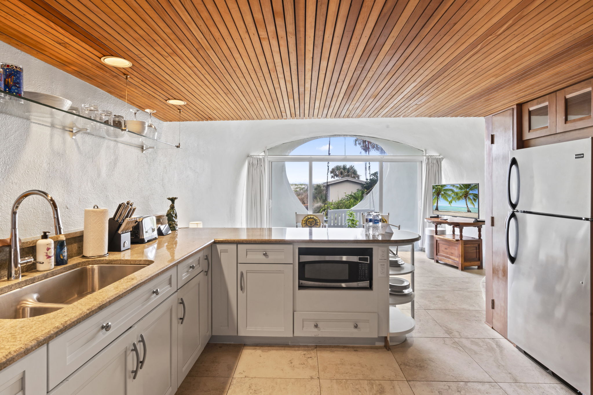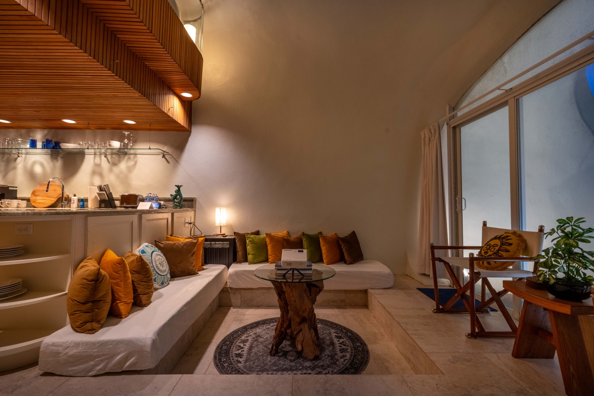 This place is a true architectural treat. My husband and I have always passed this place when in town and have wondered what lies “in the dune”, so we were so excited to see it finally on Airbnb. The inside has both a cave-like feel and the feeling of being on a ship, with a small, yet perfectly utilized space and tons of wood detailing. It’s the perfect size for one person or a couple to enjoy direct access to the beach and amazing sunrises from the private outdoor space. It is attached to another “unit” next door, but you can’t hear anything through the walls, and there is still space to park a vehicle in the driveway. We will definitely be staying here again.
