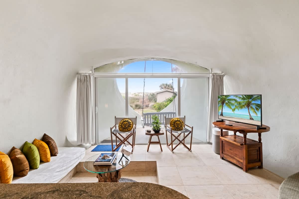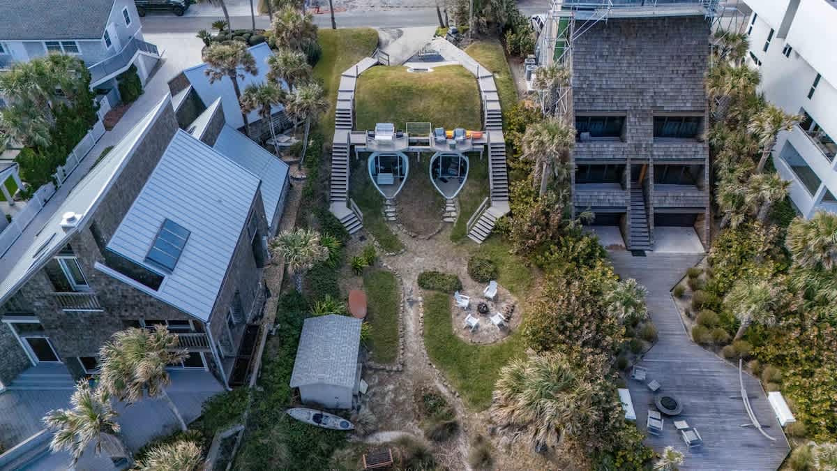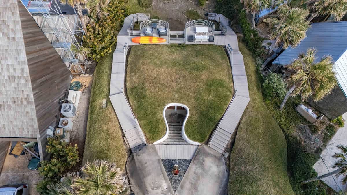 Stay at the Famous Dunes House in Atlantic Beach! Known for its unique architecture and natural design, this home has been featured in magazines and TV shows for years. Shaped like a sand dune and topped with grass-covered roofs, it blends beautifully into its oceanfront surroundings. This is more than just a place to stay—it’s an unforgettable experience. Book your stay and immerse yourself in the beauty of the Zen beach life! 🌊🏡✨
