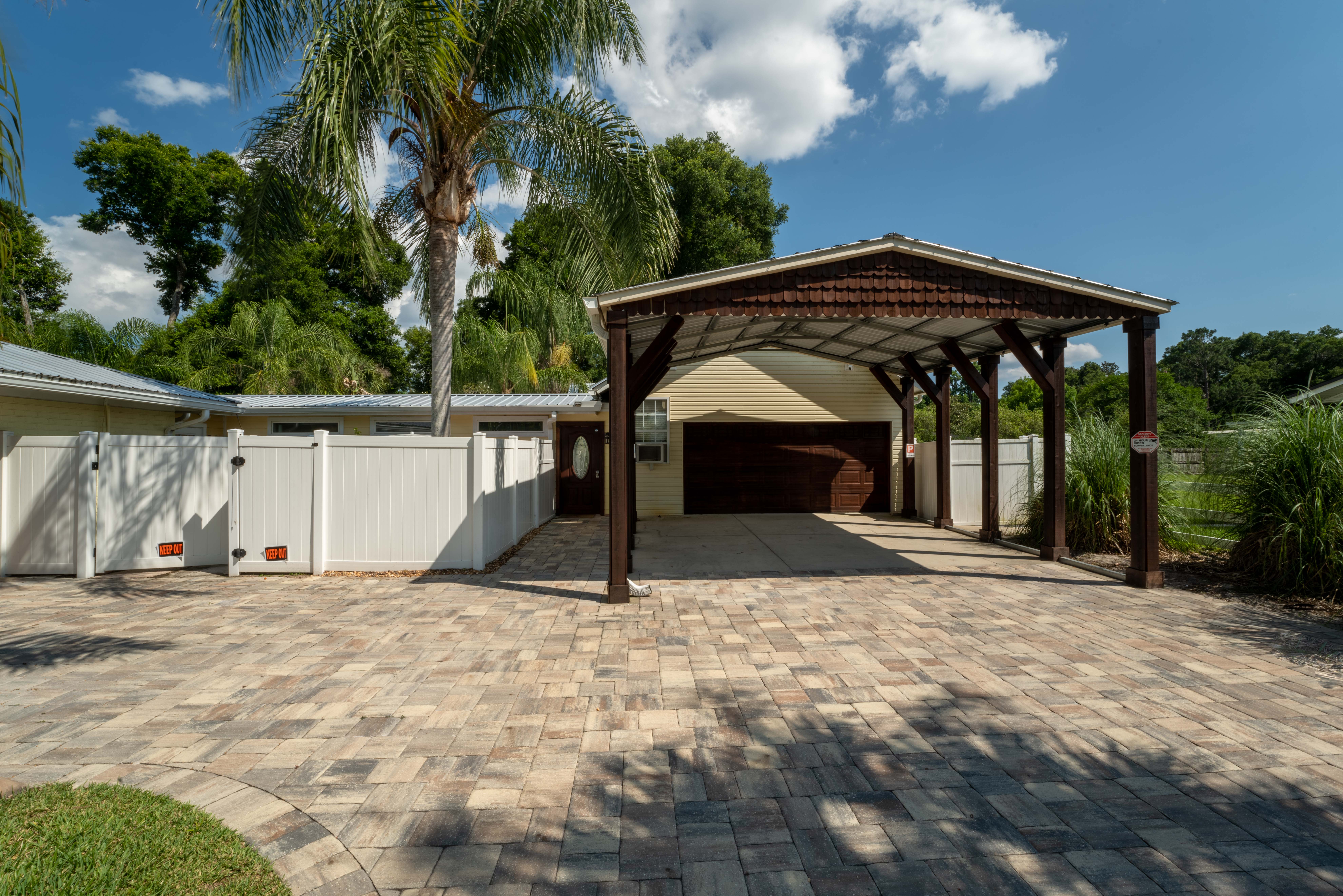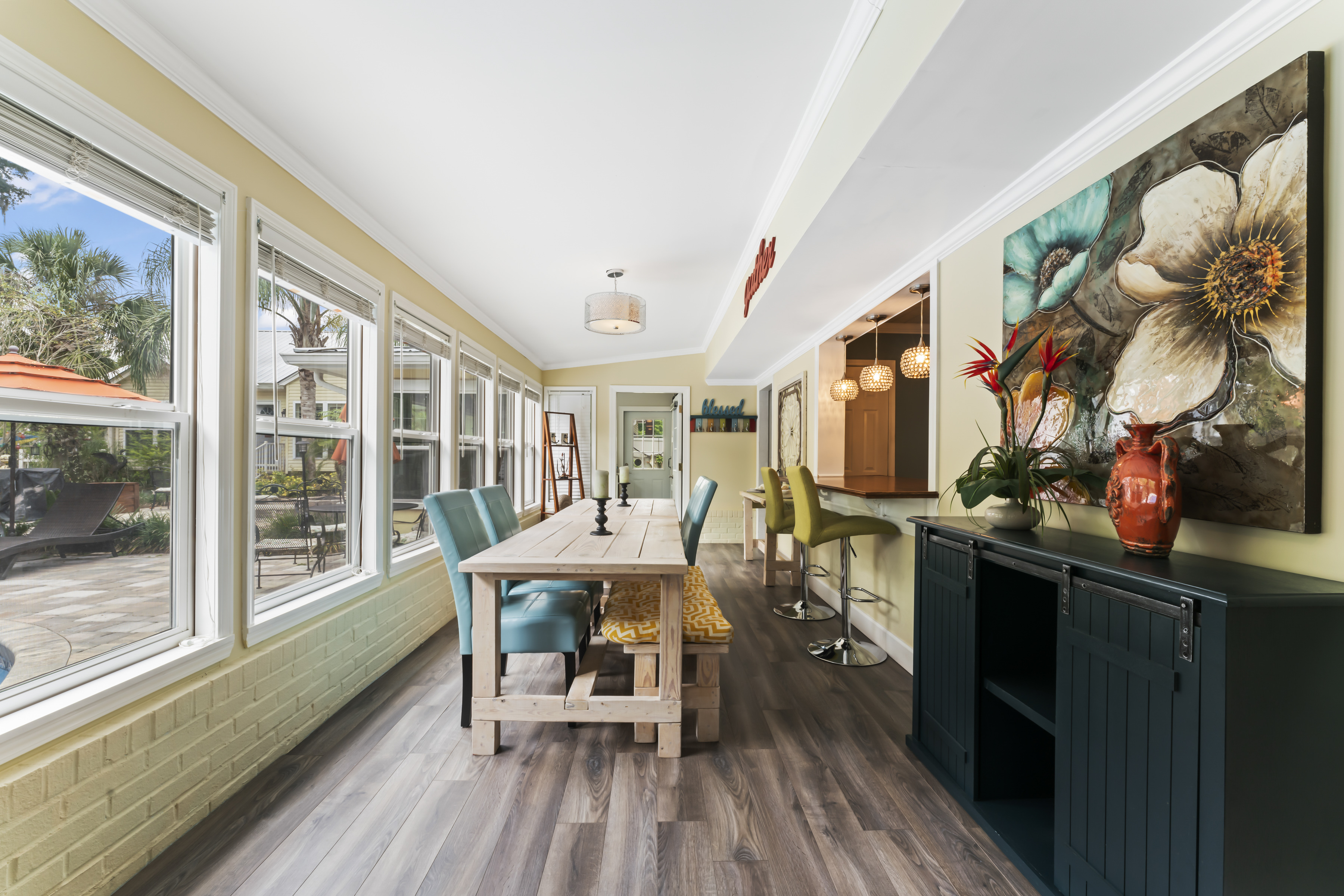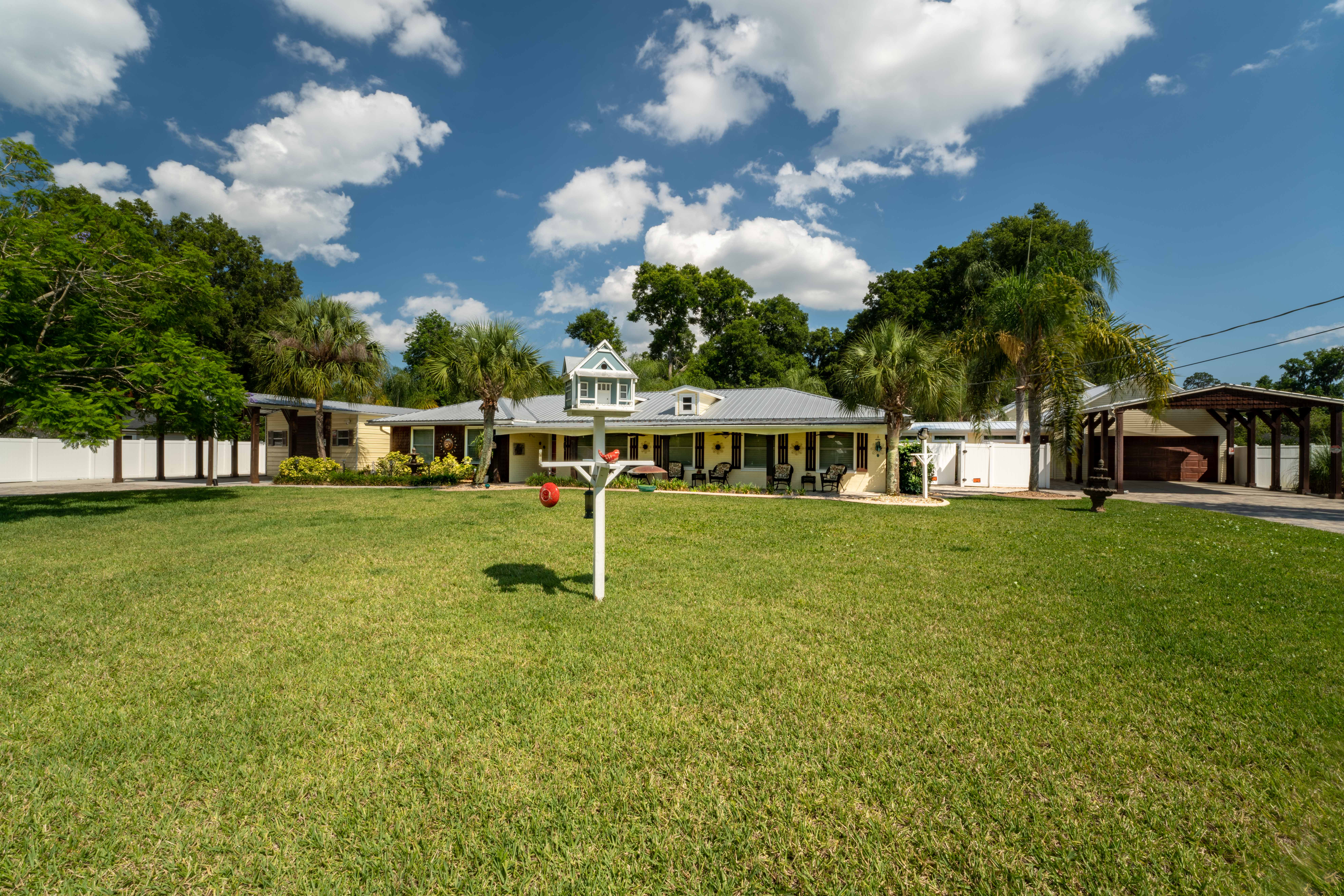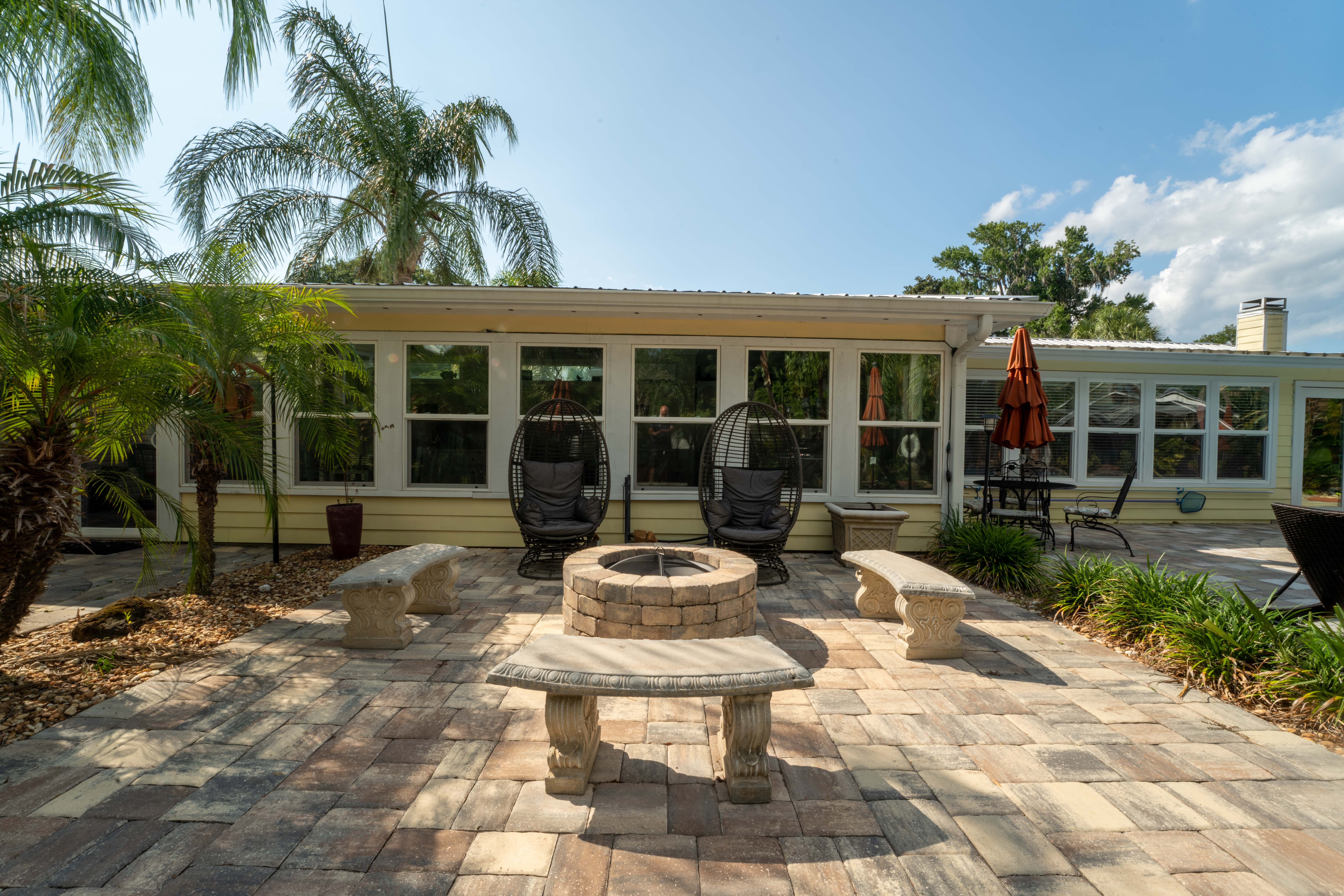 This beautiful, spacious 4 bedroom, 2 bath home has a fully furnished gourmet kitchen with all new appliances and granite countertops, two king size primary rooms, and 2 queen size rooms, and an additional sofa sleeper. There are several separate seating areas, breakfast bar and dining table that seats 8. Catch up on your favorite shows on a 65” smart (Roku) 4K TV by logging onto your personal Netflix, Amazon or any other streaming services (we do not provide any content). Complete your day sitting in a rocking chair on the veranda, cooled by the ceiling fans, enjoying a drink while watching the sunset.