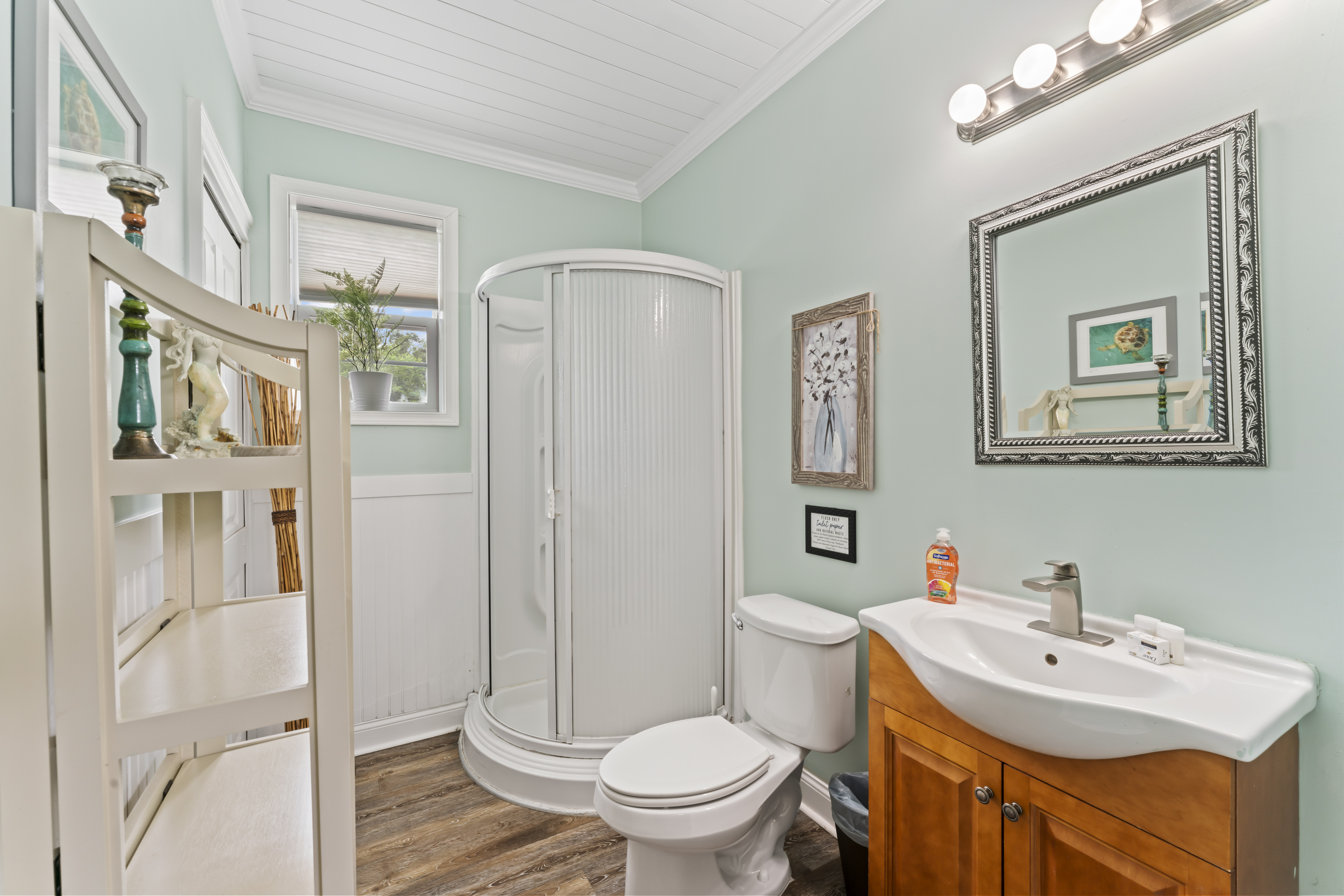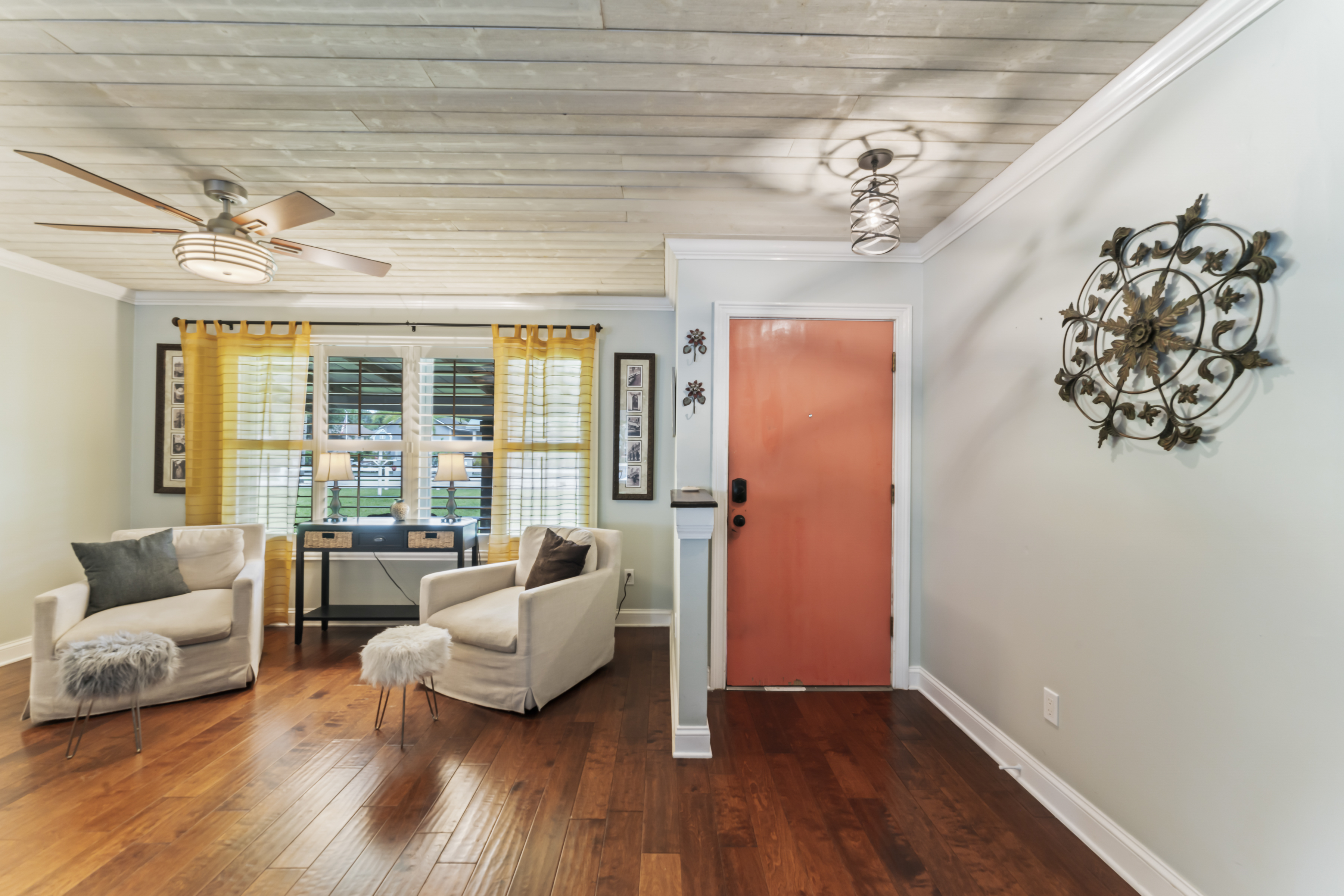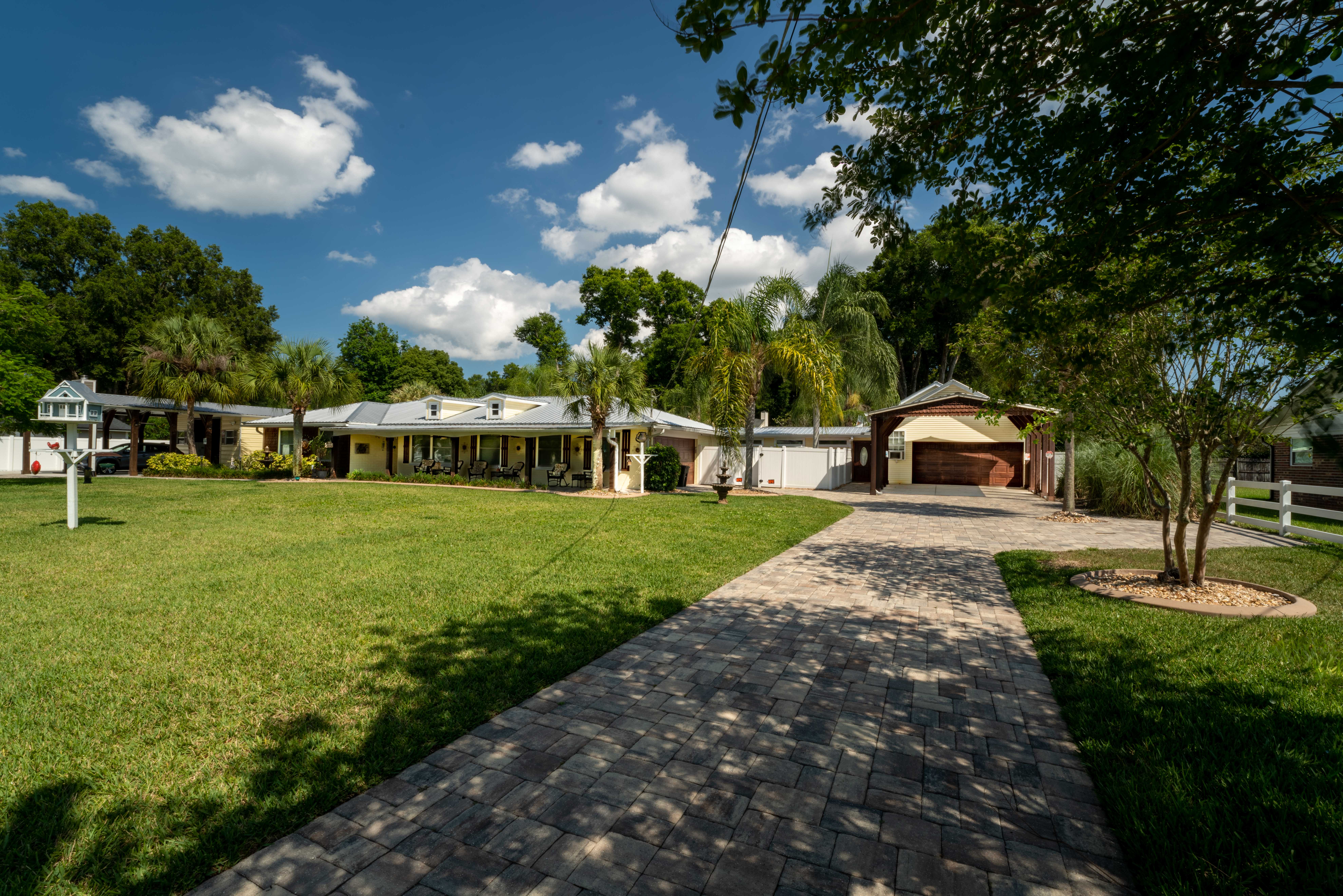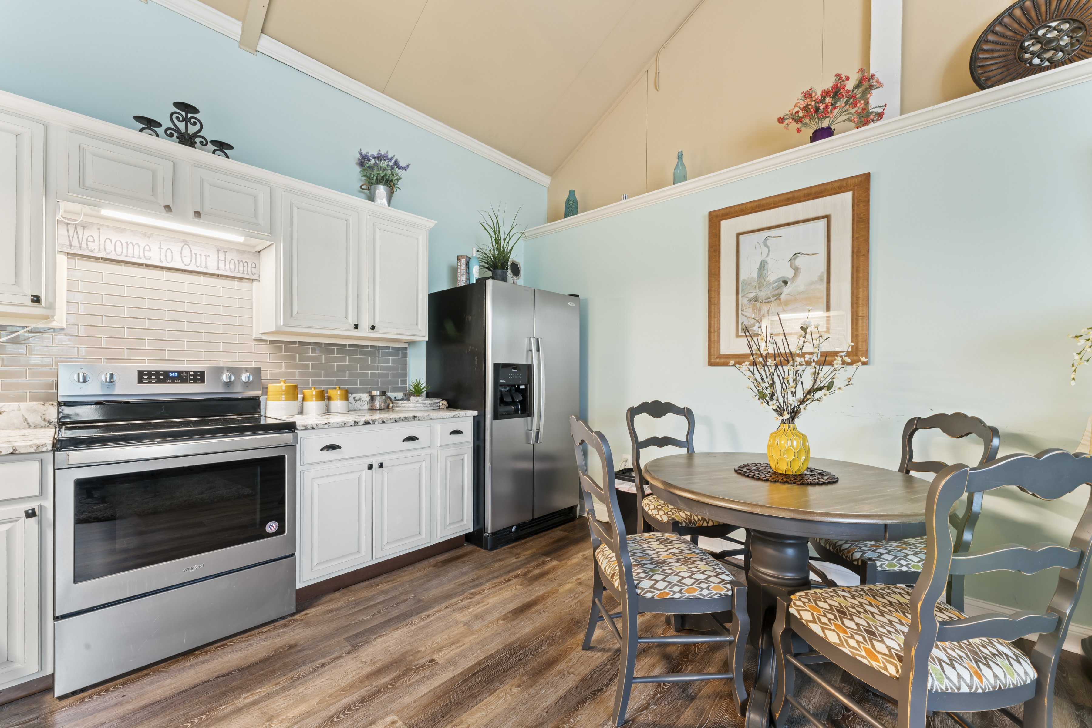 This beautiful, spacious 4 bedroom, 2 bath home has a fully furnished gourmet kitchen with all new appliances and granite countertops, two king size primary rooms, and 2 queen size rooms, and an additional sofa sleeper. There are several separate seating areas, breakfast bar and dining table that seats 8. Catch up on your favorite shows on a 65” smart (Roku) 4K TV by logging onto your personal Netflix, Amazon or any other streaming services (we do not provide any content). Complete your day sitting in a rocking chair on the veranda, cooled by the ceiling fans, enjoying a drink while watching the sunset.