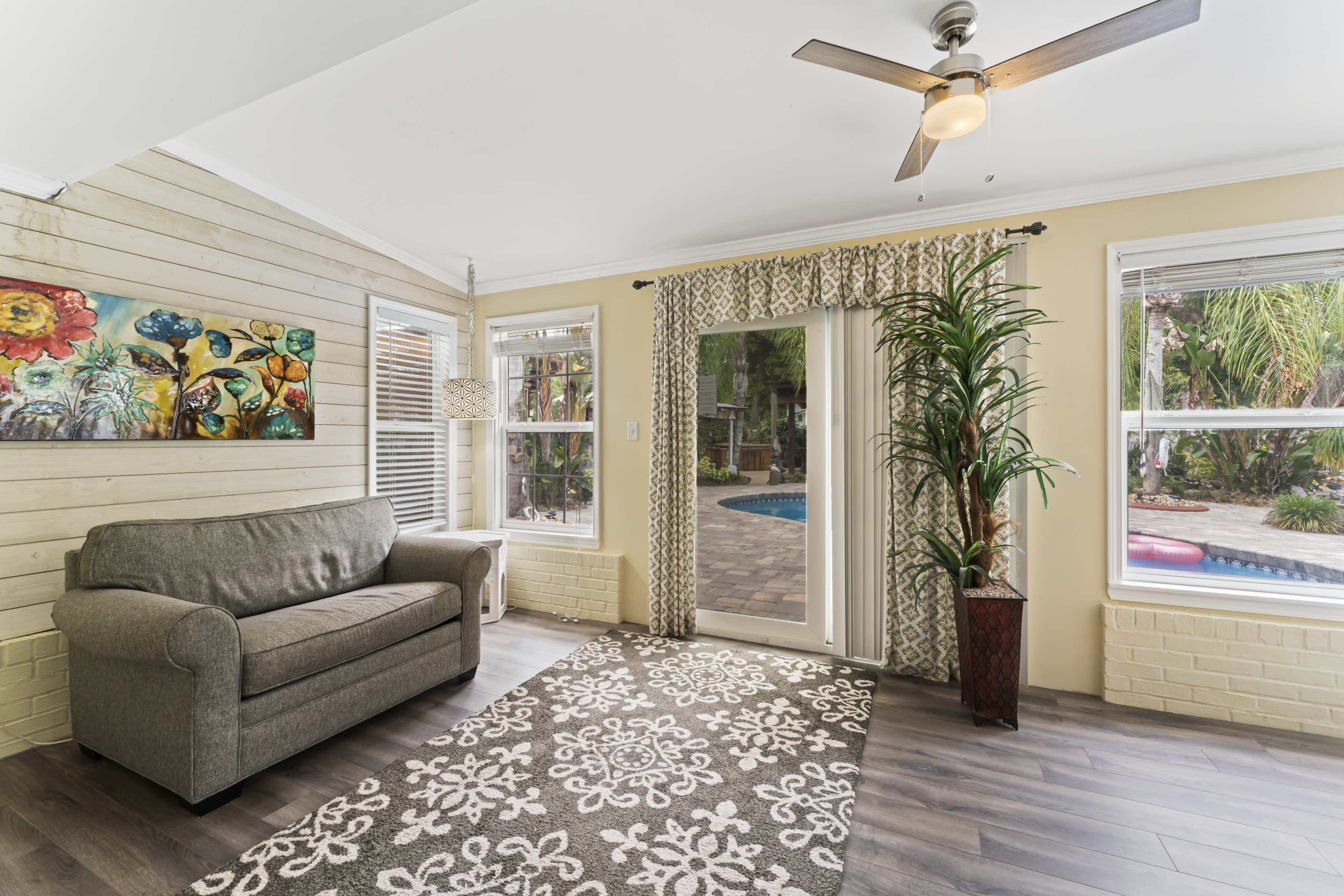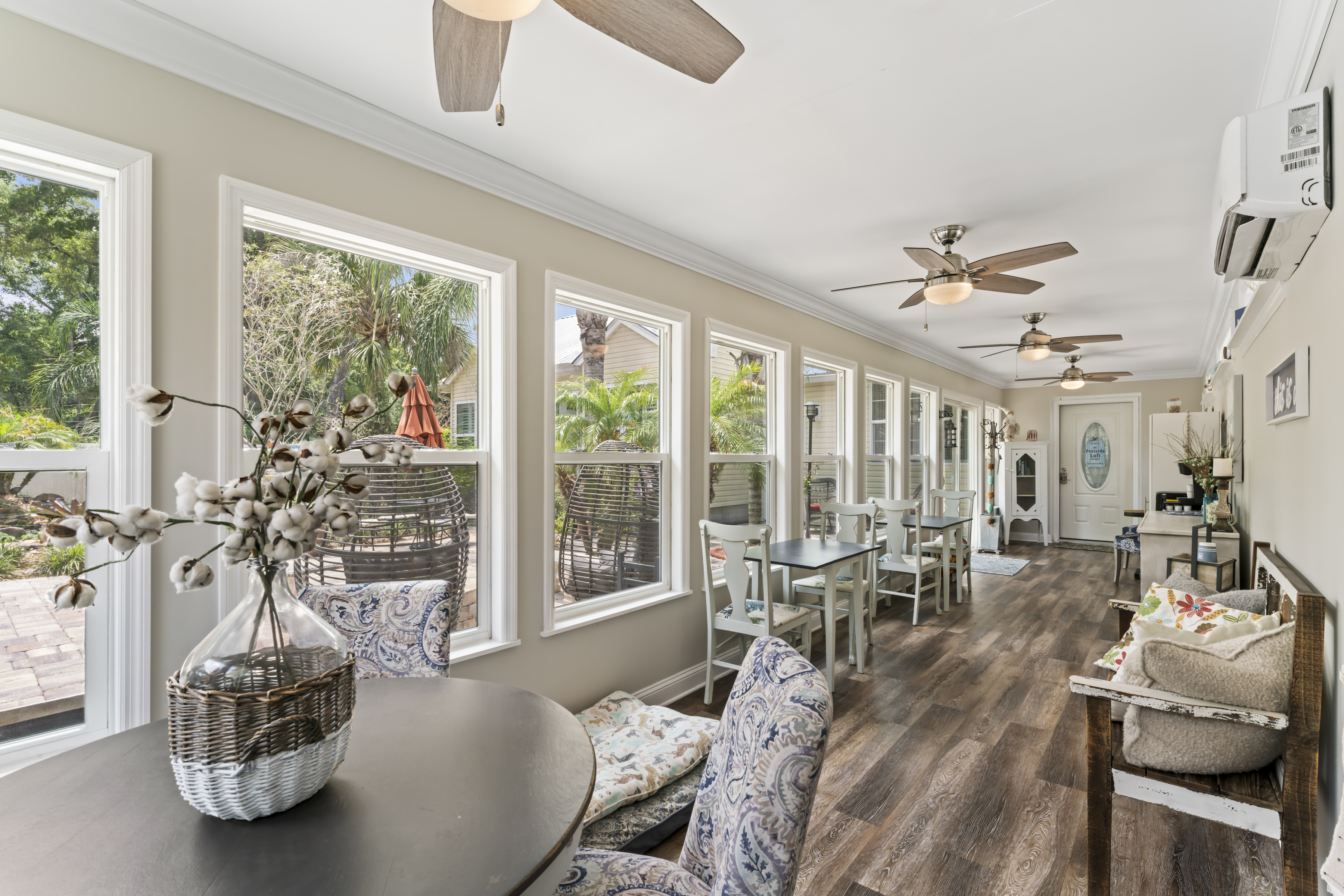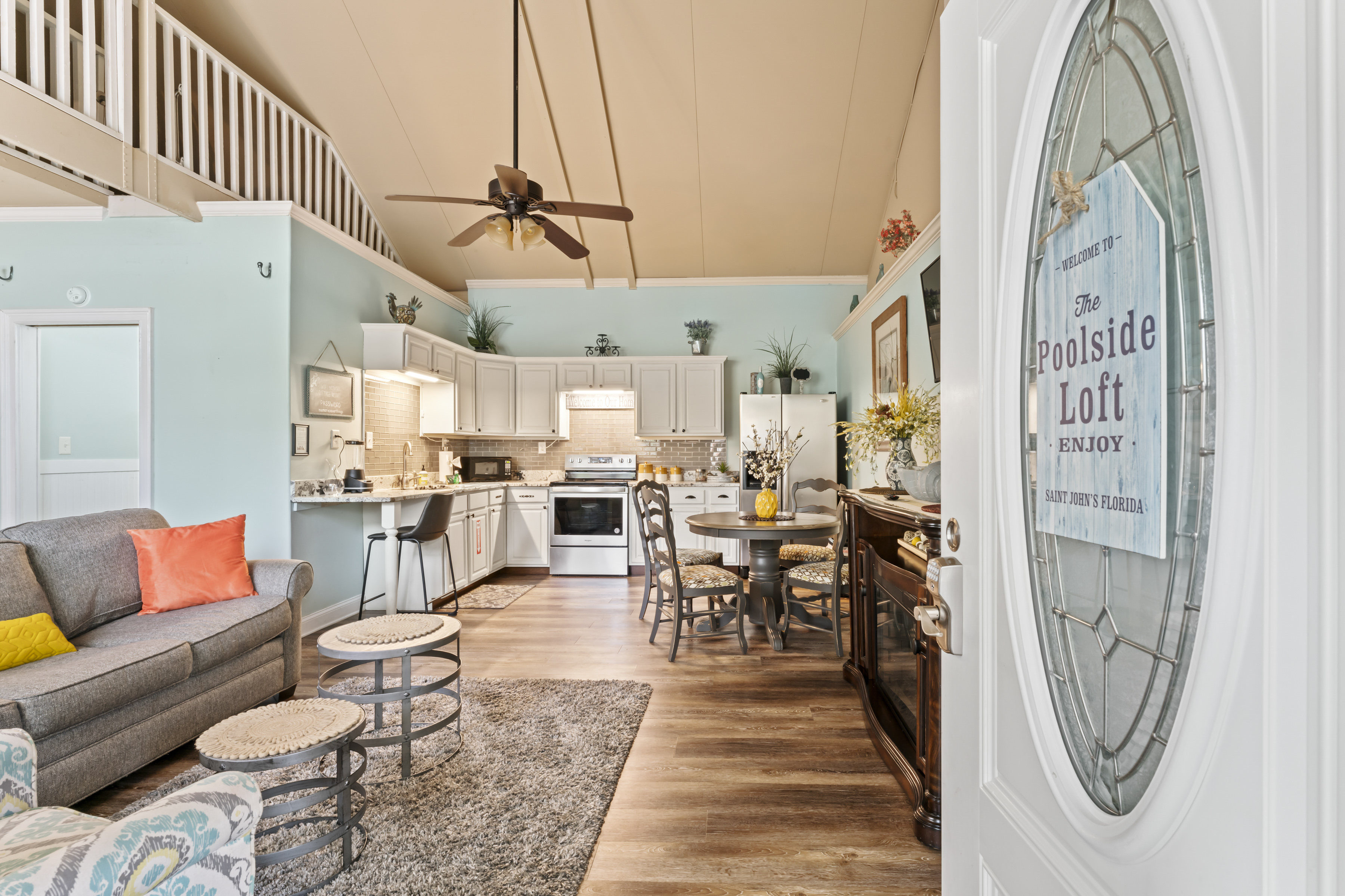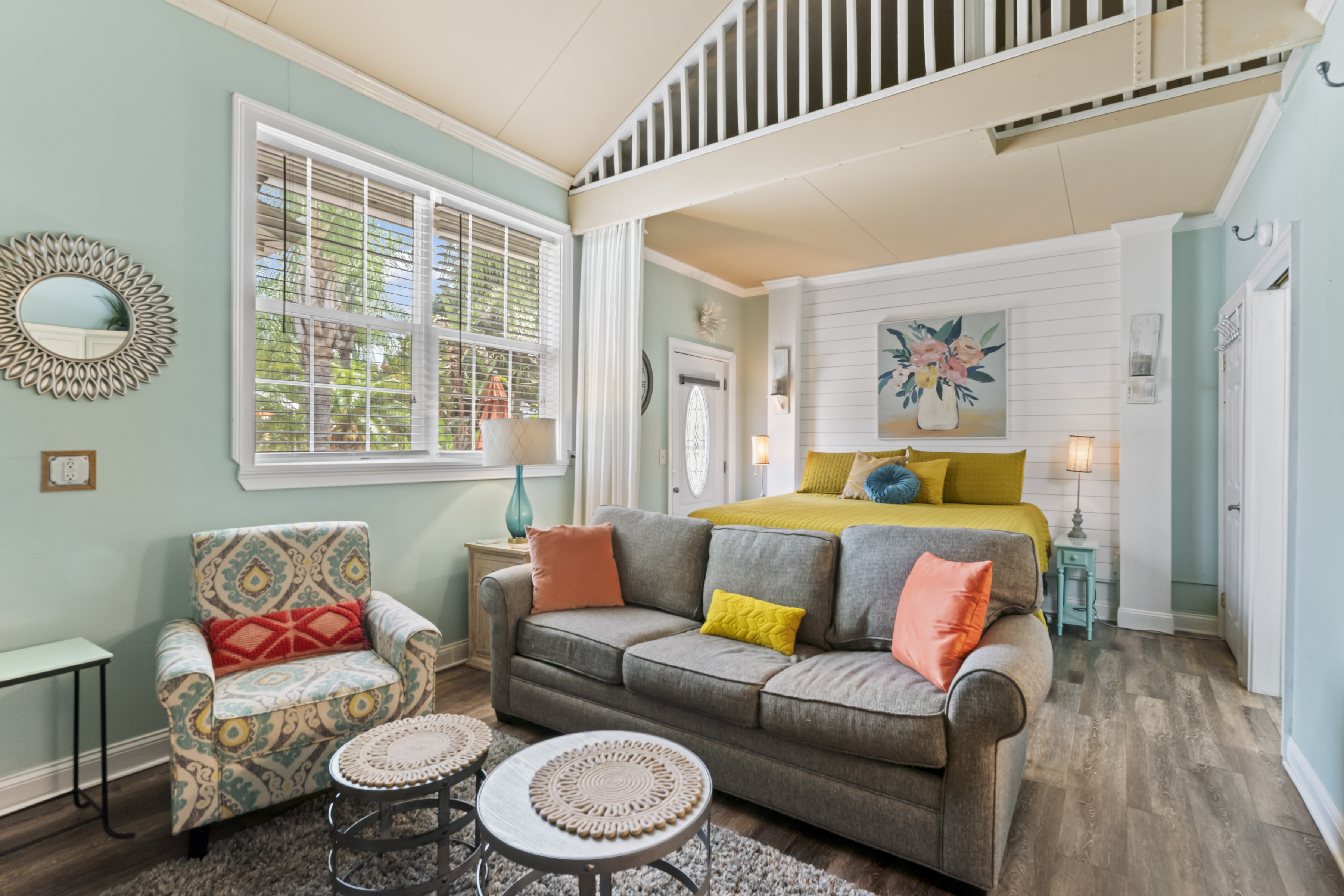 This beautiful, comfortable, spacious 2 bedroom cottage comes with a fully furnished kitchen with all new appliances and granite countertops. This air-conditioned home has a king size master with a bay window overlooking the koi pond, pool and garden area, a queen size bedroom, and a loft area with 3 beds, perfect for kids, with it's own tv! Catch up on your favorite shows on a smart (Roku) 4K TV by logging onto your personal Netflix, Amazon or any other streaming services (we do not provide any content).