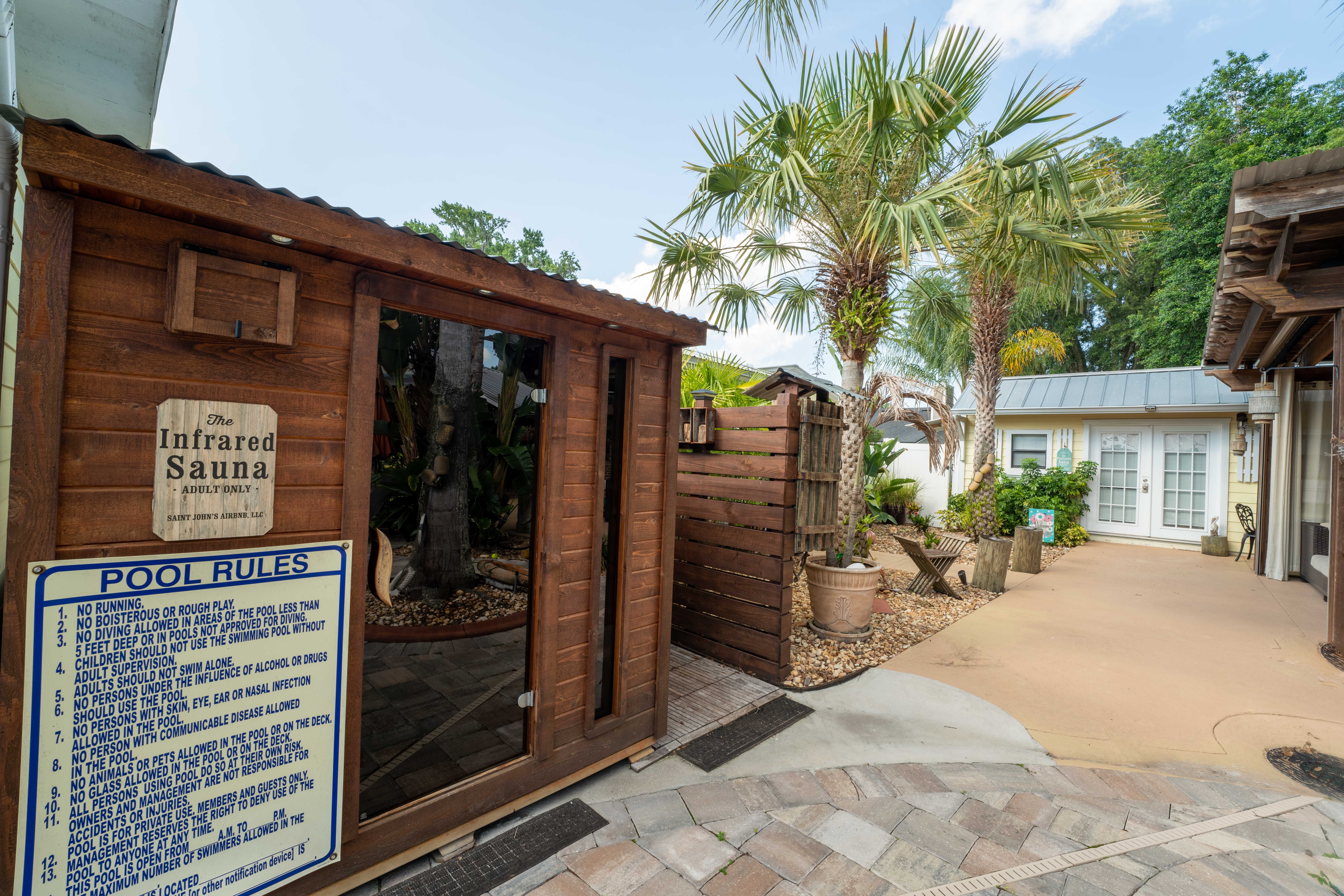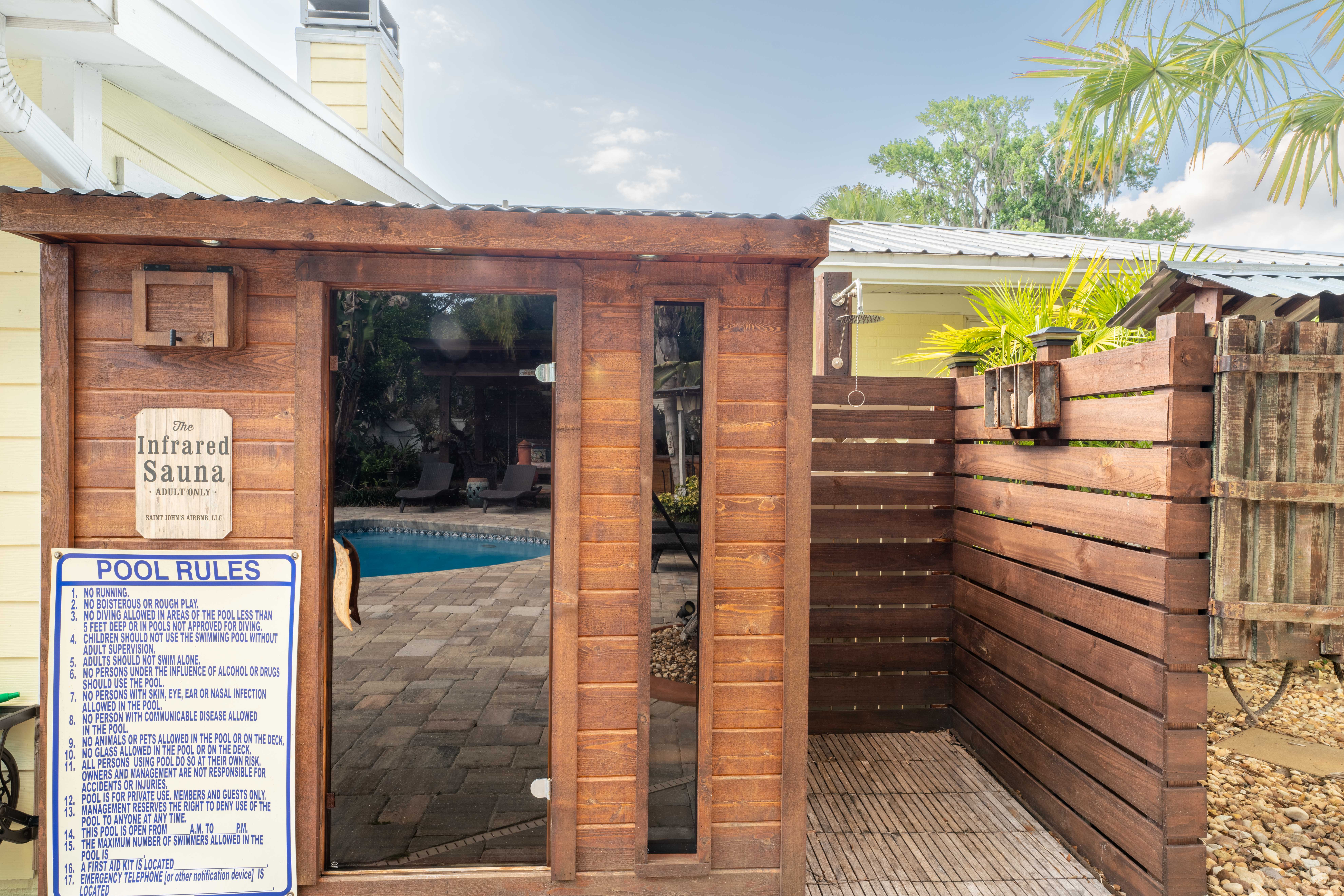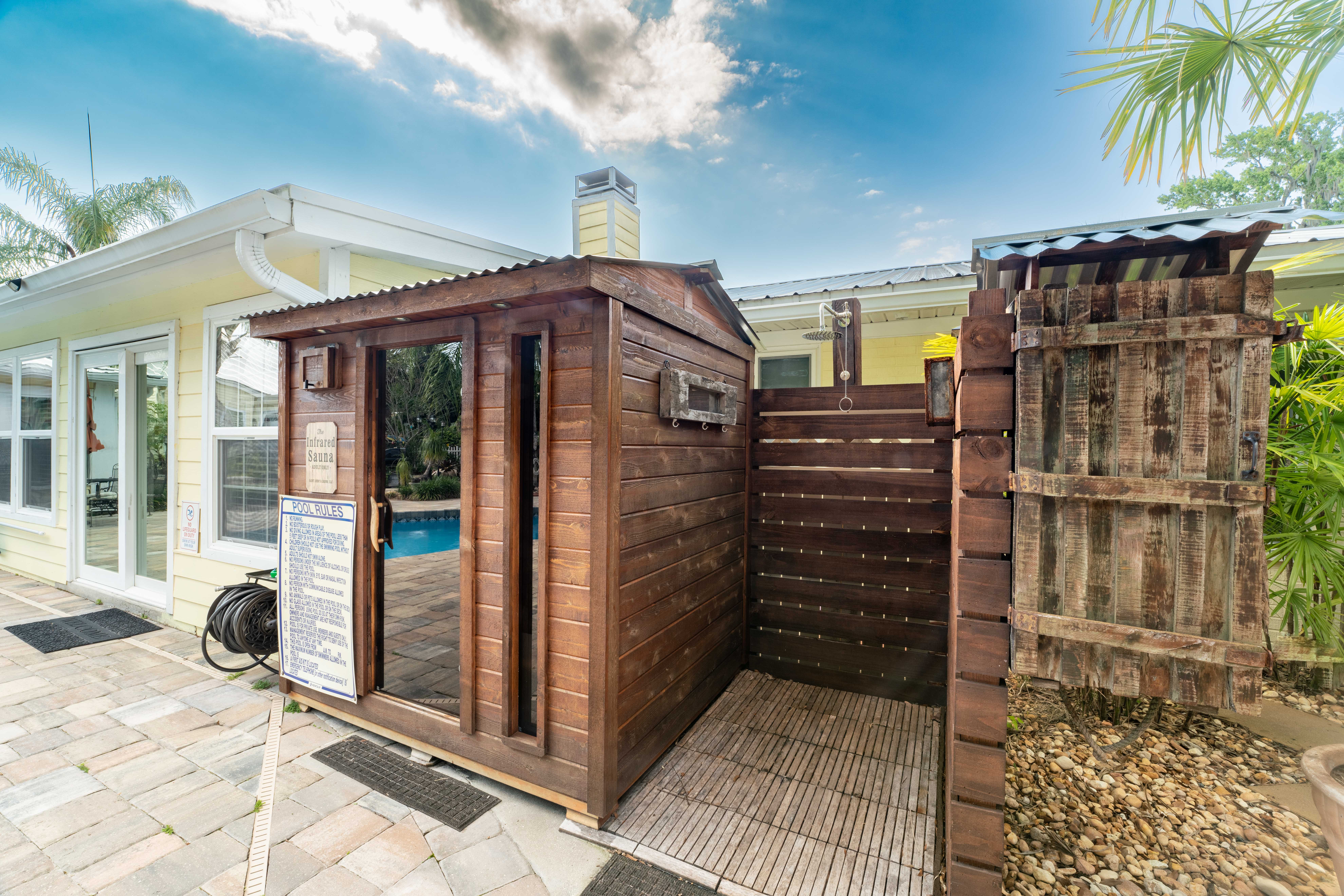 We loved the house and special facilities in the yard! See all the pics. Some of us used the Jacuzi.. A quick jump into the pool ... But pool not heated as far as we know. Great sitting areas in the "main house" and in the yard. The only drawback is that there is no bathroom in the main master bedroom. Folks staying in that room have to go across the house to get to the 2 bathrooms. (Clear in the description so not new info ... But be ready for that.)