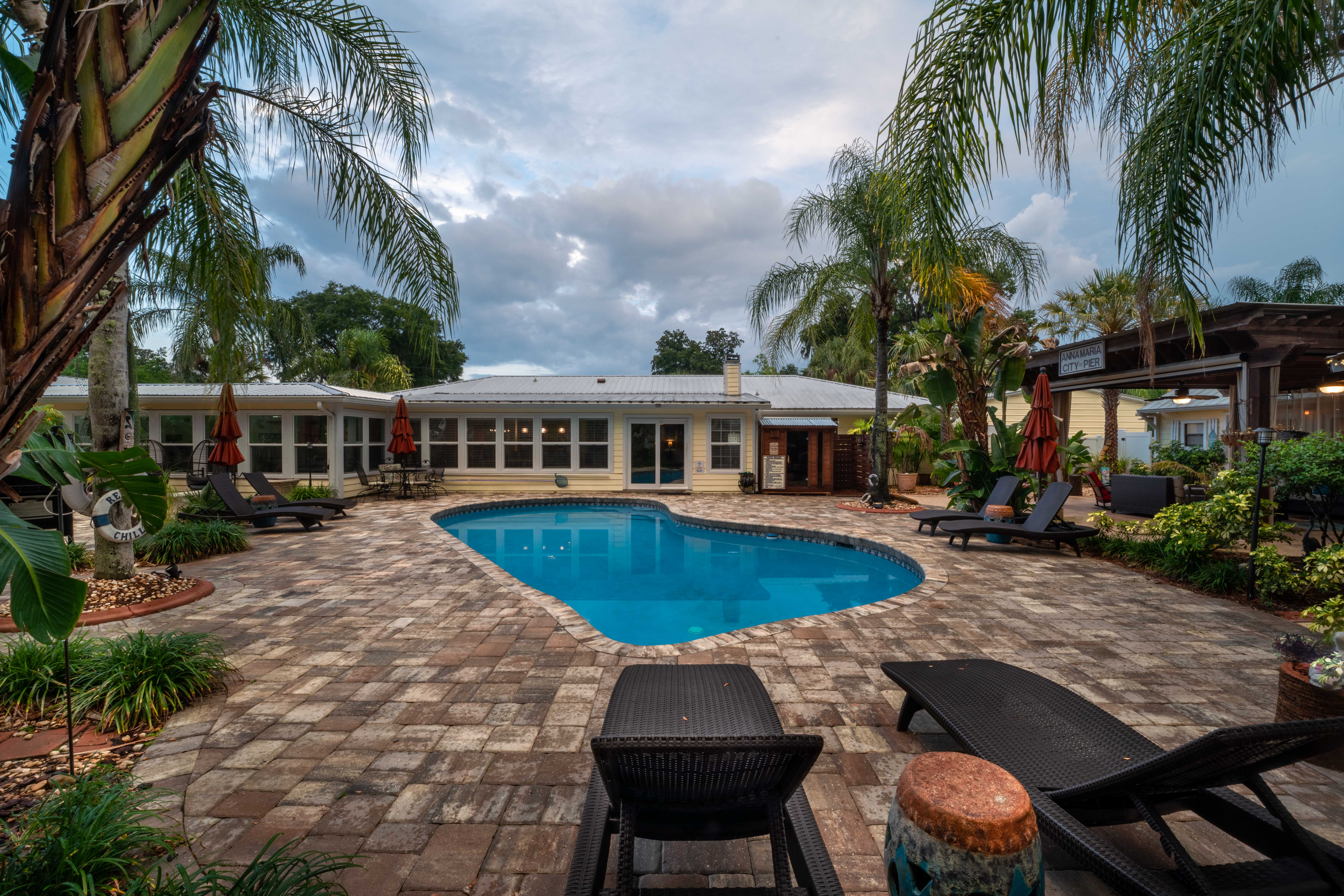 Located just a stone's throw away from the captivating city of St. Augustine and a block from the picturesque St. Johns River, this resort-style home offers the ultimate retreat for your vacation. Experience ultimate relaxation in the pool area. Lounge on comfortable chaise lounges, take a refreshing dip in the clear waters, and enjoy the tranquil ambiance of our koi pond and waterfall. Book your stay with us today and experience the epitome of resort-style living!